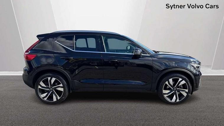 12.3" Progressive Driver Display, 360 degree surround view parking camera with side proximity sensors, 9" centre console portrait touch screen, Adjustable steering wheel force, Android auto (Wired), Apple carplay (wired), Bluetooth handsfree system, Driver alert control, Driver assistance (pilot assist and adaptive cruise control), Driver awareness - Blind spot information system with steer assist, cross traffic alert with autobrake and rear collision warning and mitigation, E-call, Front park assist, Google automotive services - Enabled entertainment apps, navigation with google maps, voice recognition with google assistant, Hands free power tailgate, Intelligent speed assistance, Lane keeping aid, Oncoming Lane Mitigation, Rear park assist, Speed sensitive steering, Volvo cars services with app - Driving journal, engine remote start, remote door locking/unlocking and vehicle dashboard, Wireless/Inductive Mobile Phone Charging, Automatic transmission with start/stop and manual change functions, Dynamic chassis, DAB Digital radio, Premium Sound by Harman Kardon, Dolby Pro Logic II Surround Sound, Dirac Unison, 12 speakers/600W and subwoofer, Steering wheel mounted remote controls, Active bending pixel LED headlights with adaptive shadow technology, Active high beam incorporating daytime running lights, Adaptive brake lights with high level LED brake lights, Auto dimming feature for exterior door mirrors, Auto dimming interior mirror, Automatic headlamp levelling, Dark tinted windows - rear side windows and rear screen, Front aluminium tread plates, Front and rear electric windows, Headlight cleaning system, High gloss black front and rear skid plate, High gloss black front bumper deco, High gloss black mesh front grille with high gloss black surround, High gloss black window trim, Home safe and approach lighting, Integrated roof rails in high gloss black, LED front fog lights with cornering function, Power glass tilt and slide panoramic sunroof with sun curtain, Puddle lights, Rain sensor with automatic windscreen wiper activation, Rear side wing doors, Rear wiper, Roof antenna, Roof spoiler, Visible VIN plate, 12V socket in front tunnel console and luggage compartment, 2-Zone electronic climate control with CleanZone air quality system and pollen filter, 3 seat bench in 2nd row, 3 Spoke tailored steering wheel with chrome trim, 60/40 versatile split folding rear seat, Centre console cupholders and storage, Flexible load floor and grocery bag holder, Floor mats, Front cabin courtesy lights, Front door pocket, front cupholder, ambient front door, rear reading, rear courtesy, instrument panel and tailgate lighting, Front footwell illumination, Front headrests, Front reading lights, Front seat cushion extensions, Front side step illumination (under door), Glovebox bag hook, Heated front seats, Height/reach adjustable steering column, High gloss centre tunnel deco, Illuminated glovebox, Illuminated luggage compartment, Illuminated vanity mirrors + ticket holder, Integrated waste bin, Isofix attachments on outer rear seats, Load cover, Load protection net, Multi directional lumbar support for driver and passenger seat, Power driver seat with memory + exterior mirrors memory, Power folding rear headrests, Power passenger seat, Rear armrest with cupholders, Single front passenger seat, Underfloor cargo storage, Climate pack without heated front seats - XC40, 3x3 point rear seatbelts, City safety with steering support with Pedestrian + cyclist + front collision warning with full auto brake and rear auto brake, Driver and passenger airbags, Drivers knee airbag, Electronic parking brake with auto hold, First aid kit, Front and outer rear seatbelt reminder and pretensioners, Front seats SIPS airbags, Hill descent control, Hill start assist, Inflatable curtain, Passenger airbag cut-off device, Power child locks on rear doors, Road sign information display, Run off Road Protection, SIPS (Side Impact Protection System), Slippery road and hazard light alert, Stability and Traction Control with Spin control, Engine Drag Control and Corner Traction Control, Tyre pressure monitoring system, Vehicle deceleration control with Anti-lock Brake System, Electronic Brake Distribution and Emergency Brake Assist, Warning triangle, WHIPS whiplash protection system - front, 2 x Key integrated remote control central locking including with deadlocking system and auto open/close windows and sunroof, Anti-theft alarm including immobiliser/volume sensor + level sensor, Keyless drive includes keyless entry and keyless start, Locking wheel nuts,