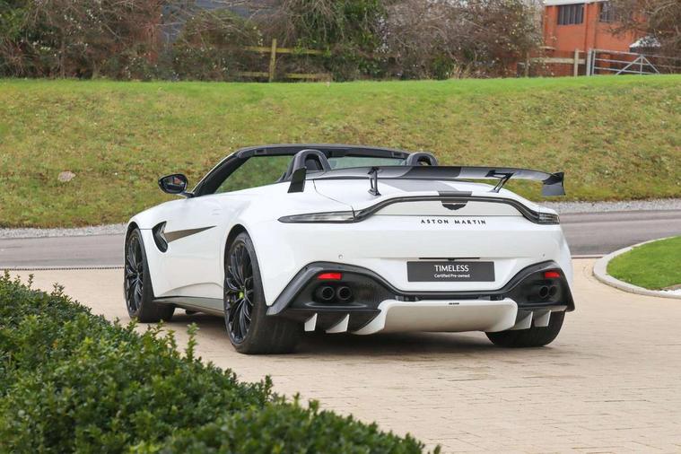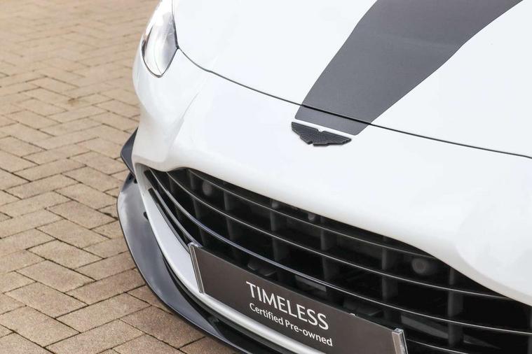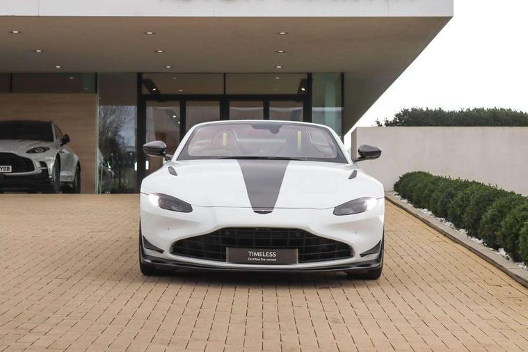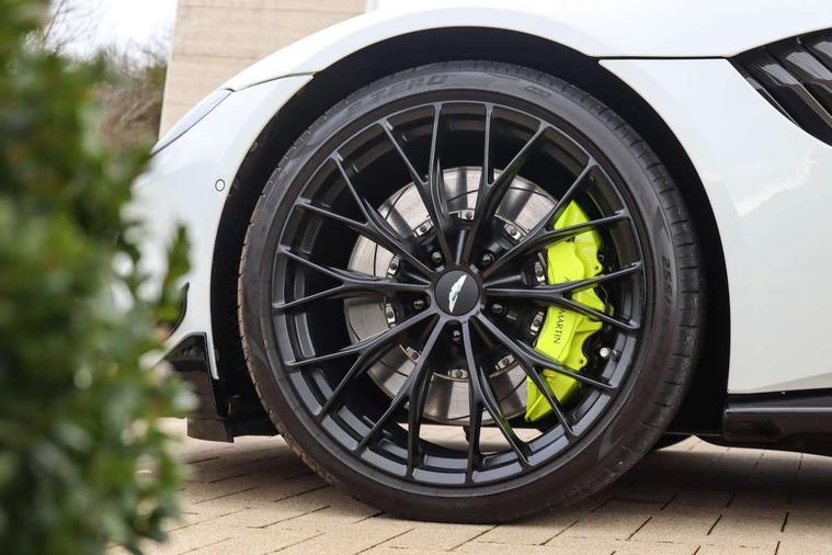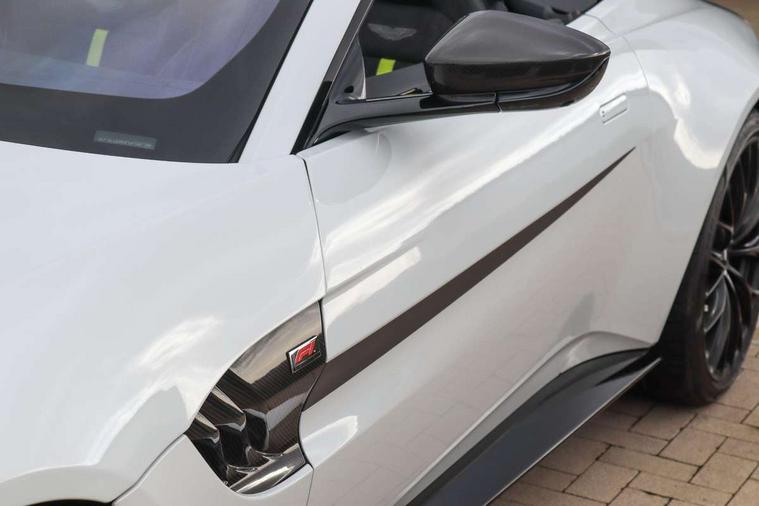 Emergency services call system, Rotary dials, Servotronic speed sensitive power steering, Trip computer, Auxiliary input socket, DAB Digital radio, iPod connection, USB connection, 3rd brake light, Black 2x2 twill carbon fibre roof panel hood, Body colour door handles, Convertible wind deflector, Full width LED tail lights signature with stop tail and dynamic indicator functions, Gloss black aerokit, Gloss black window surround, LED daytime running lights, LED high and low beam headlamps with integrated directional indicator, LED lock/unlock graphic theatre lights, LED position lamp, Paint protection film, Primary Roadster exterior hood colour, Quad matte black exhaust tailpipe finisher, Rear boot, Satin Q paint, Smoked tail lights, Special edition graphics, Black loadspace carpet, Centre console armrest with closed storage, Electric steering column with cruise control, Floor mats, Front head restraints, Heated front seats, Interior accent stripe and stitching in lime green, Primary cabin carpet colour, Primary leather upholstery, Single front passenger seat, Sport seats plus, Sports leather/alcantara steering wheel, Interior jewellery pack - Vantage - Satin dark chrome, Technology pack - Vantage, Upper pack - Vantage - 2x2 twill carbon fibre, ABS + EBD + EBA, Cast iron brakes, DSC - Dynamic Stability Control, Front side airbags, Hill hold assist, Hydraulic Brake Assist (HBA), Traction control, Tyre pressure monitoring system, Alarm, Immobiliser, Remote central locking + boot release, Black seatbelts, Glass switches, Tyre repair kit,