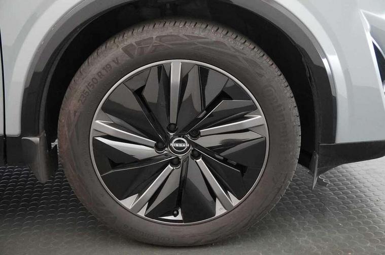 2 front USB-C ports, 2 rear USB-C ports, 360 degree Intelligent around view monitor with moving object detection, Advanced windscreen head up display, Blind spot intervention, Blind spot warning, Drive assist, Drive assist custom mode, Drive modes (sport, normal, eco), Driver drowsiness and attention warning, Electric speed sensitive power steering, Emergency and breakdown call, Emergency lane keep assist, Emergency Stop Signal (ESS), Engine start/stop button, Event data recorder, Front and rear parking sensors, Full Digital 12.3" TFT Digital Combimeter, Google virtual personal assistance, Hands free power tailgate, Idle stop/start system, In-car WIFI hotspot, Intelligent Cruise control (ICC), Intelligent forward collision warning, Intelligent speed assist, Lane departure warning system, Nissan connect 12.3 inch touchscreen infotainment system, Nissan connect navigation with google maps, Nissan connect services 2.0 (Google Automotive System), Outside temperature sensor, Rear cross traffic alert, Reversing detection, Wireless Apple CarPlay/Android Auto, Wireless charging pad, Limited slip differential, 6 speakers, AM/FM audio system with DAB, Bluetooth audio streaming, Auto dimming frameless rear view mirror, Auto rear wiper when reversing, Body colour mirror caps, Body coloured door handles, Bodyside mouldings, Chrome side window finisher, Electric auto folding door mirrors, Electrically adjustable and heated door mirrors with LED turn indicator, Follow me home headlights, Glossy black bumper inserts and fenders, High beam assist, Intelligent auto headlights, LED 3rd brake light, LED daytime running lights, LED headlights with adaptive driving beam, LED rear lights, LED sequential turn lights, One touch front and rear electric windows with remote opening and closing, One touch passenger window, Partially body coloured bumpers, Rear privacy glass, Rear roof spoiler, Rear side wing doors, Rear styling plate, Reverse tilting door mirrors, Shark fin antenna, Silver roof rails, Splash free rain sensing wipers, Super RED rear LED lights, Super UV and infrared cut glass, Thermaclear heated windscreen, 3 bench rear seats in 2nd row, 3 rear headrests, 60/40 split folding rear seat bench, Chrome interior door handles, Dark headlining, Driver seat back pocket, Dual zone automatic climate control with pollen filter, Fixed Glass roof with electric sunshade, Front door with bottle holders, Heated front seats, Heated steering wheel, Height adjustable front headrests, Leather shift knob, Luggage board system, Luggage space lighting, Multifunction steering wheel, Passenger seat back pocket, Quilted/PVC upholstery, Rear door bottle holders, RGB ambient light (Full area coverage), Single front passenger seat, Smooth leather steering wheel, Tilt/telescopic adjustable steering wheel, Two rear isofix child seat anchorage points with top tether, 3x3 point rear seatbelt pretensioners + load limiters, Autonomous emergency braking, Child locks on rear doors, Curtain and front side, far side airbags, Driver and passenger airbags, Driver, passenger and 2nd row rear seat belt reminder, Electric handbrake with auto hold function, Front seatbelt pretensioners + load limiters, Height adjustable front seatbelts, Hill start assist, intelligent front emergency braking, Rear automatic braking, Tyre pressure monitoring system, Vehicle dynamic control, Engine immobiliser, Intelligent key with walk away lock and approach unlock functions, Remote central door locking with deadlocking, Thatcham alarm, 19" Diamond cut alloy wheels, Tyre puncture repair kit,