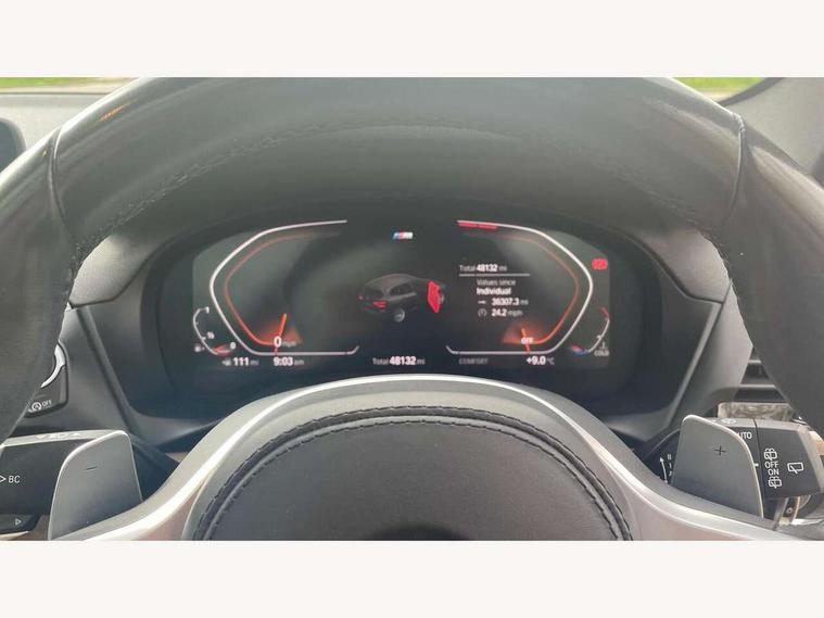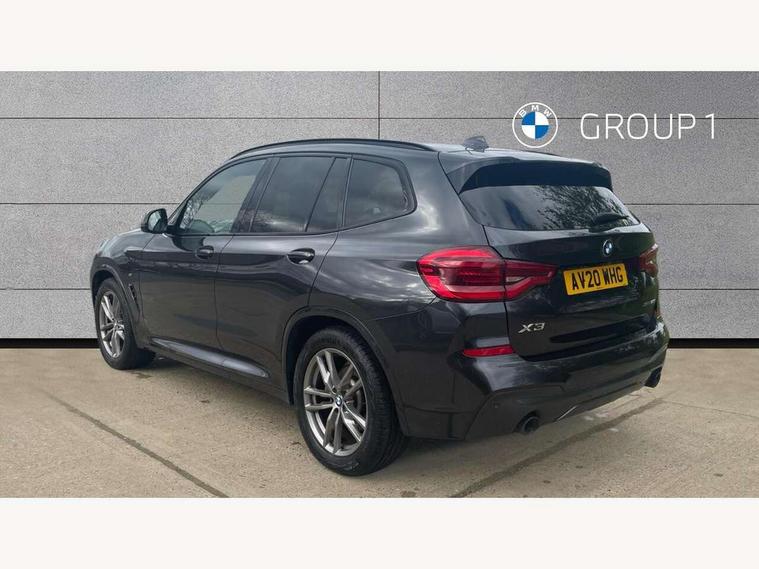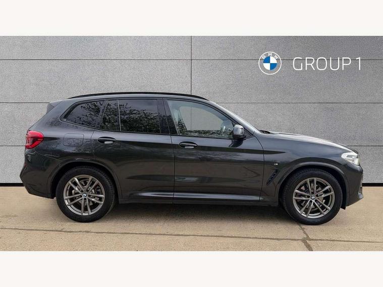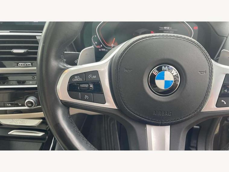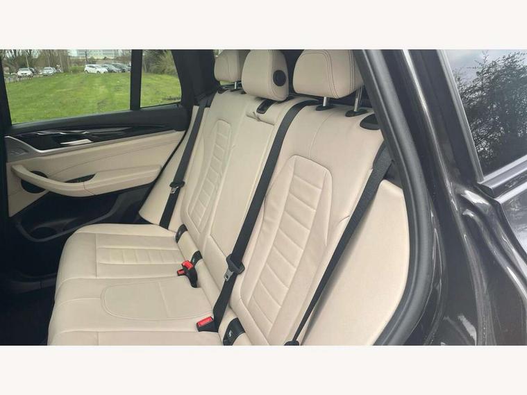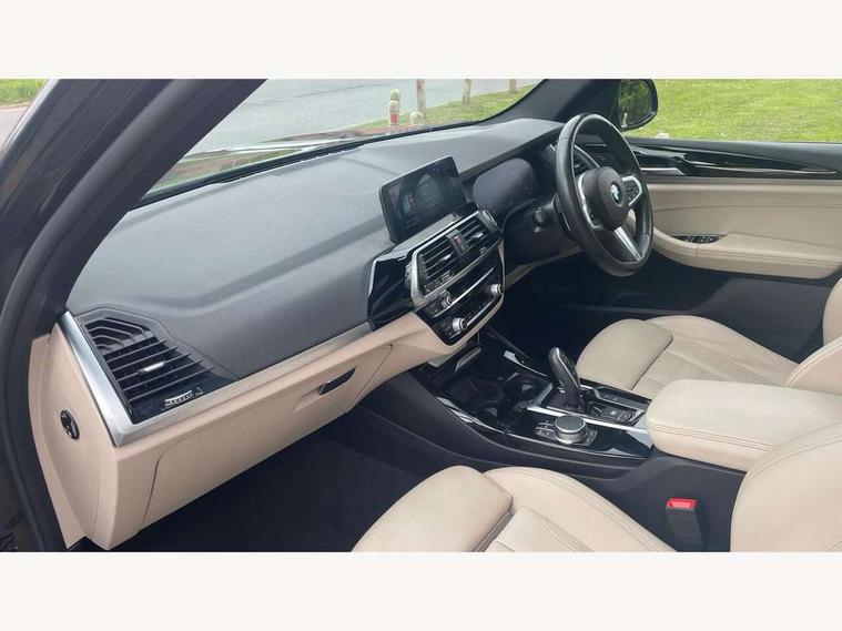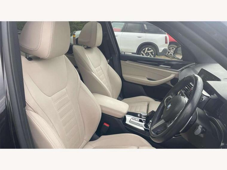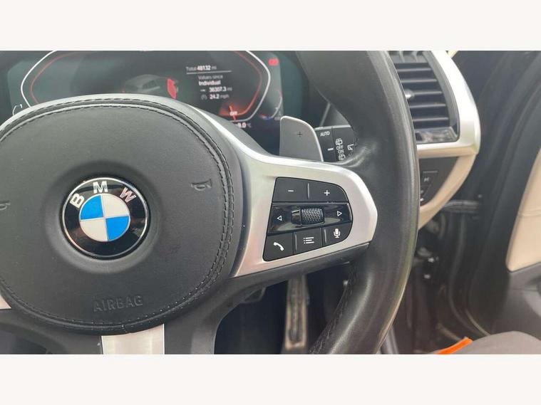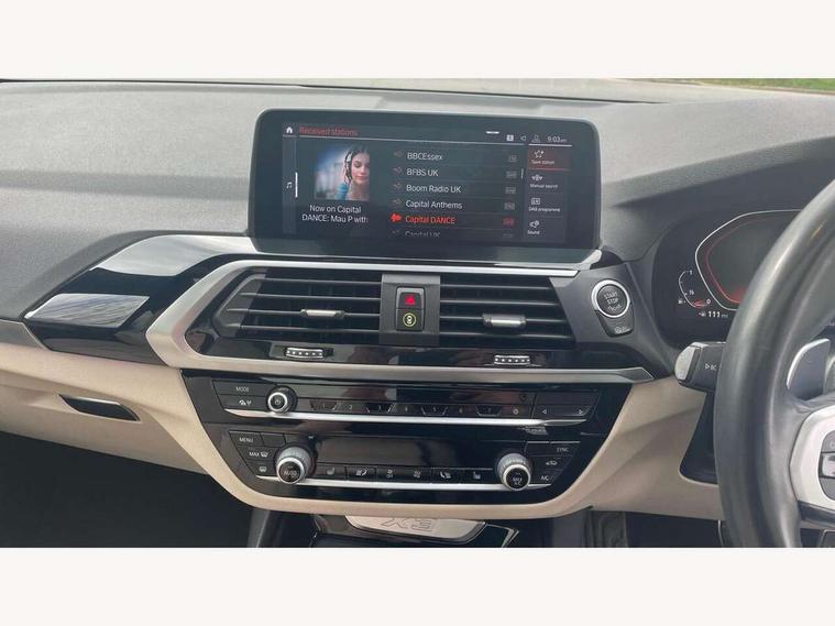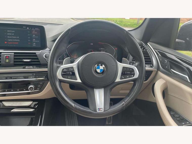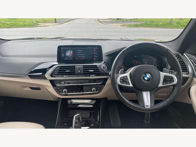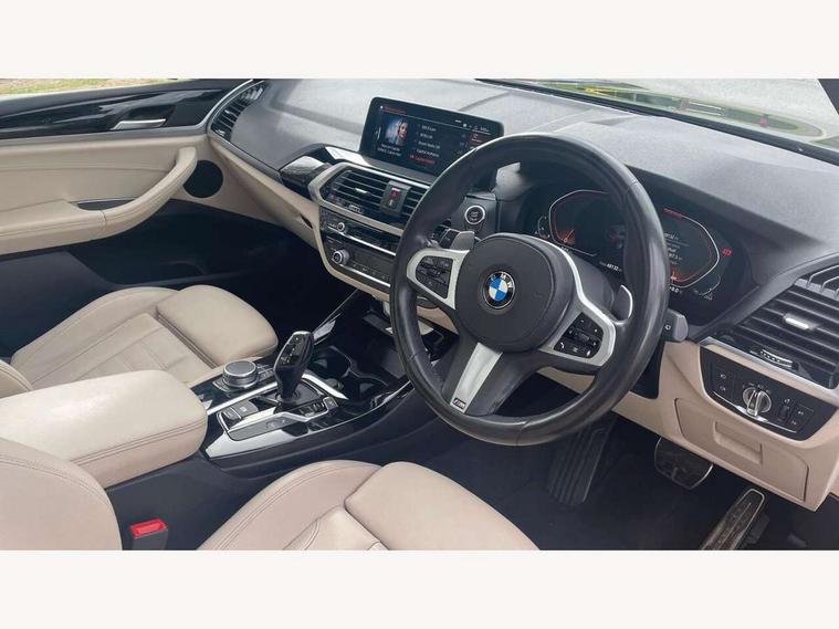 Attentiveness assist, Automatic tailgate operation, Bluetooth hands free telephone connection with USB audio interface + audio streaming, BMW gesture control, BMW Live Cockpit Professional sat nav system including 10.25" high resolution display and Intelligent Voice Assistant, BMW Online services, BMW Teleservices, Brake pad wear indicator in front and rear, Check Control warning system for monitoring of lights and door/luggage compartment open warning, Control display - 6.5" colour display screen, Head up Display, iDrive Controller with 8 favourite buttons, Lights on warning by audio warning signal when ignition is switched off, Navigation system - BMW Professional multimedia with Hard disc drive (HDD) and 10.25" touch display, Oil sensor for level and grade, warning by check control system, On board computer - average speed+fuel consumption, service interval, clock/date, odometer/trip meter, outside temperature display and ice warning, Optimum shift indicator, Personal Profile - automatic lock when driving away selectable, Semi digital instrument cluster, Stop/start system, Variable sports power steering, Adaptive suspension, Automatic transmission with gearshift paddles, Drive performance control with ECO PRO comfort + sport mode, Incorrect fuelling protection, Multi-link rear suspension, Performance Control, 6 speakers, Auxiliary socket for external MP3 player, BMW professional radio/CD/MP3, DAB Digital radio, Acoustic glazing, Black finish on B pillars, Body colour door handles, Body colour electric adjust heated aspherical door mirrors, Body colour roof mouldings, Body coloured bumpers, Chrome kidney grille with high gloss black vertical slats, Direction indicator, side repeaters, integrated in exterior mirrors, Dual chrome exhaust, Dynamic brake lights, Extended high gloss shadow line, Exterior mirrors - electrically folding with anti-dazzle, Fingertip control / anti-trap function on electric window, Follow me home headlights, Front and rear bumper system with replaceable deformation elements, Front and rear electric windows, Green tinted heat insulating glass, Heated windscreen washer jets, Height adjustable headlamps, High gloss black door sill finishers, High gloss black shadow line roof rails, High level 3rd brake light incorporating LED Technology, Interior rear view electrochromatic mirror with automatic anti dazzle function, LED front fog lights, LED tail lights, Lightweight engineering, M aerodynamic bodystyling, Model designation, Rain sensor including auto headlights activation, Rear wiper, Shark fin antenna, Side exterior M designation badges, Sun protection glass, Visible VIN plate, Welcome lighting, Windscreen wipers with adjustable interval, 12V socket in centre console and luggage area, 3 rear headrests, 3 zone automatic air conditioning, 4 lashing points to secure luggage, Ambient lighting, Anthracite headlining, Anthracite Velour floor mats, Door sill finishers with BMW Individual designation, Driver/passenger sunvisors with ticket holders + illuminated vanity mirrors, Foldable boot floor with storage compartment, Four grab handles integrated in roof lining, Front and rear bottle holders integrated into door trim storage compartments, Front and rear side armrests integrated into door trim, Front centre armrest with storage compartment, Front footwell lights, Front sports seats, Front/rear courtesy lights with soft on/off dimming, Front/rear reading lights, Height adjustable front/rear head restraints, Illuminated glovebox with lock, Isofix rear child seat preparation, Leather gear knob, Luggage area underfloor compartment, Luggage compartment lighting, M sport leather steering wheel, Parcel shelf removeable and storable under boot floor, Reach and rake adjustable steering column, Rear centre armrest with 2 cupholders, Removable / retractable luggage cover, Slope adjustable rear seats, Storage compartment in rear centre console and front/rear door trims, Through loading system with 40/20/40 split folding rear seat, Toolkit located in luggage compartment, Two front cupholders with removable oddments tray/lid, Vernasca leather upholstery, Connected pack professional - X3, ABS/EBD, Active protection, ADB - Automatic Differential Brake, Automatic Stability Control (ASC), Battery safety cut-off, BMW emergency call, Brake assist, Brake drying, Brake energy regeneration, Braking pre-tensioning, Child locks on rear doors, Cornering brake control (CBC), Crash Sensor - activation of central locking release, hazard warning light and interior lighting, Deactivation of fuel pump in the event of a crash, Driver and front passenger front and side airbags with passenger deactivation and ITS front and rear head airbags, DSC+, Dynamic brake control, Dynamic Traction Control - DTC, Electromechanical parking brake, Front seat belts warning, Hill descent control, Hill start assist, M sport seatbelt, Seatbelt security check for front seats, Side impact protection, Three point seatbelts to all seats with front and outer rear pyrotechnic belt tensioners and seat belt force limiters, Two tone horn, Tyre pressure monitoring system, Ventilated front and rear disc brakes, Warning triangle and first aid kit, Central locking switch for all doors, fuel filler cap and luggage compartment, Electronic engine immobiliser, Locking wheel nuts, Remote control including two integrated key - one button for open/close all lockable content, windows and separate button for open luggage compartment, Remote control Thatcham category 1 alarm, Start/stop button with Comfort Go keyless engine start and auto Start/stop deactivation button, Low rolling resistance tyres,