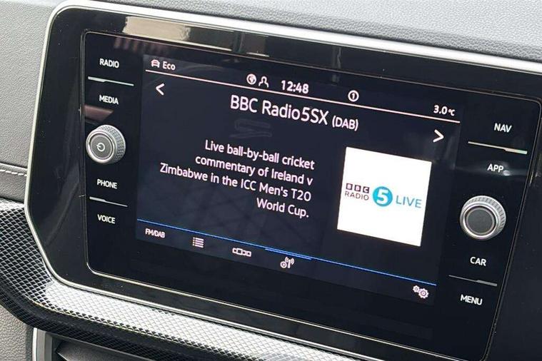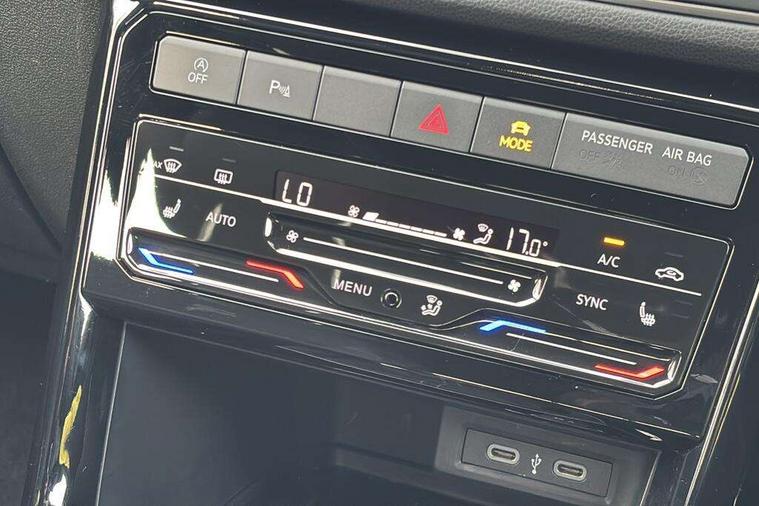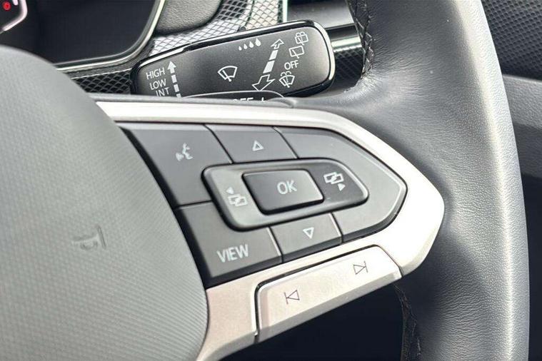 'Lights On' Reminder warning buzzer, 10.25" Digital cockpit pro, Advanced driver attention and drowsiness monitor, Car information display, Driver profile selection including ECO function, Dynamic road sign display, E-Sim card for online connectivity, eCall emergency call system, Front and rear parking sensors, Front assist, forward collision warning, autonomous emergency braking and speed limiter, Low washer fluid warning light, Mobile phone interface with inductive charging, Multifunction computer with visual gear change recommendation for fuel consumption, Multifunction front facing camera for distance control, Operating permit alteration, Power assisted steering, Predictive adaptive cruise control, Preparation for navigation system with media and internet package, Preparation for We connect and We connect plus, Semi-automated driving assistance, travel assist including lane keeping system Lane Assist and emergency assisst, Side assist, Speedo, rev counter, electronic odometer, trip, service interval display, exterior temperature and fuel gauge, Warning sound and light for doors and tailgate open, Warning sound and light for front seatbelts unfastened, Wireless Car net app connect with Apple CarPlay, combined functionality of Apple CarPlay/Android Auto and MirrorLink, Wireless charging, Misfuel prevention device, Start-stop system with battery regeneration (recuperation - energy recovery during braking), 2 USB C ports in front, 2 USB charging sockets on the centre console in the rear charging capacity upto 45W, Diversity antenna for FM reception, Music playback - MP3, WMA and AAC files, Radio, Advanced high beam control dynamic light assist, Automatic dimming interior rear view mirror, Automatic hazard lights activation under emergency braking, Automatic headlight control and coming home and leaving home feature, Black roof rails, Body colour door handles, Body coloured bumpers, Cornering light and poor weather light, Dynamic headlight range control, Electric folding door mirror, adjustable, heated with front passenger exterior mirror lowering function, Exterior mirror housings in black, Exterior mirrors convex on the left and aspherical on the right, Front and rear electric windows, Front door sill protectors with R-Line logo, Galvanised body, Heat insulating and laminated safety glass windshield, Heat insulating darkened glass in side and rear windows, Illuminated molding between headlamps, IQ.Light LED matrix headlamps with LED separate daytime running light, LED rear tail lights with dynamic turn signal, LED third brake light, Lower door sills and door pillars in black, Privacy glass for rear side windows and rear window, Rain sensor, Rear fog light on one side, reversing light on both sides, Rear side wing doors, Rear window aerial, Rear window wiper with intermittent control, Reflectors in all doors, Scuff plates, Tailgate with integrated roof spoiler, 12V Accessory socket in centre console, 2 Front and rear reading lights incorporating LED technology, 3 rear head restraints, 3 seat bench in 2nd row, 60/40 split folding rear seat backrest, Air care climatronic 2 zone air conditioning system, Ambient lighting and logo projection, Brushed stainless steel pedals, Chrome plated radiator grille inserts, air vent surrounds and light switch surrounds, Cloth upholstery, Comfort front sport seats, Door and side trim panel, Driver and front passenger sunvisor with vanity mirror, Dust and pollen filter, Front + rear carpet mats, Front centre armrest, Front centre armrest with storage compartment, Front footwell illumination, Front seat back storage pockets, Glove compartment door with light, Heated front seats, Heating and fresh air system with 4 stage blower, Height/reach adjust steering wheel, Instrument lighting white adjustable panel illumination, Interior light with switch off delay and dimmer, Isofix anchors for child seats on outer rear seats and front passenger seats, Leather gearshift handle, Leather wrapped multifunction steering wheel with paddle shift, Luggage compartment floor, Luggage compartment lighting, Manual front seats with height adjustment, Padded dashboard, Removable luggage compartment cover, Single front passenger seat, Storage compartment in drivers and front passengers door, Titanium black roof lining, Unsplit sliding rear seat bench, Without drawers under front seats, 3 point outer rear seat belts with ECE label, 3 Point seatbelt for centre rear seat, Anti-lock Braking System (ABS) with Hydraulic Brake Assist (HBA), Automatic post collision braking system, Disc brakes in front, Disc brakes in rear, Driver and front passenger safety-optimised head restraints, Drivers and Front Passengers airbags with front passengers airbag deactivation switch, ESC with EDL and ASR (traction control), Extended and predictive pedestrian/cyclist protection, Front and rear passenger curtain airbag system including front side airbags, Height adjustable front 3 point seatbelts + pretensioners, Hill start assist, Pre crash preventive occupant protection, Proactive passenger protection system in combination with front assist, Rear door child safety locks, Rigid safety cell with front and rear crumple zones, Single tone horn, Tyre pressure loss indicator, Volkswagen roadside assistance, Alarm with interior protection, Anti theft alarm system, Anti theft wheel bolts, Electronic engine immobiliser, Remote tailgate unlocking using key fob, Black decorative trims, Titanium Black Decorative inserts - R Line, 18" York alloy wheels in black, Low rolling resistance tyres,