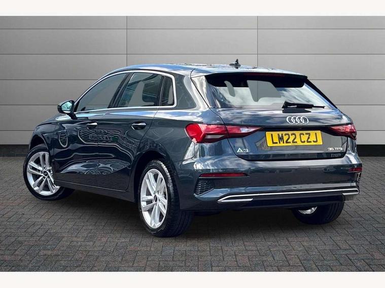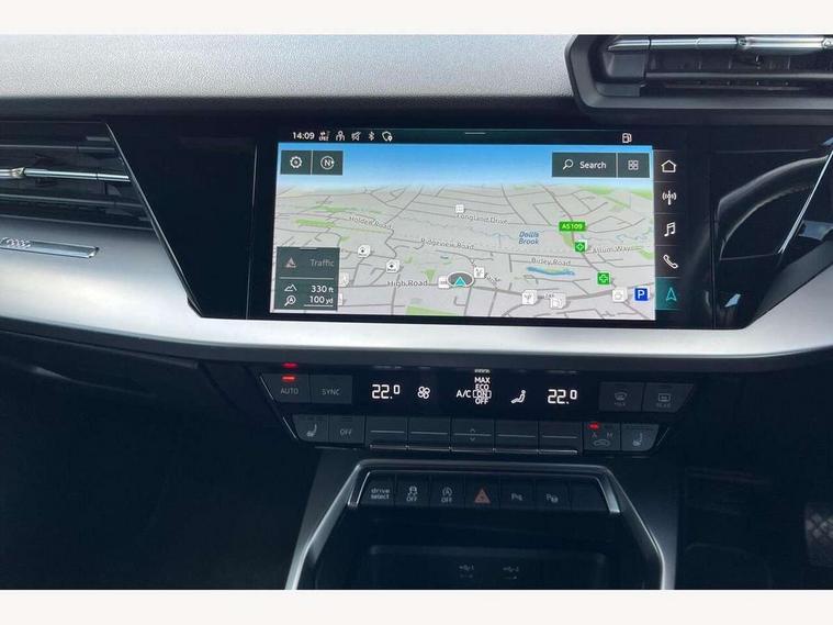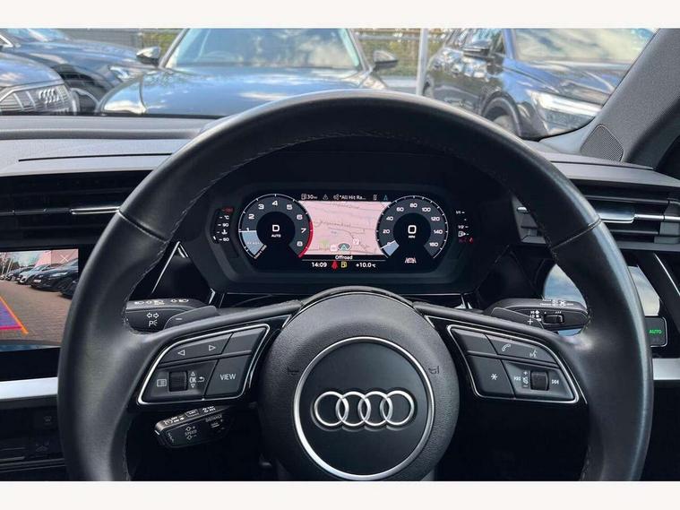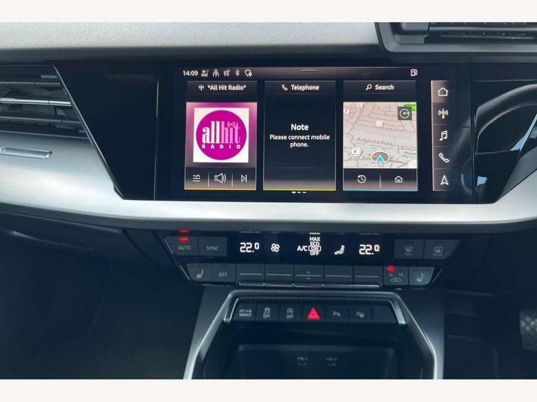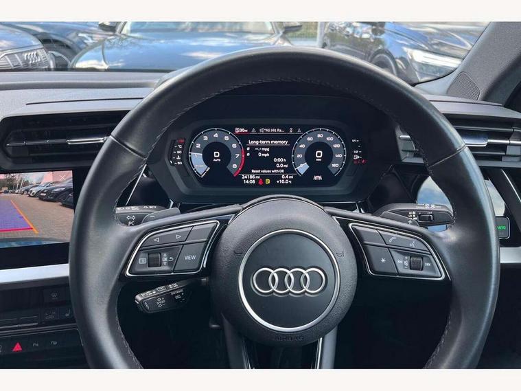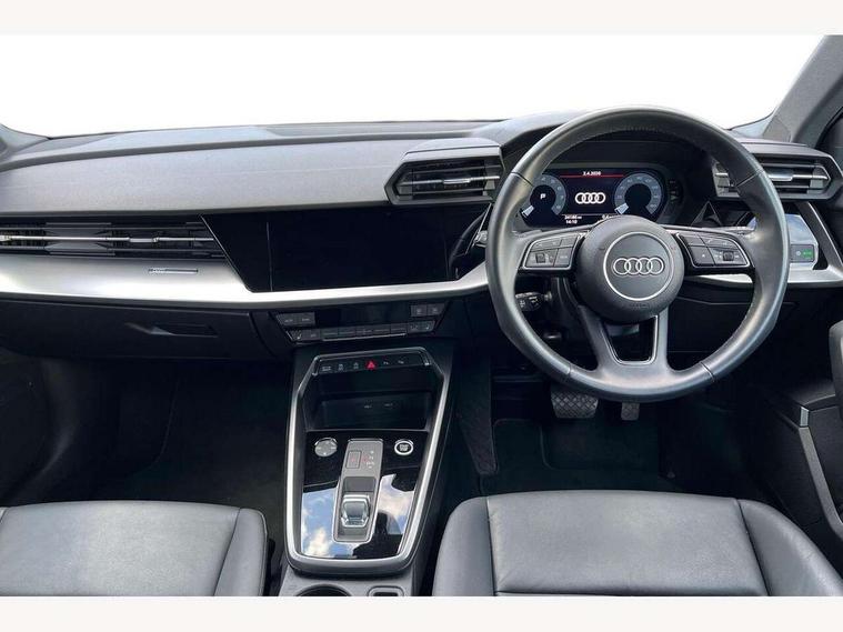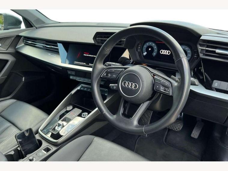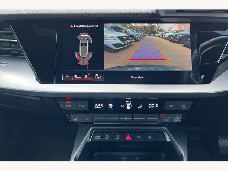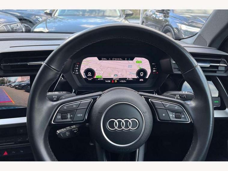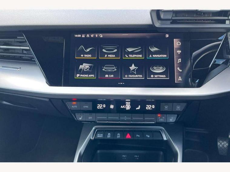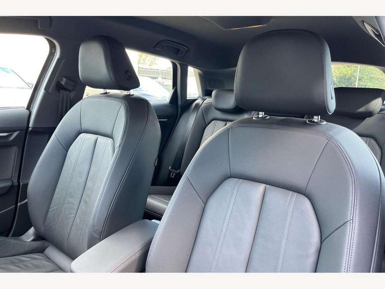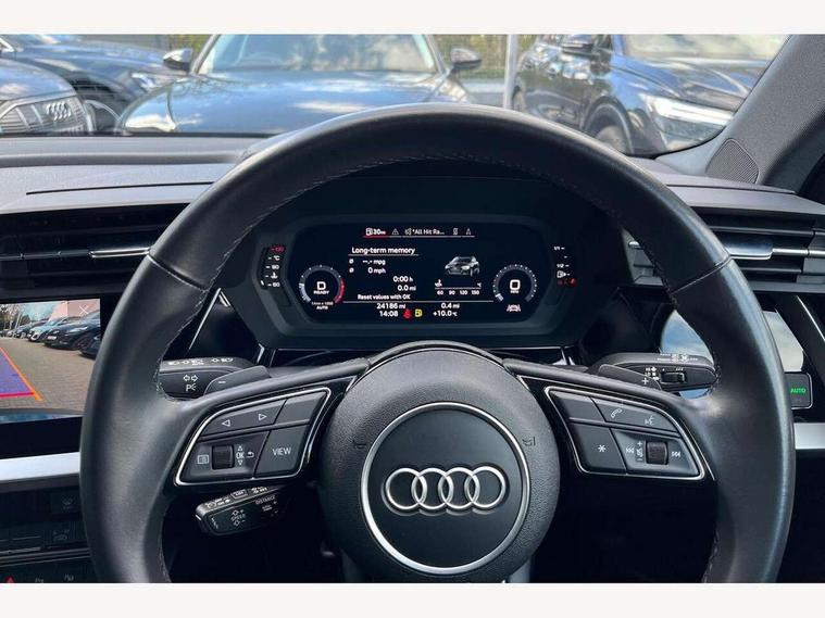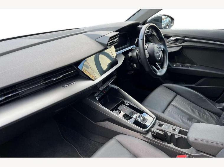 Audi connect emergency call and service, Audi drive select (Auto, Comfort, Dynamic, Efficiency and Individual), Audi smartphone interface, Audi Virtual Cockpit - 10.25" digital and colour instrument cluster, Automatic start/stop system with recuperation, Bluetooth interface, Collision avoidance assistant, Electromechanical power speed sensitive steering, Lane departure warning system, MMI Navigation Plus with high resolution 10.1" colour touch screen display, Service indicator, Trip computer, Voice control system with natural language interaction, Standard suspension, 2xUSB-C connection with data and charging functions, 6 passive loudspeakers, DAB Digital radio, 3rd brake light, Acoustic glass windscreen, Aluminium window trim, Auto dimming frameless rear view mirror, Body colour exterior mirrors, Body colour roof spoiler, Electrically adjustable/heated/folding/auto dimming door mirrors with integrated LED indications + kerb view function for passenger side, Front electric windows, LED daytime running lights, LED headlights and halogen rear lights, Light and rain sensors, Rear electric windows, Rear side wing doors, Rear window, rear door windows and rear side windows in clear glass, Rear wiper, 12V socket and storage compartment in front centre console, 3 seat bench in 2nd row, 40/20/40 split folding rear seat bench with cupholder, Dual zone electronic climate control, Front and rear centre armrest, Front and rear headrests, Front door sill trims with aluminium inlay, Front/rear floor mats, Height and reach adjustable steering wheel, Interior lighting - Front and rear roof module including reading lights, glove compartment light and right hand side, Luggage compartment floor covering, Manual boot compartment lid, Manually adjustable front seats, Seat side bolsters, Single front passenger seat, Steel grey cloth headlining, Twin leather upholstery, Aluminium interior elements pack - A3 Sportback, Sport styling pack - A3 Sportback, 3x3 point rear seat belts, Driver and front passenger airbag with passenger airbag deactivation, Electronic Stabilisation Control (ESC) including ABS, ASR and EDL, First aid kit with warning triangle and 2 safety vests, Front side airbags with head airbags and interaction airbag, Pre-sense front with pedestrian and cyclist detection, Seatbelt monitoring, Tyre pressure loss indicator, Anti theft alarm, Anti-theft wheel bolts, Immobiliser, Manual child locks, Remote control central locking, Inlays with silk effect paint in platinum grey,
