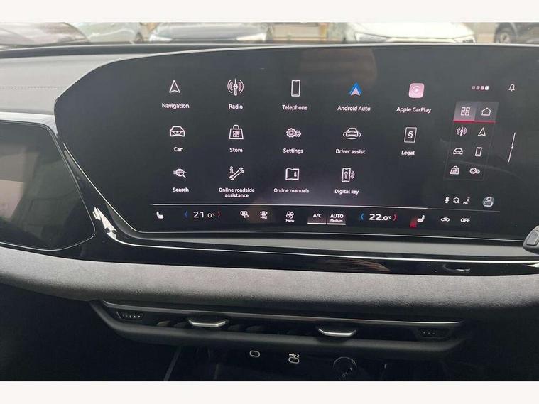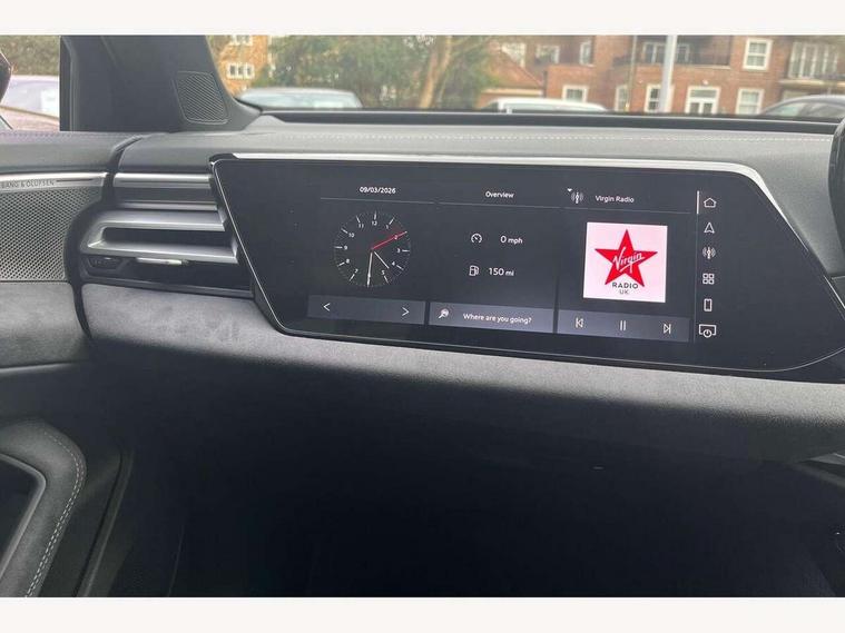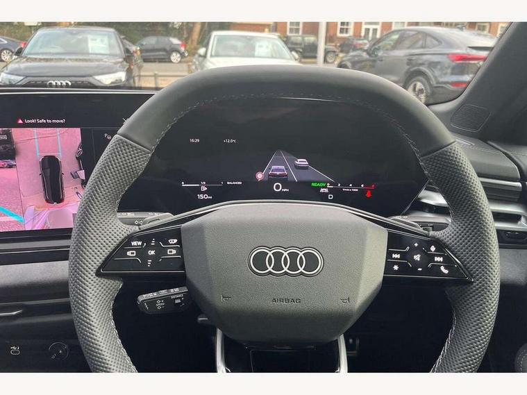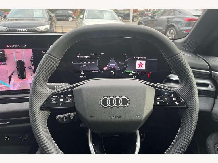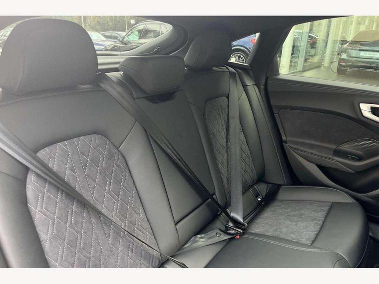 Adaptive cruise assist plus with steering intervention, Attention and drowsiness detection with driver observation, Audi application store, Audi assistant, Audi connect emergency call and service, Audi drive select, Audi virtual cockpit plus with 11.9" OLED colour display, Automatic start/stop system with coasting functionality, Camera based traffic sign recognition, Convenience key, Intersection assist, Lane change assistant with exit warning system, rear cross traffic alert and rear turn assist, Lane departure warning with emergency assist, MMI 10.9" front passenger touch display, MMI navigation plus with high resolution 14.5" OLED touchscreen colour display, Park assist plus, Parking system plus with 360 display, Progressive steering with servotronic, Side assist and exit warning, rear cross-traffic assist and rear turn assist, Smartphone interface, Swerve assist and turn assist, Top view camera, Traffic sign based speed limiter, Sports suspension lowered by 20mm, Audi sound system impressive sound with 8 loudspeakers including centre speaker and subwoofer, 6-channel amplifier with a total output of 180 watts, DAB digital radio reception, Smartphone compartment with wireless charging, Aluminium window trims, Auto dimming rear view mirror, Black door handles, Dark chrome-plated tailpipe trims, Door mirrors - electrically adjustable, heated, folding and auto dimming on both sides, Front and rear electric windows, Front door sill trims with aluminium inlays, illuminated with 'S' logo, Headlight cleaning system, High beam assist, LED daytime running lights, LED rear lights pro incl. dynamic rear indicators and illuminated light strip with animated coming and leaving home function, LED third brake light, Matrix LED headlights with eight light signatures selectable via the MMI or the myAudi app, Privacy glass, Rear and side windows with heat insulating glass, Rear boot, Rear side wing doors, S Line badges on the front wings, S line bumpers, radiator grille and diffuser in phantom black and diffuser insert in matt anthracite, White rhombus logo projection light in exterior mirrors, Windscreen with acoustic glazing, 3 rear headrests, 3 seat rear bench, 3 spoke leather steering wheel with multi-function buttons with touch control, flattened on top and bottom, with S badging and contrast stitching, 3-zone automatic climate control, 40:20:40 split folding rear seat bench with centre armrest and cup holders, Comfort front centre armrest, Electrically adjustable front seats, Front and rear floor mats, Front sport seats with integrated headrest and S embossed logo, Headlining in black cloth, Heated front seats, i-Size child seat mounting on the front passenger side and outer rear seats, i-Size and top tether on the outer rear seats, Increased charging capacity for USB ports 2X100 Watts in rear, 2X60 Watts in front, Luggage compartment lid, electrically opening and closing, Manual steering column height and depth adjustment, Memory function for driver seat, Single front passenger seat, Stainless steel pedals and footrest, Steering wheel grips in perforated leather and shift paddles, Ambient lighting package plus - A5, Black styling package plus - A5, 3x3 point rear seat belts, Acoustic vehicle alerting system, Driver airbag, Electric child safety locks, First aid kit with warning triangle and vests, Front emergency brake assist, Front passenger airbag, Front passenger airbag deactivation, Hill hold assist, Proactive passenger protection system for front, sides and rear, Red brake calipers, Seat belt monitoring with rear seat occupant reminder, Side airbags in front and rear with head airbag system and front interaction airbag, Tyre pressure loss indicator, Anti theft alarm, Anti-theft wheel bolts, Digital key, Keyless Go, Accent surfaces and control buttons in gloss black, Black dashboard with contrast stitching, Softwrap in Dinamica with contrast stitching, Upper and lower interior elements in dinamica microfiber, 20" 5 arm fold design Audi sport alloy wheels in silk matt grey and gloss turned finish, Tyre repair kit,