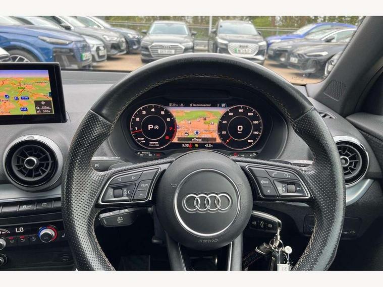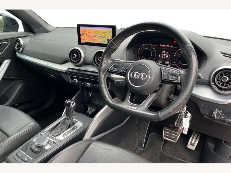 Audi connect navigation and infotainment includes innovative services, Audi connect remote and control connects your vehicle to your smartphone, Audi drive select - Power steering assistance + engine + gearshift, Audi drive select with efficiency, Audi smartphone interface, Audi virtual cockpit, Automatic start/stop system with recuperation, Bluetooth interface includes bluetooth audio streaming, Cruise control, E-call, MMI navigation plus with MMI touch, Power operated tailgate, Progressive steering, Rear parking sensors, 2 x SDXC card reader, 6 passive loudspeakers, DAB Digital radio, DVD Drive, Auto dimming rear view mirror, Black window trims, Bumper in full body colour paint finish, Electrically adjustable, folding, auto dimming and heated door mirrors with integrated LED side indicators, Front windscreen with grey tinted sunband, LED daytime running lights, LED headlights with LED rear lights, LED third brake light, Privacy glass - dark tinted rear and rear side windows from B-pillar backwards, Rear side wing doors, Rear wiper, Variable front intermittent wipers, Wheel arch trims in manhattan grey, 12V socket in front, 3 seat bench in 2nd row, 3 spoke flat bottomed multi-function leather sport steering wheel with gear shift paddles, 4-way electric lumbar support for front seats including seat height adjustment for both front seat, 60/40 split folding rear seat bench, Black cloth headlining, Front and rear head restraints, Front centre armrest, Front/rear floor mats, Height/reach adjust steering wheel, Illuminated door sill trims with S logo, Single front passenger seat, Stainless steel pedals, Black styling pack - Q2, 3x3 point rear seatbelts, 6 airbags - Front, curtain and front side airbags, Electromechanical parking brake, Electronic stabilisation control including ABS, ASR and EDL, Front passenger airbag deactivation, Hill hold assist, Pre-sense front with pedestrian recognition, Seatbelt monitoring, Tyre pressure warning light, Warning triangle and first aid kit, Anti theft alarm, Anti theft wheel bolts, Manual child locks, Remote central door locking, Aluminium interior element, Matt brushed aluminium trim inlays, Tool kit,