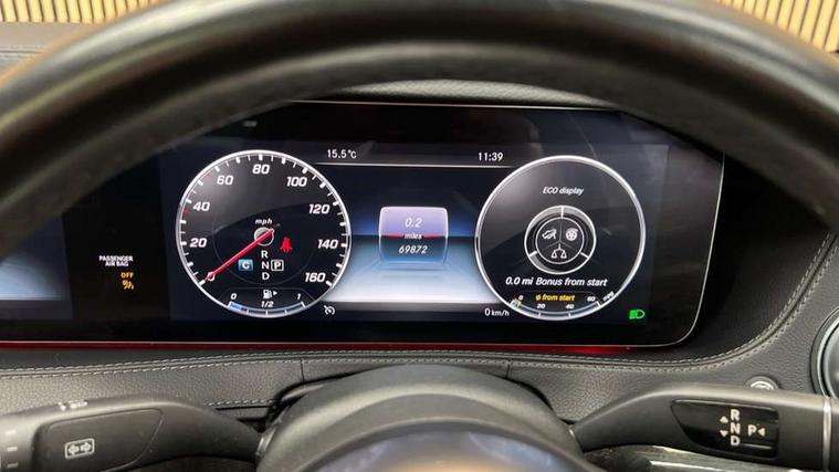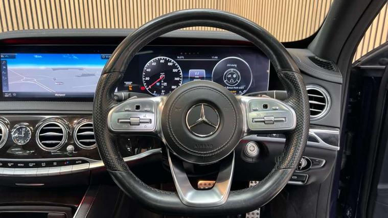 Dashboard upper section in artico man-made leather, Air-balance pack - S Class, Front seat comfort pack - S Class, Keyless Go comfort pack - S Class, Seat memory pack - S Class, Tyre sealant kit, Alarm system with interior protection, Immobiliser, Locking wheel bolts, Remote central locking, 2 USB sockets in rear, DAB Digital radio, ABS, Acceleration skid control, Active bonnet, Driver/Front Passenger airbags, Electronic parking brake, ESP curve dynamic assist, First aid kit, Front passenger seat with pre-safe positioning system, Front seatbelt pretensioners with force limiters, Front side airbags, Grey brake calipers, i-Size and ISOFIX rear child restraint system, Pre-Safe anticipatory safety system, Rear outer seatbelt pretensioners with force limiters, Rear seatbelt warning indicator, Three 3 point rear seatbelts, Tyre pressure monitoring system, Window airbags, Adaptive brake lights, Adaptive high beam assist, AMG body styling, Auto dimming driver's door mirror, Auto dimming rear view mirror, Electric adjustable/heated/folding door mirrors, Electric windows, Front fog lights, Green tinted glass, Headlamp assist, Headlight wash system, LED tail lights, Magic vision control, Multi beam LED headlights, Rain sensor windscreen wipers, Rear black sill protector, Visible twin exhaust tailpipe in bumper, 12V power socket in centre console, Ambient lighting, AMG brushed stainless steel sports pedals with rubber studs, AMG floor mats, Auto Mercedes-Benz child seat recognition sensor, Comfort ventilated front seats, Electric adjustable front seats, Front adjustable head restraints, Front seat back map pockets, Front/rear centre armrests with storage, Front/rear reading lights, Heated front seats, Heated rear seats, Illuminated door sills, Illuminated vanity mirrors, Load securing rings in luggage compartment, Lockable/illuminated air conditioned glovebox, Luggage nets in boot/front pass footwell, Luxury auto 2 zone climate control, Pre-safe impulse seats, Steering wheel gearshift paddles, Sunglasses storage, Twin front cupholders, Twin rear cupholders, 360 degree parking camera, Active park assist with parktronic system, AMG analogue clock, Attention assist, Brake pad wear indicator warning light, Cockpit display 12.3" widescreen digital instrument cluster, Collision prevention assist, COMAND online with Media interface system, Crosswind Assist, Direct steering, Energizing Comfort interior theme program, Mercedes connect me, Near field communication, Outside temperature gauge, Remote boot release, Service indicator (ASSYST), Smartphone integration with Apple CarPlay and Android auto, Traffic sign recognition, Trip computer, Wireless Smartphone charger, AirMATIC suspension, Diesel particulate filter,
