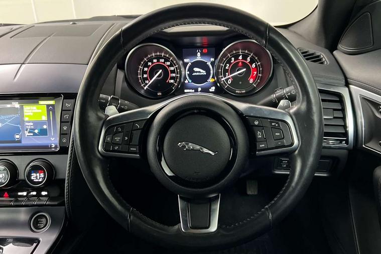 8" touch screen, Bluetooth telephone connectivity, InControl remote premium, Lane departure warning system, Navigation system, PAS, Rear parking aid, Trip computer, Sports suspension, Audio remote control, DAB Digital radio, InControl app, InControl protect, USB/aux input socket, Auto dimming rear view mirror, Automatic headlights, Body colour door mirrors, Body coloured bumpers, Bonnet louvres, Chrome exhaust tailpipe, Electric front windows, Headlight washers, Infra red reflective glass, LED tail lights, Rain sensor windscreen wipers, Satin black grille, Satin chrome window surround, Tinted glass, 12V Accessory socket in centre console, Air vents on dashboard, Cubby box in loadspace, Front centre armrest, Front headrests, Jaguar sense, Lumbar support, Overhead console, Pollen filter, Silver gearshift paddles, Twin front cupholders, ABS + EBD + EBA, Driver/Front Passenger airbags, DSC - Dynamic Stability Control, Dynamic mode, Electronic parking brake, Front/rear seatbelt pre-tensioners, Pass airbag/seat occupancy detector, Passenger airbag off kit, Pedestrian contact sensing and deployable bonnet, Seatbelt reminder for driver and front passenger, Side airbags, Torque vectoring brake, Tyre pressure monitoring system, Deadlocks, Drive away door locking, Engine immobiliser, Keyless start, Locking wheel nuts, Perimetric and volumetric anti theft alarm, Remote central locking, Two stage unlocking, Valet mode, Graphite interior trim,