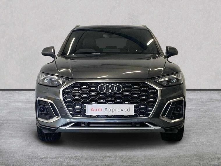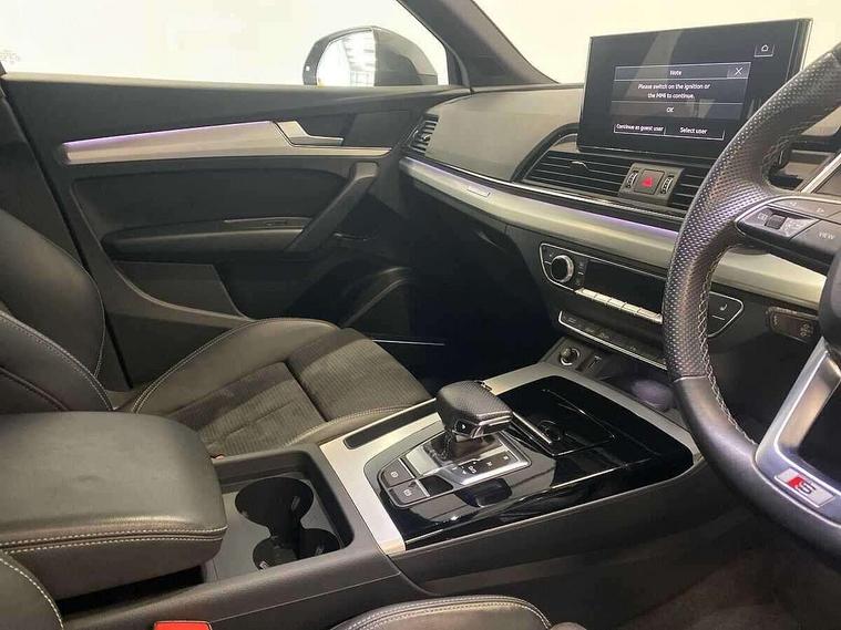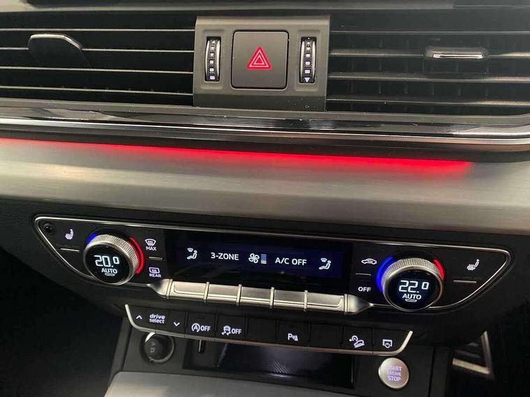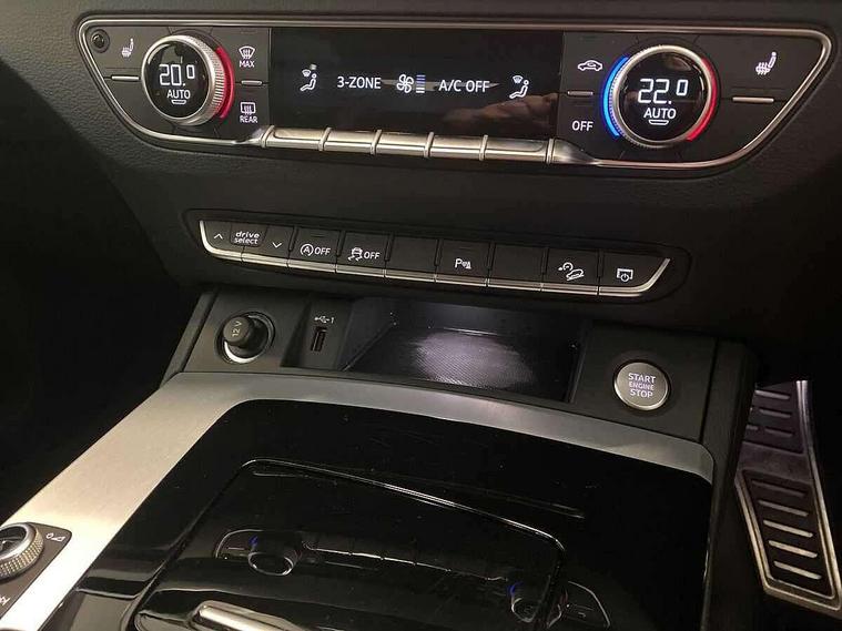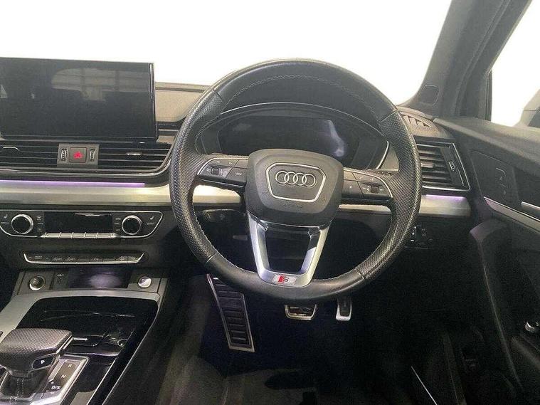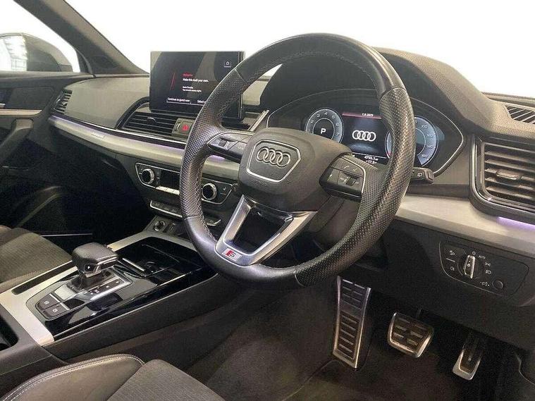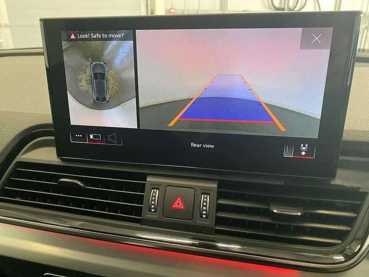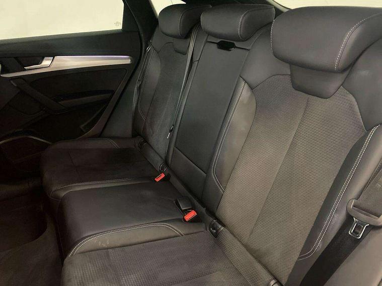 Audi connect safety and service (e-call), Audi connect with Amazon Alexa Integration, Audi drive select, Audi virtual cockpit plus with 12.3" screen and three different layout designs, Audi wireless smartphone interface, Automatic start-stop system with coasting functionality and efficiency programme, Bluetooth interface, Electro - mechanical power assisted steering, MMI navigation plus with 10.1" touch screen, Power tailgate, Reversing camera, Service interval indicator, Voice control system with Audi hotword activation "Hey Audi", 70 litre fuel tank, Quattro on demand, S line sports suspension, DAB Digital radio, Acoustic windscreen, Aluminium roof rails, Audi matrix LED headlights with dynamic front and rear indicators, Auto dimming door mirrors, Auto dimming rear view mirror, Automatic headlight adjustment, Automatic headlights and windscreen wipers, Body colour door mirrors, Body colour rear diffuser with matt aluminium silver surrounds, Body colour underbody protection, Chrome plated exhaust trims, Daytime running lights, Door sills in Selenite silver, Electric adjustable/heated/folding door mirrors, Front air inlet surrounds in aluminium, Front and rear electric windows, Front radiator grille in honeycomb design, Headlight washers, High level LED brake light, Lower bumpers painted in contrast Manhattan grey, Rear chrome trim strip below lights, Rear privacy glass and rear side windows, Rear side wing doors, Rear wiper, Roof bars, S Line badges on the front wings, S Line front and rear bumpers, S Line rear spoiler, S Line side skirts, 2 x USB charging port with aux input socket, 3 rear headrests, 40:20:40 split folding 3 rear bench seat in 2nd row with rear centre armrest, Black cloth headlining, Comfort front centre armrest, Contrast stitching on seats, steering wheel and gear lever gaiter, Deluxe 3 zone electronic climate control, Front head restraints, Front/rear floor mats, Gear lever in black leather, Heated front seats, Height/reach adjustable steering column, Illuminated door sill trims with S logo, ISOFIX child seat mounting and top tether, Manual seat adjustment with 4-way electric lumbar support, Removable luggage compartment floor, Single front passenger seat, Stainless steel pedals, Sunvisors with vanity mirrors, Trunk roller cover, High gloss pack - Q5, LED interior light pack - Q5, 3 point seatbelts on all seats, 6 airbags - Driver, front passenger, curtain and side airbags, Electrically operated child locks on rear doors, Electromechanical parking brake, Electronic stabilisation control including ABS, ASR and EDL, Front passenger airbag deactivation, Hill descent control, Hill hold assist, Multi collision brake assist, Pop-up bonnet for pedestrian protection, Pre sense city, Seat belt force limiter, Seatbelt monitoring, Tyre pressure warning, Warning triangle and first aid kit, Anti theft alarm, Anti-theft wheel bolts, Keyless Go access/ignition system, Remote central locking, Matt brushed aluminium inlays,