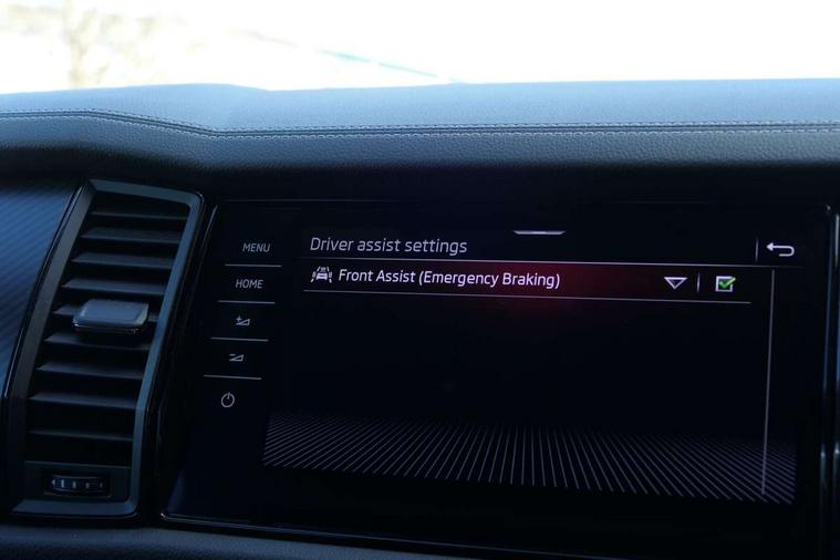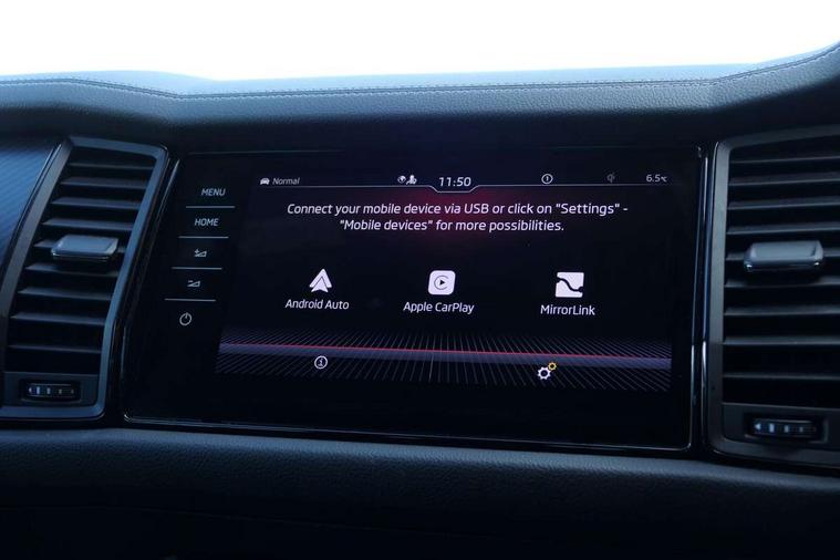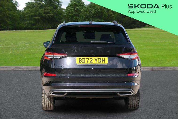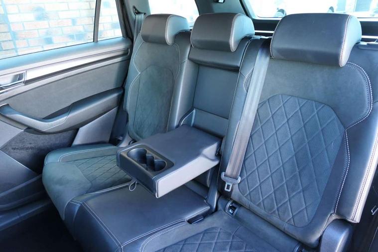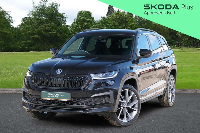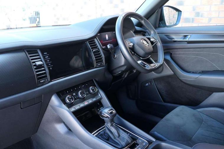 Bluetooth system, Columbus satellite navigation with 9.2" touchscreen, integrated Wi-Fi, web radio, Digital voice enhancement, e call+, ECO Stop/start function, Exterior temperature indicator, Progressive steering, Rear view camera, Smartlink wireless for apple carplay and wired for android auto, Speed limiter, Tailgate unlocking from outside, USB C Port x 2 in front centre console, Wireless charging, 8 Speakers, DAB Digital radio, Aero front windscreen wipers with intermittent function, Aero rear window wiper, Auto dimming rear view mirror, Black roof rails, Black sports styling including front grille and window surrounds, Black wheel arch surrounds, Body colour bumpers, Body colour door handles, Electric adjustable/heated/folding door mirrors, driver side auto dimming with boarding sports and memory function, Electric front and rear windows, Extended rear spoiler with finlets in gloss black, Front fog lights, Full LED matrix headlights with AFS (adaptive front light system), cornering function and AWL (all weather lighting system), Gloss black door mirrors, Headlight washers, Heated rear window, Invisible tailpipe, LED daytime running lights, LED rear fog light, LED third brake light in rear spoiler, Light assistant (coming/leaving home/tunnel light), Off-road style lower front bumper element, Privacy glass, Rain and light sensors, Rear diffuser, Rear LED lights (high functionality) with welcome effect and dynamic indicators, Rear side wing doors, Safety reflectors on front and rear doors, Sportline badge on front fender, Sports front and rear bumpers including lower rear chrome strip, Tailgate lettering in Black, Window control switches with black trim, 12V socket in boot, 2 rails with 2 hooks, 2 seat bench in 3rd row, 3 seat bench in 2nd row, 4 foldable roof handles with rear coat hooks, 60:40 foldable rear seat with sliding adjustment and backrest angle adjustment, Aluminium pedals, Black roof headlining, Bottle holders in door panel in the 1.5 litre front and 1 litre rear, Cargo storage compartments, Chrome headlight control button, Chrome interior door handles, Coat hooks on B pillar, Covered storage compartment on driver side, Decorative door sill covers, Front centre armrest with storage compartment, cup holder and 12V socket, Front courtesy lights, Gear shift lever with chrome frame and black gloss insert, Grey stitching in front and rear armrests and door armrests + door inserts, Height adjustable front headrests, Illuminated and cooled glovebox, Illuminated luggage compartment, Isofix child seat fittings in outer rear seats with top tether, Manually adjustable steering column, Microsuede door panels, Net programme in boot (1x horizontal Net, 2x vertical Nets), Overhead glasses storage compartment, Pollen filter, Rear centre armrest with cupholders, Single front passenger seat, Sliding trunk cover, Small Bags on the inner sides of the front backrests, Sports seats, Sunvisors with illuminated vanity mirrors, Three rear height adjustable headrests, Ticket holder on A Pillar, Umbrella in door panel, Variable boot floor, LED Interior light pack - Kodiaq, Auto door release and activation of warning lights in the event of an accident, Child locks on rear doors, Driver and front passenger airbag with knee airbag and front passenger airbag deactivation, Electronic parking brake with hill start assist, Emergency rear braking signal, ESC (incl. ABS+MSR+ASR+EDS+HBA+DSR+RBS+MKB), Front assist with autonomous emergency braking, Front side airbags with curtain airbags, Fuel cut off safety device, Height adjustable front 3 point seatbelts + pretensioners, Hill hold control, Rear disc brakes, Safety vest holder in door, Seat belt reminder for all seats, Three point rear seat belts, Two tone horn, Tyre pressure monitor, Alarm with interior monitoring and tilt sensor with safe function, Anti-theft wheel bolts, Immobiliser, Keyless entry and start system (KESSY), Remote central locking with 2 keys, Black air vent surround, Carbon finish dashboard and door inserts, Grey stitching in dashboard, 20" Vega Anthracite alloy wheels, Temporary spare wheel (space saver),