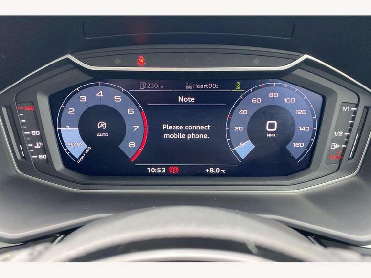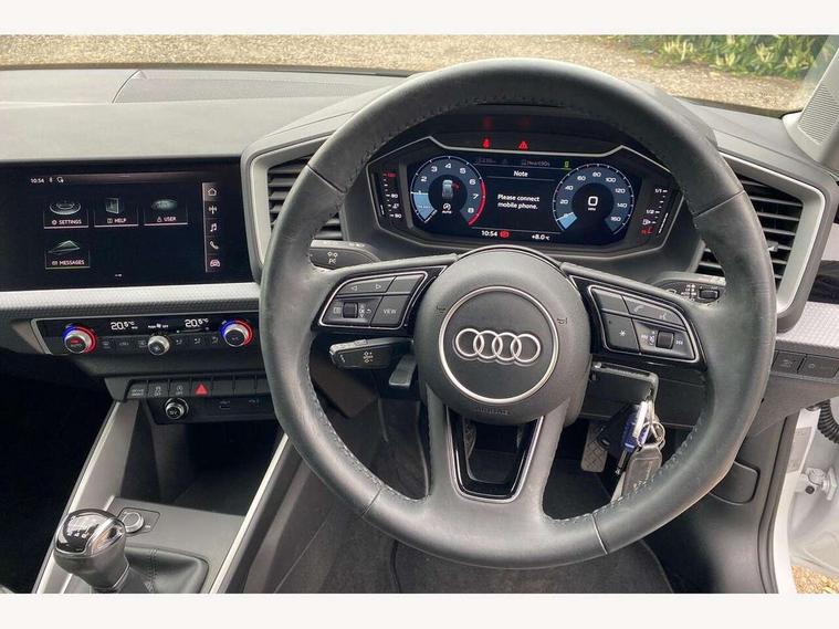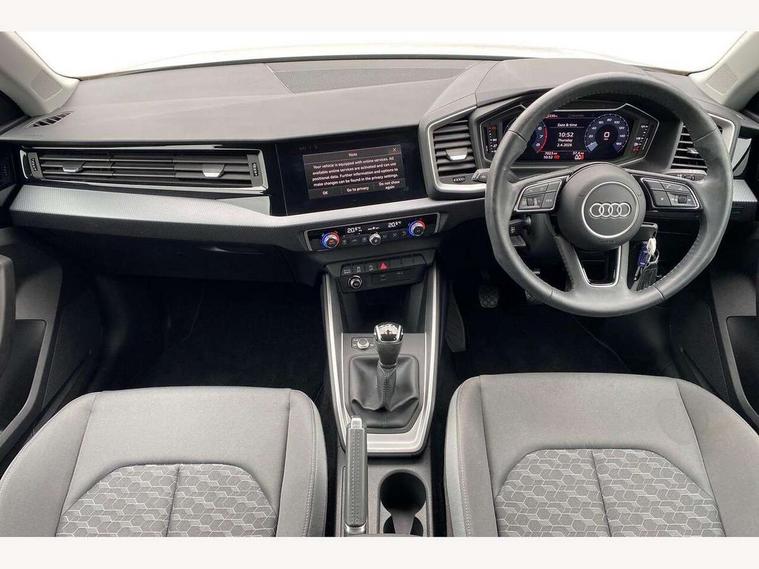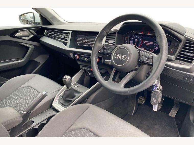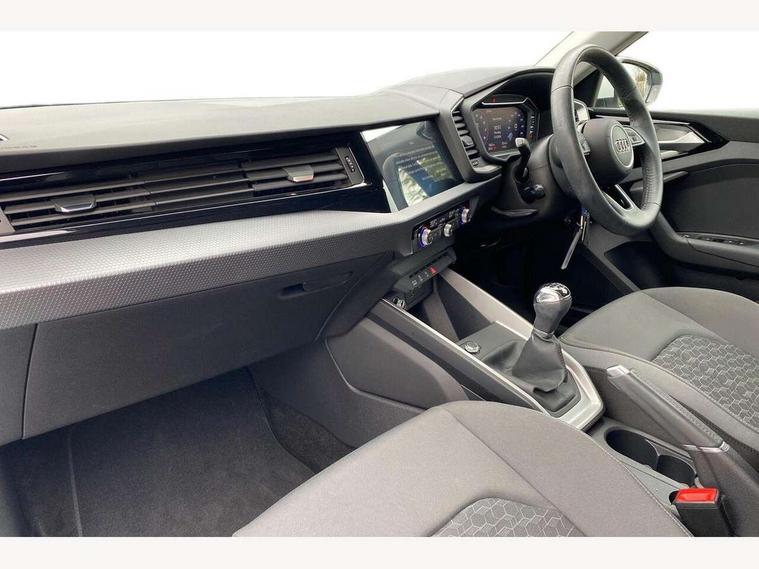 10.25" Digital instrument cluster display classis style instrument dials + speed, odometer, time, outside temperature, telephone menu + fuel level warning, Audi connect safety emergency and service including E-call, Audi drive select - power steering assistance + engine, Audi smartphone interface with connect compatible smartphone via USB directly MMI display + Nav, music, third party apps controlled via MMI controller, Automatic start/stop system, Bluetooth interface, Cruise control, Driver's information system, Electromechanical power steering, Lane departure warning system, Rear parking sensor, Service interval indicator, Speed limiter, Voice control system, Washer fluid level indicator, Dynamic suspension, 1 x SDXC card reader, 1 x USB type C and 1 USB type A charging points, DAB Digital radio, MMI radio plus with 8.8" colour MMI display screen and MMI touch, Auto dimming rear view mirror, Body coloured bumpers, Body coloured door mirrors, Electric front and rear windows, Electrically adjustable, heated, folding door mirrors with integrated LED side indicator, Front side air inlets in grained matt black and C frame in titanium black, Heat insulating glass windscreen and side windows, Heated rear windscreen, LED headlights with LED rear lights + dynamic rear indicators + headlight adjustment and high beam, turning light + LED daytime running lights, Radiator grille and rear diffuser in matt titanium black, Radiator protective grille frame in matt aluminium silver, Rain and light sensors, Rear fog lights, Rear wiper, Scandium grey tailpipe trim, Side front spoiler lips in grained matt black, 12V socket in centre console with two cup holders, 3 rear seats with headrests, 40:60 Split folding rear seat or folded fully, Door sill trims with aluminium inlay, Driver and passenger seat with manual height adjust with forward and backwards adjustment, Front head restraints, Front/rear floor mats, Height and reach adjustable steering wheel, ISOFIX child seat mounting for front passenger and outer rear seats including top tether attachment point of outer rear seats, Leather gear knob with aluminium trim, Leatherette handbrake grip, Luggage compartment light with front and rear reading lights, Manually adjustable lumbar support in front seats, Novum cloth upholstery with front sport seats, Titanium grey cloth headlining, Luggage compartment pack - A1, 3x3 point rear seatbelts, Audi pre-sense front with pedestrain and cyclist recognition, Brake assist function, Driver and front passenger airbag with front side and head airbags, Electronic Stability Control including ABS, EBD, ASR and EDL, Front and rear seatbelt reminder, Front passenger airbag deactivation switch, Hill hold assist, Seatbelt height adjustment for front seats, Seatbelt monitoring, Tyre pressure warning light, Warning triangle and first aid kit, Anti theft alarm, Anti theft wheel bolts and loose wheel warning, Immobiliser, Remote central locking with 2 foldaway keys, Aluminium trim for control switches, air vents and digital instrument cluster, Silver grey accent areas including air vents, door handle recesses and centre console in diamond paint finish, Slate grey inlays polygon structure in fine paint finish,