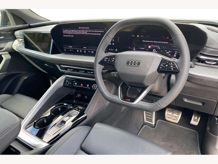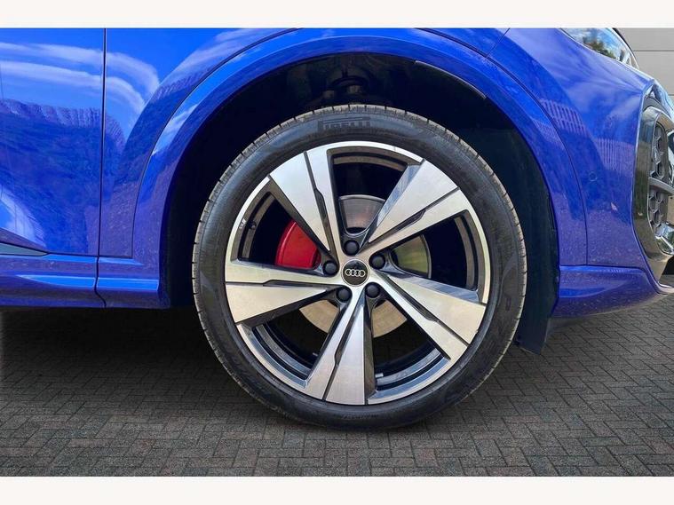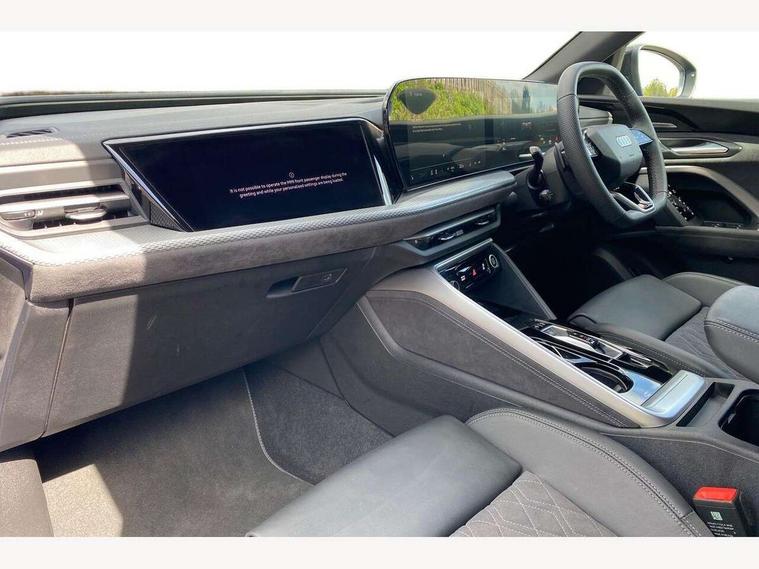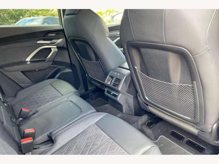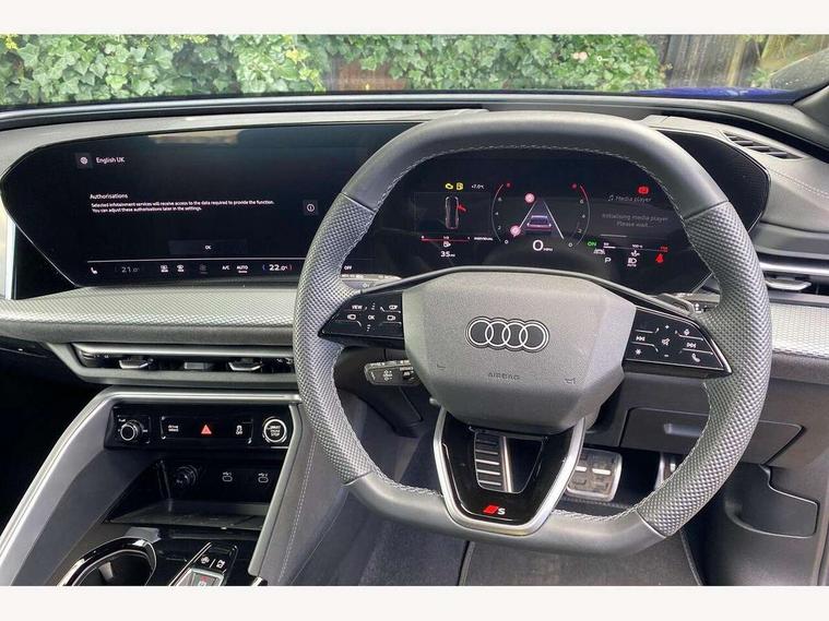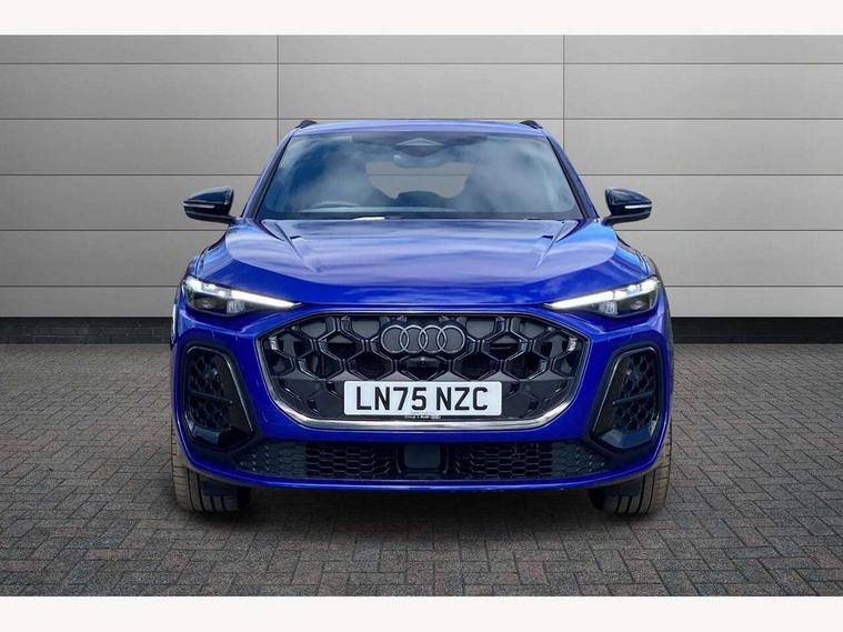 Adaptive cruise control, Advanced driver attention alert, Audi application store, Audi connect emergency call and service, Audi drive select, Audi smartphone interface, Audi virtual cockpit plus with 11.9" OLED colour display, Camera based traffic sign recognition, Fatigue monitor, Front cross traffic intersection assist, Lane change assistant with exit warning system, rear cross traffic alert and rear turn assist, Lane departure warning with emergency assist, MMI 10.9" front passenger touch display, MMI navigation plus with high resolution 14.5" OLED touchscreen colour display, Park assist plus, Parking system plus with 360 display, PAS, Reversing camera, Swerve assist and turn assist, Top view camera, Traffic sign based speed limiter, 2 USB-C ports in both the front and rear, Audi sound system impressive sound with 8 loudspeakers including centre speaker and subwoofer, 6-channel amplifier with a total output of 180 watts, DAB Digital radio, Smartphone compartment with wireless charging, Active digital light signatures - Six additional combinations of active daytime running light signature, Auto dimming rear view mirror, Black roof rails, Coming/leaving home lighting function, Electrically adjustable heated and folding + automatically dimming exterior mirrors, Exhaust tailpipes in dark chrome, Front and rear electric windows, Front door sill trims with aluminium inlays, illuminated with 'S' logo, Full body paint finish, Grill frame, inlay and front air inlets in matt anthracite chrome, Headlight cleaning system, Heated rear window, High beam assist, High gloss window surrounds, LED rear lights pro incl. dynamic rear indicators and illuminated light strip with animated coming and leaving home function, Logo projection light in exterior mirrors, Matrix LED headlights, Memory function for door mirrors, Privacy glass, Projection third brake light for rear window in LED, Radiator grille in phantom black, Rear and side windows with heat insulating glass, Rear honeycombe grille in matt black with inlay in matt anthracite chrome, Rear side wing doors, Rear wash/wipe, S Line badge on the front wings, Towbar preparation, Windscreen with acoustic glazing, 3 rear head restraints, 3 seat bench in 2nd row, 3 spoke leather steering wheel with multi-function buttons with touch control, flattened on top and bottom, with S badging and contrast stitching, 4 way electric lumbar support for driver and front passenger, 40:20:40 split folding rear seat bench with centre armrest and cup holders, Comfort centre armrest front, Deluxe 3 zone electronic climate control, Dinamica microfiber/leather upholstery with diamond stitching, Electrically adjustable front seats with memory function for driver's side, Front and rear floor mats, Front sport seats with integrated head restraints, Headlining in black cloth, Heated front seats, i-Size child seat mounting on the front passenger side and outer rear seats, i-Size and top tether on the outer rear seats, Interior trim in aluminium look, Luggage compartment lid, electrically opening and closing, Manual steering column adjustment, S embossed logo on front sport seats, Single front passenger seat, Softwrap in Dinamica, Stainless steel pedals and footrest, Steering wheel grips in perforated leather and shift paddles, Ambient lighting package plus - Q5, Black styling package plus - Q5, Storage and luggage compartment pack - Q5, 3x3 point rear seatbelts, ABS, Acoustic vehicle alerting system, Convenience key with safelock, Driver and front passenger airbag with passenger airbag deactivation, Electric child safety locks, First aid kit with warning triangle and high visibility vests, Front emergency brake assist, Front side airbags with head airbag system and front interaction airbag, Hill hold assist, Occupant detection in rear seat area, Proactive passenger protection system for front, sides and rear, Red brake calipers, Side airbags in front and rear with head airbag system and front interaction airbag, Tyre pressure loss indicator, Anti theft alarm, Anti-theft wheel bolts, Remote control key with SAFELOCK and keyless go, Accent surfaces and control buttons in gloss black, Black dashboard with contrast stitching, Steel grey seat stitching, Upper and lower interior elements in dinamica microfiber, Tyre repair kit,