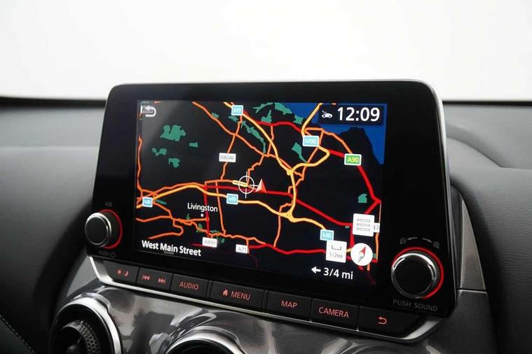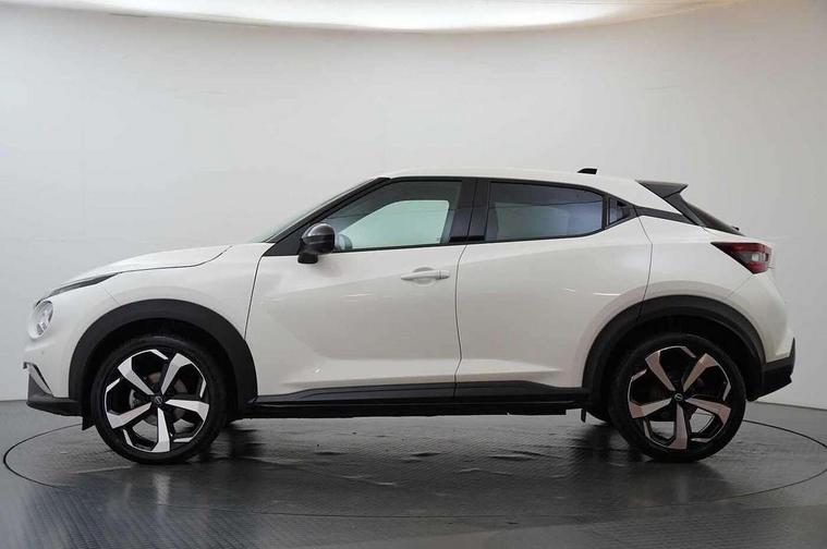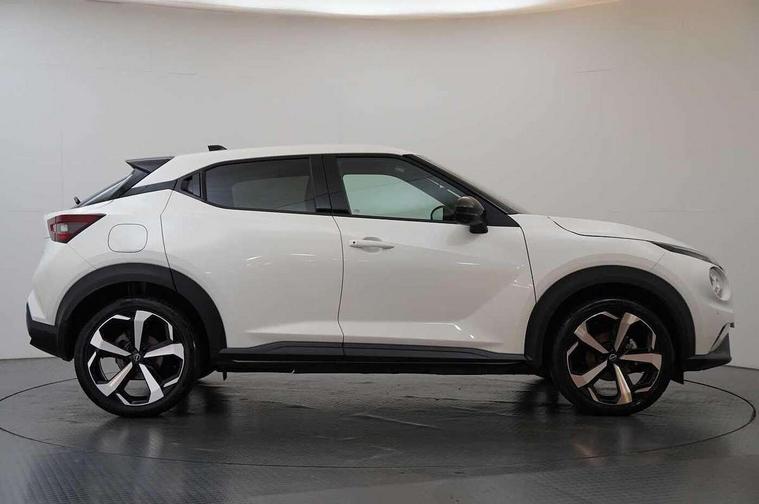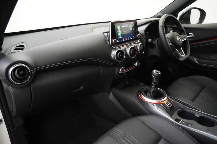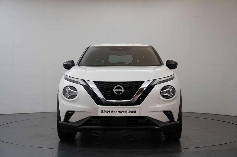 7" full colour TFT screen combimeter, Apple CarPlay and Google Android auto, Drive modes select (Eco, normal and sport), Emergency and breakdown call, Front parking sensor, Idle start/stop system, Intelligent lane intervention, Lane departure warning system, Nissan connect 8" touch screen entertainment system, Nissan connect nav with TomTom traffic, Nissan connect services and Wifi connection, Outside temperature sensor, Power Steering, Rear parking sensor, Traffic sign recognition, Trip computer, Voice recognition, Gasoline particulate filter, 10 Bose speakers 6 speakers and 2 headrest speakers for driver/passenger seats, Bluetooth system, USB, Aux-in and 12V socket, Bose personal sound stage control, DAB Digital radio, Rear console USB port, Auto dimming interior rear view mirror, Auto headlights, Automatic hazard signal with emergency stop signal, Body colour bumpers, Body colour door handles, Electrically adjustable door mirrors with integrated indicators, Follow me home headlights, Front and rear electric window with one touch driver window, Heated and auto folding door mirrors, High beam assist, LED 3rd brake light, LED daytime running lights, LED front fog lights, LED headlamps, LED rear fog lamp, LED rear lamps, Rain sensor windscreen wipers, Rear privacy glass, Rear side wing doors, Rear wiper, Roof spoiler, Shark fin roof antenna in Pearl Black, Thermaclear heated windscreen, Three blink turn signal, 3 height adjustable rear headrests, 3 seat bench in 2nd row, 60/40 split folding rear seat, Automatic climate control, Card holder on driver sunvisor, Door ambient lighting, Driver and passenger sliding and reclining seats, Driver seat back pocket, Driver side rear coat hanger, Driver/passenger sunvisors and vanity mirrors, Front and rear cabin lights, Front armrest, Front door pockets with bottle holders, Front head restraints, Front passenger isofix child seat anchorage point, Front/rear passenger grab handles, Gear console ambient circle lighting, Grey synthetic leather kneepad, Heated front seats, Height adjustable driver's seat, Height adjustable passenger seat, Internal chrome door handles, Leather gearshift knob, Leather steering wheel, Luggage board, Luggage space lighting, Monoform sporty seats, Multifunction steering wheel, Passenger seat back pocket, Rear door bottle holders, Single front passenger seat, Synthetic leather upholstery, Telescopic steering wheel adjustment, Two cupholders in front centre console, Two rear isofix child seat anchorage points with top tether, Welcome light and console tray ambient lighting, Advanced safety shield pack - Juke, ABS with EBD and brake assist, Active ride control, Active Trace Control, Driver and passenger airbags, Driver and passenger side airbags, Electric handbrake with auto hold function, Electronic Stability Programme (ESP), Front and rear curtain airbags, Height adjustable seatbelts, Hill start assist, Intelligent emergency braking with pedestrian and cyclist recognition, Rear door child safety locks, Seatbelt reminder for driver/front passenger and rear seats, Single tone horn, Three 3 point rear seatbelts, Traction control, Tyre pressure monitoring system, VDC Dynamic Vehicle Control, Ventilated rear brake discs, Alarm, Immobiliser, Intelligent key and start push button with walk away lock and approach unlock functions, Remote central locking,
