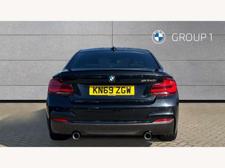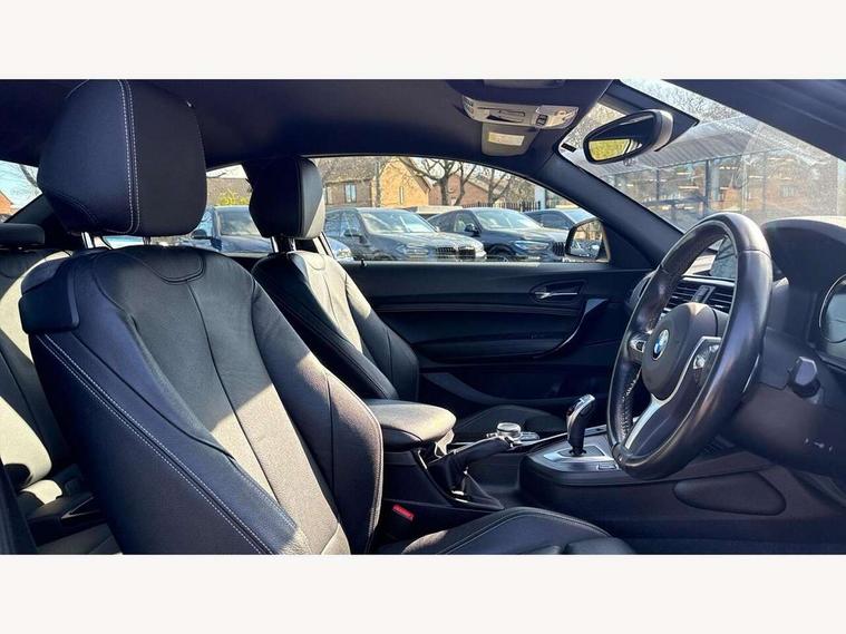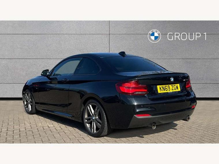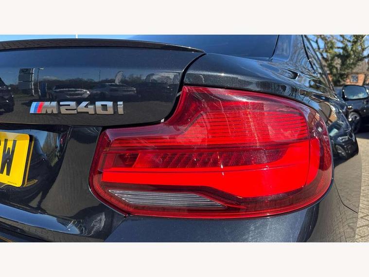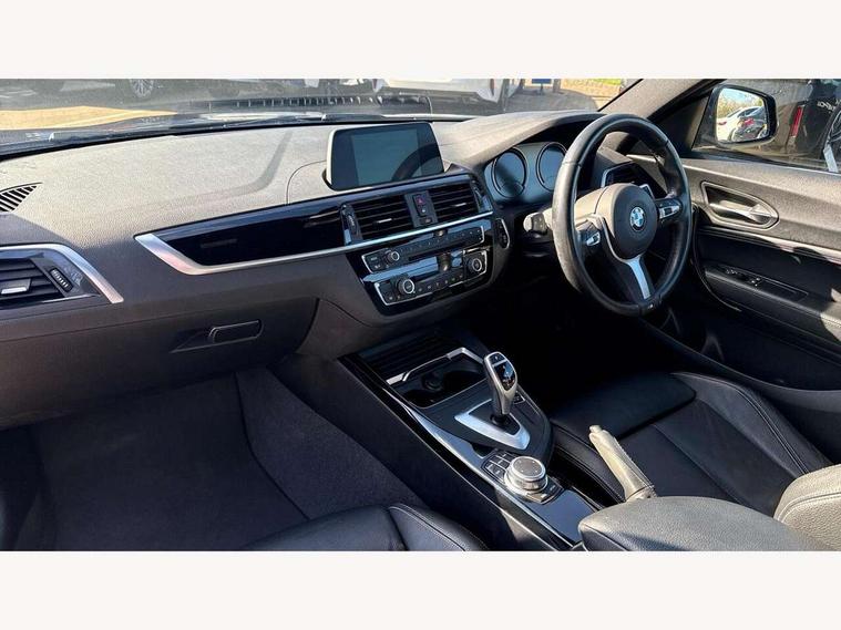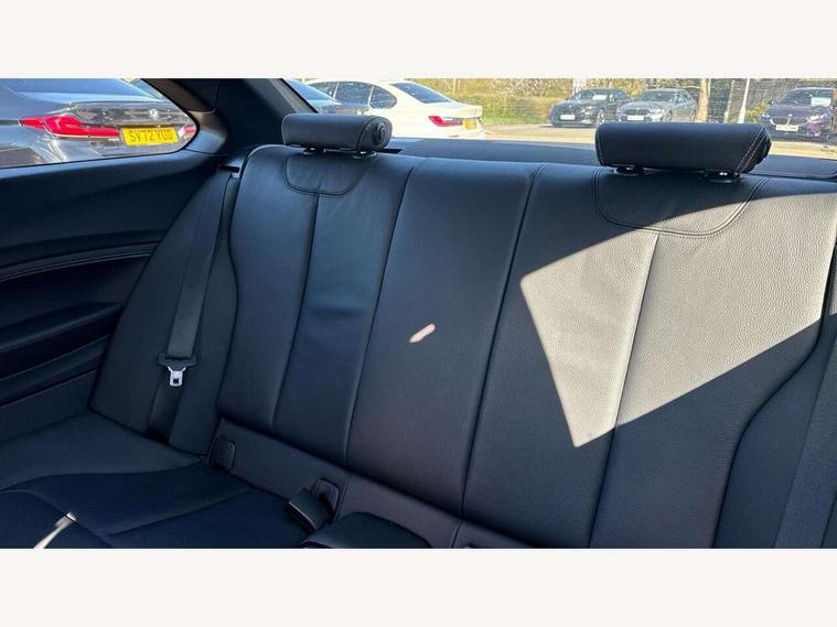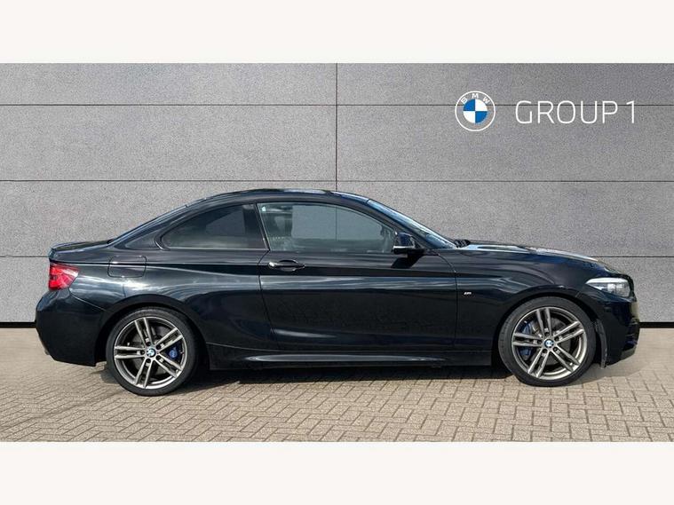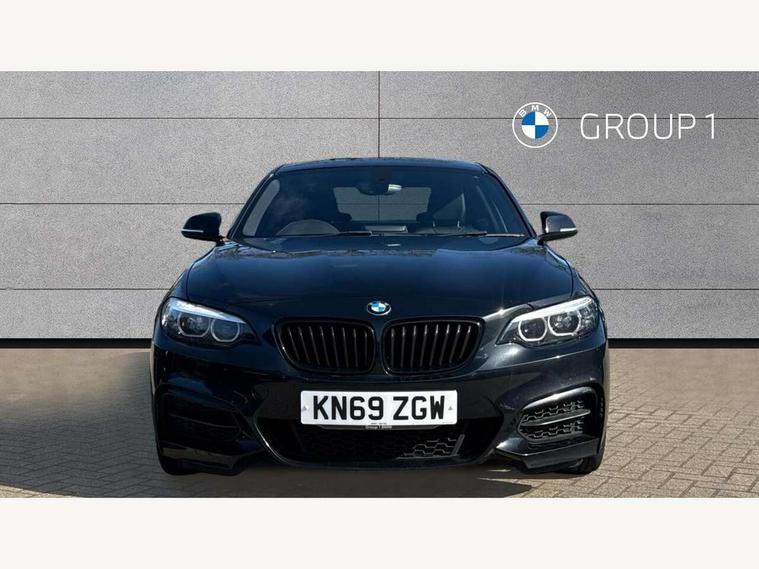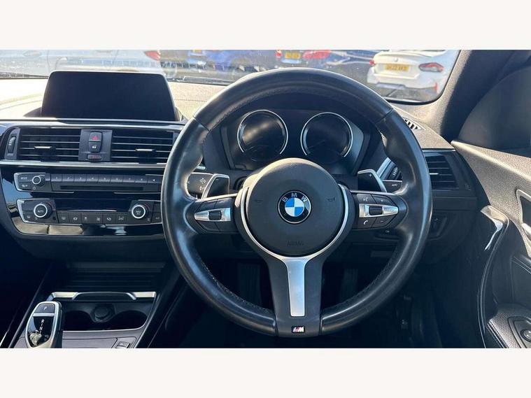 Auto start-stop, BMW Online services, BMW remote services, BMW Teleservices, Door/boot open warning, Front and rear Brake pad wear indicator, Instrument cluster with speedometer with miles per hour read out, tachometer and fuel gauge, Lights on warning by audio warning signal when ignition is switched off, Oil sensor for level and grade, warning by check control system, Oil temperature display via on board computer in instrument cluster, On board computer - average speed+fuel consumption, service interval, clock/date, odometer/trip meter, outside temperature display and ice warning, Optimum shift indicator, Personal Profile - automatic lock when driving away selectable, Real time traffic information, Speed limiter, Variable sport steering, Battery age recognition function, Drive performance control with ECO PRO comfort + sport mode, Engine cover with BMW roundel twin power turbo designation, Oil dipstick, Sports function on gearbox with steering wheel mounted gearshift paddles, DAB Digital radio, 2 speed adjustable intermittent wipers with wash/wipe function, Automatic headlight beam throw control, Automatically dimming rear view mirror, Body colour bumpers, Body colour door handles, Body colour roof mouldings, Cerium grey air blades, Clear lenses direction indicator lights, Darkened rear lights with LED light bars, Daytime driving lights, Direction indicator side lights integrated exterior mirrors, Dual dark chrome exhaust tailpipes, Dynamic brake lights, Electric windows - front and rear, with open/close fingertip control, anti-trap facility and comfort closing, Electrically adjustable and heated M specific exterior mirrors, Follow me home headlights, Front air inlet with high gloss black finish, Green tinted heat protection glazing, Headlight range control, Heated windscreen washer jets, High gloss black mirror caps, High level third brake light, LED rear lights, LED welcome home lights, Lightweight engineering, M aerodynamic body styling, M rear spoiler, Rain sensor with automatic headlight activation, Rear bumper with high gloss black finish, Rear fog lights, Rear window aerial, Reversing light in rear light cluster, Shark fin roof aerial, Visible VIN plate, Welcome lighting, 12V power socket in centre console, 12V power socket in passenger footwell, 3 Spoke M sport nappa leather multifunction steering wheel, Anthracite headlining, Conditioned based service, Dakota leather upholstery, Front and rear side armrests integrated into door trim, Front door sill finishers with M designation, Front door storage bins, Front floor mats in velour, Front head restraints, Front sliding armrest, Glove box handle with chrome surround, Isofix child seat for two outer rear seats, Leather gearknob, Leather handbrake lever, Luggage compartment access via BMW roundel, Manually adjustment steering wheel column, Rear coat hooks, Rear folding head restraints, Storage compartment in rear centre console, Two cupholders with sliding cover and inlay mat, Interior comfort pack - 2 Series/M2, Active differential brake (ADB), electronic differential lock in DSC-OFF mode, Airbag - Front driver and passenger, front and rear head, front side, curtain head protection, manual deactivation of front passenger airbag possible, Anti lock braking system (ABS) with brake assist, Automatic Stability Control (ASC), BMW emergency call, Brake drying, Brake energy regeneration, Braking readiness, Cornering brake control (CBC), Crash sensor activating central locking release with hazard warning lights and interior lighting + battery safety cut-off, Dynamic brake control, Dynamic stability control + (DSC+), Dynamic Traction Control - DTC, Front pyrotechnic belt tensioners and belt force limiter, rear coaded belt buckles, Hill start assist, M Sport braking system, Seat belt security check for driver and front passenger, Side impact protection, Twin horns, Tyre pressure monitoring with 3 level warning strategy, Warning triangle and first aid kit, Central locking switch for all doors, fuel filler cap and luggage compartment, Check control system for monitoring of lights and door/luggage compartment open warning, Drive away door locking, Locking wheel bolts, Remote control including integrated key with blue insert, Start/stop button with Comfort Go keyless engine start and auto Start/stop deactivation button, Thatcham category 1 alarm system with remote control and engine immobiliser, Reduced rolling resistance tyres,