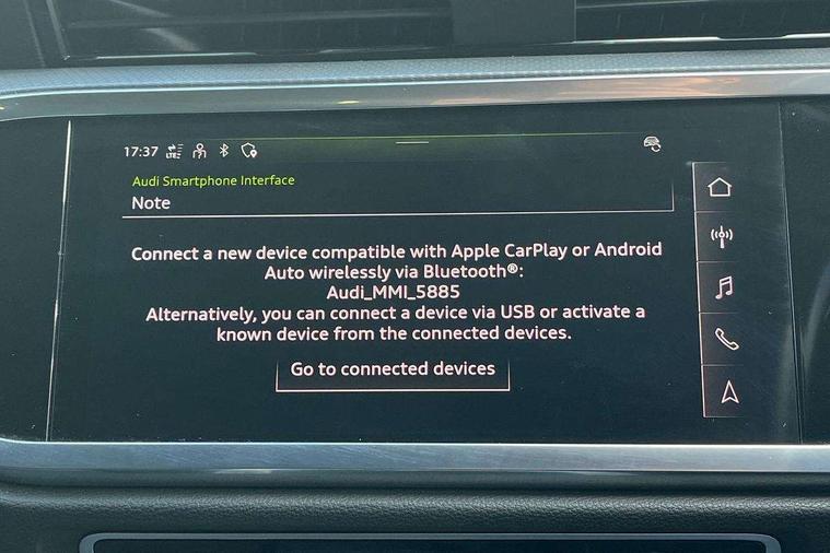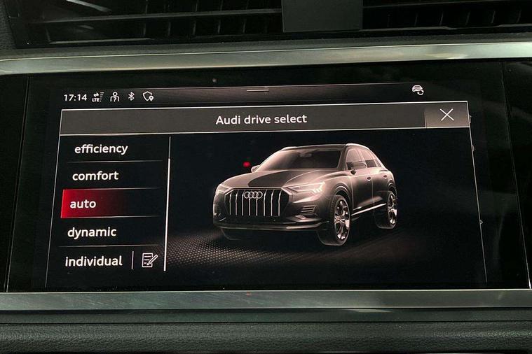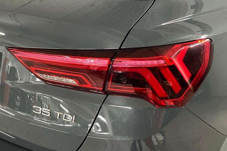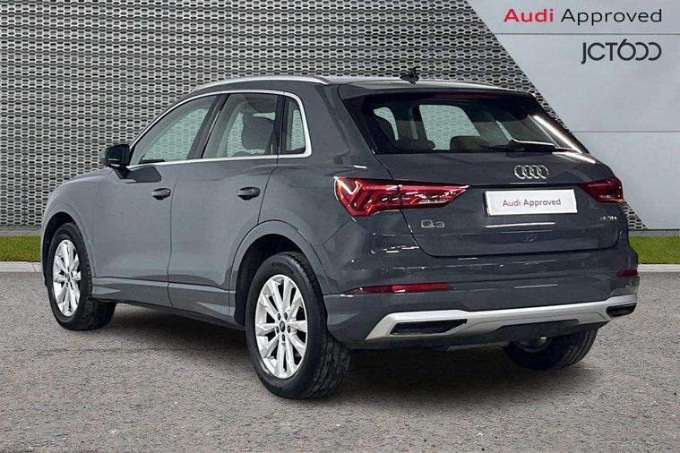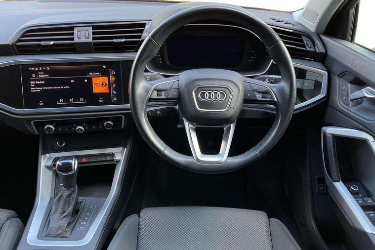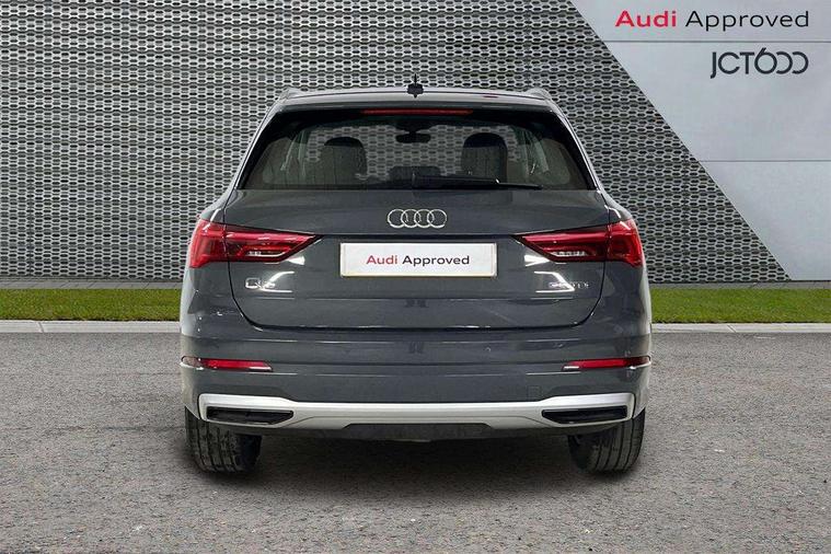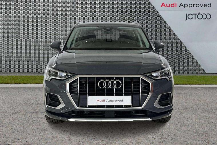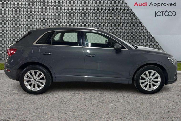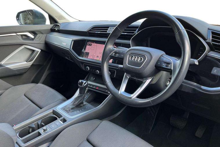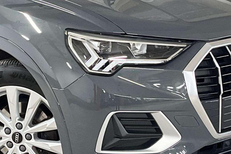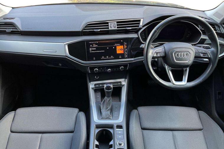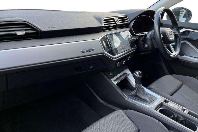 Micrometallic silver inlay, MMI touch colour display in glass look, black with surround in aluminium look, Non smoking pack - Q3, Anti theft alarm, Anti theft wheel bolts, Audi pre-sense front with pedestrain and cyclist recognition, Immobiliser, Remote central locking, 2 USB-C ports with charge and data functions, 6 passive loudspeakers, DAB digital radio module, 3x3 point rear seatbelts, 6 airbags - Driver, front passenger, curtain and side windows, Electromechanical parking brake, Electronic stabilisation control including ABS, ASR and EDL, Front seatbelt reminder, Hill descent control, Hill hold assist, Manual child lock in rear doors, Pre sense basic, Seatbelt monitoring, Tyre pressure warning, Warning triangle and first aid kit, Acoustic windscreen, Aluminium roof rails, Aluminium window trim, Auto dimming frameless rear view mirror, Body coloured bumpers, Electrically folding, adjustable and heated door mirrors with integrated LED side indicators and kerb view function for passenger side, Front and rear electric windows, Front fog lights, Front side air inlets in matt selenite silver, Front spoiler in matt selenite silver, Grille vertical bars in aluminium silver/Matt, High gloss black finish B and C pillars, LED headlights with LED daytime running lights, LED rear lights, LED third brake light, Rain and light sensors, Rear diffuser strip in matt selenite silver, Rear side wing doors, Rear wiper, Silver chrome grille surround, Titanium black radiator grille, Variable front intermittent wipers, 12V socket in rear centre console, 3 seat bench in 2nd row, 3 spoke multi-function leather steering wheel, 40:20:40 folding with manual adjustment for 60:40 forwards/backwards position and backrest angle, Door sill trims with aluminium inlay, Dual zone electronic climate control, Front and rear floor mats, Front and rear headrests, Front and rear roof module including reading lights, Front centre armrest, Glove compartment lighting, Height and reach adjustable steering wheel, ISOFIX child seat mounting for front passenger with airbag deactivation and outer rear seat including top tether attachment point for outer rear seats, Luggage compartment light, Lunar silver cloth headlining, Manual front seats with height adjustment, Single front passenger seat, Stainless steel luggage compartment sill finisher, Amazon alexa Integration, Audi connect safety and service (e-call), Audi drive select, Audi lane departure warning, Audi smartphone interface includes wireless Apple carplay/Android Auto, Audi Virtual Cockpit - 10.25" display, Bluetooth interface, Camera based traffic sign recognition, MMI Navigation Plus with high resolution 10.1 inch touchscreen colour display, Power operated tailgate, Progressive steering, Service interval indicator, Start stop system with recuperation, Voice control system with natural language interaction, Diesel particulate filter, Standard suspension,