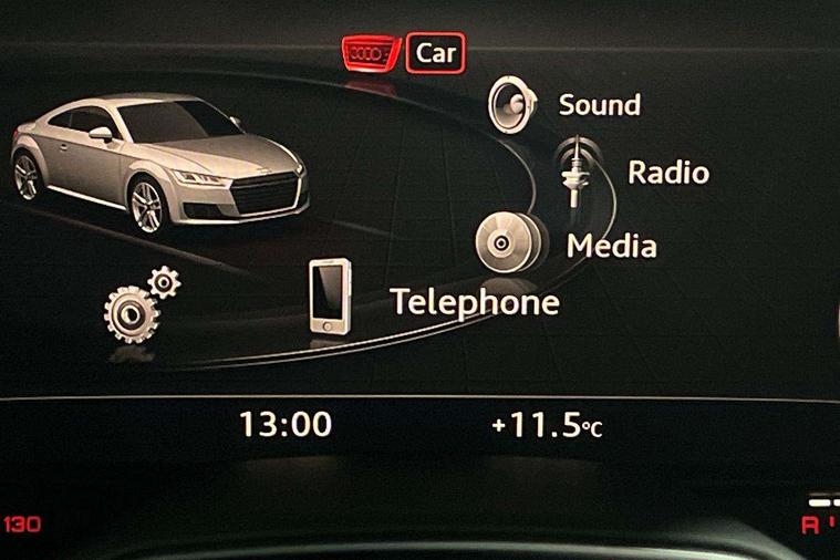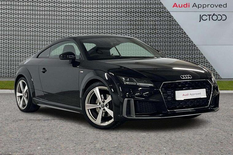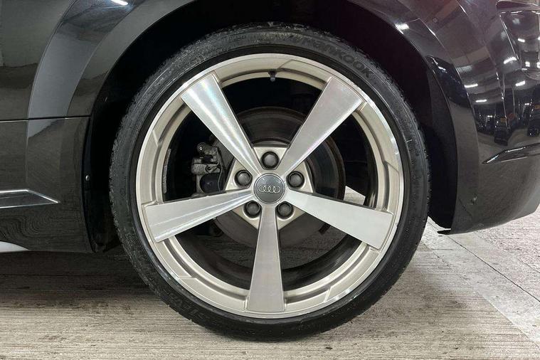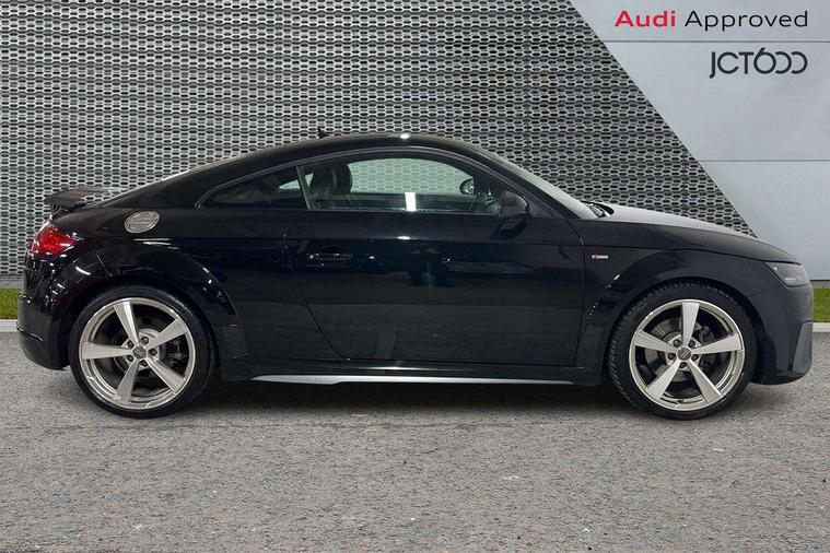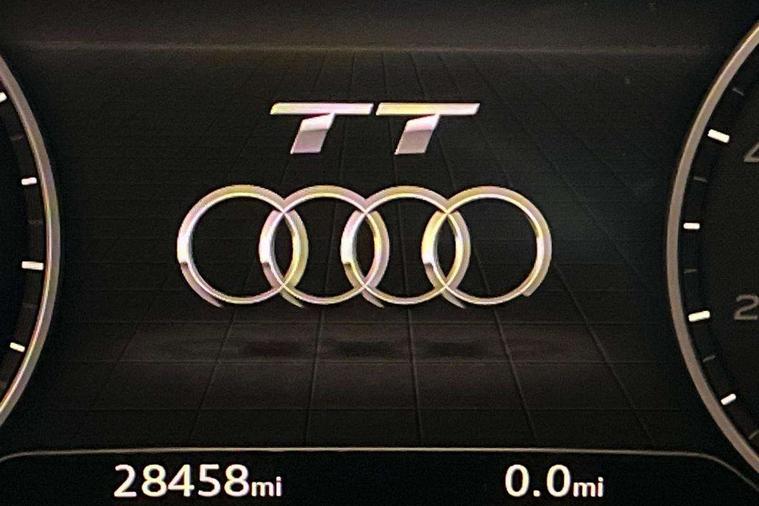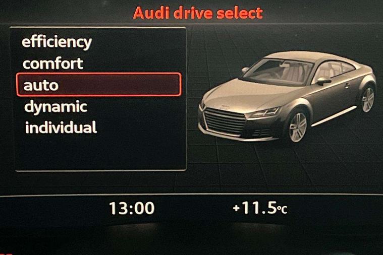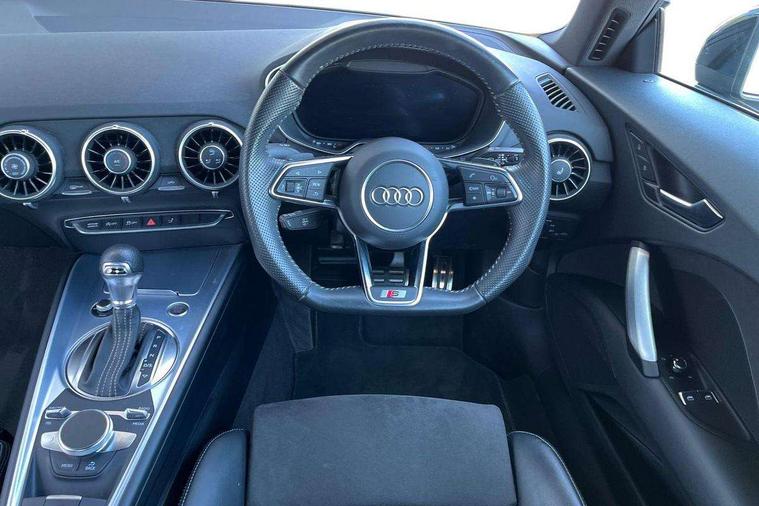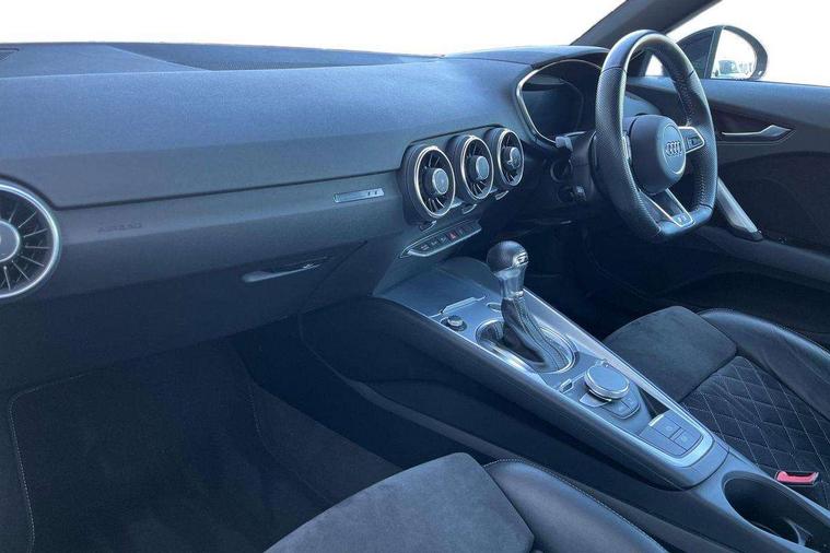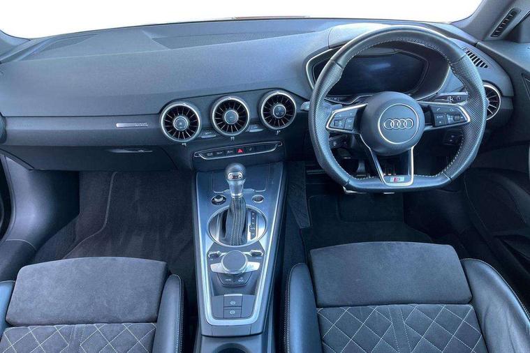 Audi drive select with 4 Pre configured modes, Audi virtual cockpit - 12.3" high-resolution LCD display with fully customisable instrument cluster, Cruise control + speed limiter, MMI touch panel, Mobile phone preparation with bluetooth interface, Progressive power assisted steering, Rear parking sensors, Service interval indicator, Start/Stop system with energy recuperation, TP memo, 8 Speakers, AM/FM radio, Audi music interface, Bluetooth audio streaming, DAB Digital radio, MMI Radio with CD player and SD/XC card slot, Auto dimming rear view mirror, Auto headlight range control, Body colour bumpers, Dynamic rear indicators, Electric front windows, Front fog lights, Green tinted heat insulating glass, Headlight wash system, High gloss black radiator grille, LED daytime running lights, Light and rain sensors, Retractable rear boot spoiler, S line badges on front wings, S Line body styling, S Line front and rear bumpers, S line rear diffuser with platinum grey insert, S line sill plates, Sunband for windscreen, 12V socket, 3 spoke flat bottomed high multi-function leather sport steering wheel with gearshift paddles, 4 way electric lumbar support for driver and front passenger, Black headlining, Door sill trims with S line logo, Extended aluminium look with stainless steel pedals, Front centre armrest, Front super sports seats, Heated front seats, Height adjustable driver's seat, Height adjustable front head restraints, Height/reach adjust steering wheel, ISOFIX child seat mounting for front passenger seat with airbag deactivation, Perforated leather gearknob, Rear top tether child seat ISOFIX attachment, S Line badge on steering wheel, Split folding rear seat, Top tether anchor plate for isofix child seat, Non smoking pack - TT/TT RS, 3 point front seat belts, ABS, ASR traction control, Brake energy regeneration, Curtain airbags, Driver and front passenger airbag with front passenger airbag deactivation, EDL traction control, Electromechanical parking brake, ESP, First aid kit, Front side airbags, Head airbags, Hill hold assist, Roll bar in glossy black, Seatbelt warning, Tyre pressure warning, Warning triangle, Anti theft alarm, Anti theft wheel bolts, Immobiliser, Keyless Go, Remote central locking, Matt brushed aluminium inlays, Tool kit, Tyre repair kit,