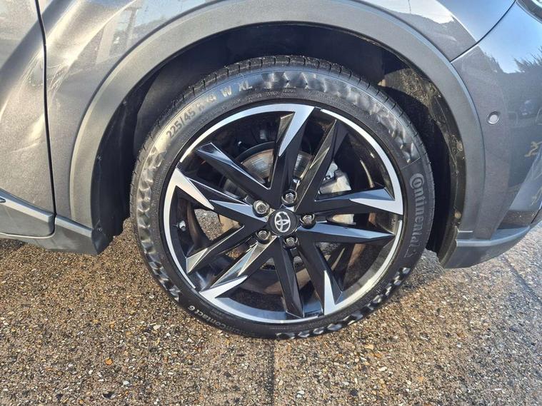 4.2" coloured TFT screen for multi-information display, Adaptive cruise control, Bluetooth connectivity, E-call, Electric power steering, Hybrid system indicator, Lane departure alert with steering control, Remote boot door release in cabin, Remote boot door release in key, Reversing camera, Road sign assist - RSA, Simple Intelligent parking assist, Touch 2 Go navigation system, Trip computer, Voice recognition, Vehicle Stability Control (VSC), 6 speakers, AM/FM radio, DAB Radio (Digital Audio Broadcasting), Toyota touch 2 multimedia system with 8" display, USB connector, Wi-fi connectivity, Adaptive front light system, Adaptive LED Headlights, Anti-jam protection on power windows, Auto high beam, Auto up and down function on all power windows, Automatic headlight levelling, Automatic headlights, Automatic headlights cut-off, Black and body coloured rear bumper, Black upper front grille, Body colour door handles, Body colour door mirrors, Body coloured front bumper, Boot door release with push button, Chrome front lower bumper, Electric heated door mirrors, Follow me home headlights, Front and rear power windows, Front spoiler lip in black, Honeycomb lower front grille, LED daytime running lights, LED fog lights, LED front light guide, LED High mounted stop light, LED rear brake lights, LED rear combination lights, Noise reduction layer on front windows and windscreen, Power adjustable door mirrors, Privacy glass, Rain sensor, Rear sequential indicators, Rear side wing doors, Rear spoiler, Rear tailgate, Rear window defogger, Rear window wiper, Shark fin antenna, UV-filter on driver and passenger windows, UV-filter on rear windows, 12v power outlet - front, 3 rear headrests, 3 seat bench in 2nd row, 3 spoke perforated leather steering wheel, 60/40 split folding rear seat, Adjustable rear headrests, Adjustable speed limiter switch on steering wheel, Assist grips front and centre pillar, Audio and telephone switches on steering wheel, Black front door assist grips, Blue ambient lighting on front cup holders, Blue ambient lighting on front doors, Boot light, Chrome interior door handles, Driver and front passenger personal light, Driver and front passenger Whiplash Injury Lessening seats, Driver and passenger seatback pockets, Dual zone automatic air conditioning, Fabric upholstery, Floor mats, Front cupholders, Front head restraints, Front sports seats, Glovebox with internal light, Hard tonneau cover, Heated driver and front passenger seats, Hooks for luggage holding net, Humidifying Nanoe air purifier, Illuminated entry system, Isofix attachments on outer rear seats, Leather gearshift, Light on driver sun visor, Light on passenger sun visor, Manual telescopic steering wheel, Manual tilt steering wheel, Manually height adjustable driver seat, Manually height adjustable front passenger seat, Manually reclining driver seat, Manually reclining front passenger seat, Manually sliding driver seat, Manually sliding front passenger seat, Microphone on front personal light, Mirror on driver sun visor, Mirror on passenger sun visor, Multimedia switches on steering wheel, Pollen filter, Power adjustable lumbar support on driver seat, Shopping bag hooks, Single front passenger seat, Slow opening on lower glovebox, Voice recognition switch on steering wheel, Tech with parking sensor pack - C-HR, 16 Disk front wheel brake, 3x3 point rear seatbelts, ABS+EBD+Brake assist, Electronic parking brake, Front and rear seatbelt reminder, Front passenger airbag on/off switch, Hill start assist control (HAC), Pre collision system with pedestrian detection, Pre-tensioners and force limiters, Rear door child safety locks, SRS Airbags - Driver + Front passenger, front side, front and rear curtain and driver's knee airbags, Toyota safety sense, Tyre pressure monitoring system, Acoustic vehicle alert system (AVAS), Glass-breaking alarm sensors, Immobiliser, Intrusion alarm, Intrusion sensor, Motion sensor alarm, Power passenger window lock, Remote central locking, Black lower dashboard, Black upper dashboard, Piano black console, Silver deco line on upper dashboard, 19" Black machined alloy wheels, Tyre repair kit,