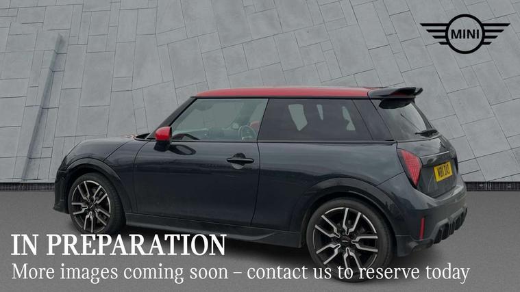 Central toggle bar, Circular OLED Screen, Compatible mobile phone bluetooth with audio streaming, Cruise control, Digital instrument cluster, Electro-mechanical speed dependant steering assistance, Emergency call service, MINI Experience Modes, Mini navigation system, On board computer, Service interval indicator, 7 speed steptronic sport transmission with double clutch, Adaptive suspension, DAB Digital radio, Personal eSim, Auto headlights, Electric adjustable heated door mirrors, Electric front windows, Front and rear apron, Heated rear window, Heated windscreen washer jets, High gloss black wheel arches, High gloss hexagonal patterned grille surround, JCW body kit, LED daytime running lights, LED indicator lights, LED rear lights, Rain sensor window wipers, Rear fog lights, Rear roof spoiler with airblades, Rear window wiper, 2 seat bench in second row, 2 zone automatic air conditioning, 60/40 rear seat bench, Ambient lighting, Cupholders, Dark headliner, Floor mats, Front and rear head restraints, Front compact armrest, Heated steering wheel, Height adjustable passenger seat, Lidded storage box in Black/Red knit, Luggage compartment lighting, Perforated Vescin steering wheel, Single front passenger seat, Steering wheel paddle shift, Sunvisors with vanity mirrors, Vescin/Cord upholstery, Driving assistant pack - Cooper Hatchback, Level 1 pack - Mini Hatchback, Park assistant pack - Cooper Hatchback, 3 point seatbelts on all four seats, 6 Airbags - front, side, head and seat belt tensioners, Acoustic pedestrian protection, Anti-lock braking system (ABS), Brake caliper in Black with JCW badge, DSC - Dynamic Stability Control, Electronic parking brake, Front and rear disc brakes, Front ISOFIX (iSize), Front passenger airbag deactivation, JCW Sport Brakes, Traction control, Tyre pressure monitoring system, Alarm, Immobiliser, Remote central locking, Black/Red decorative dash strap, JCW Black/Red dashboard knit, 18" JCW Lap spoke 2-tone alloy wheels, Tyre repair kit,
