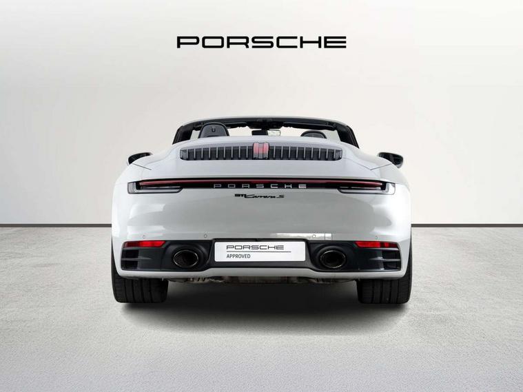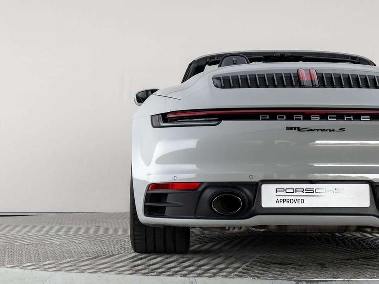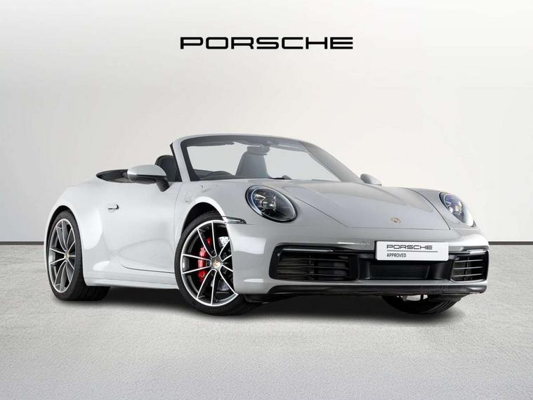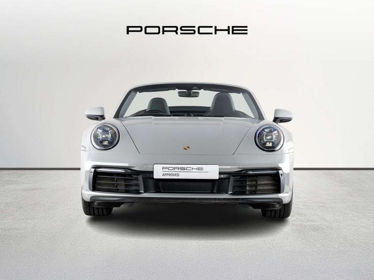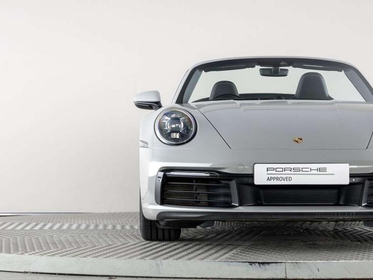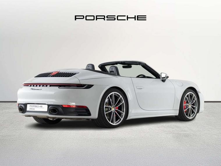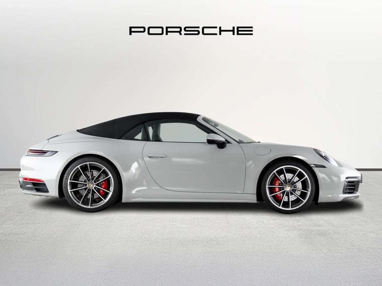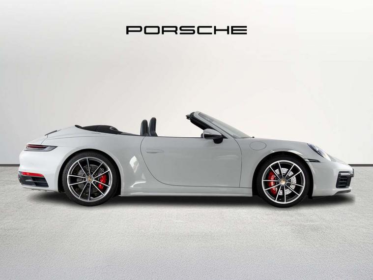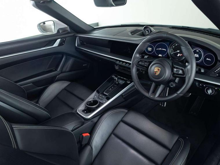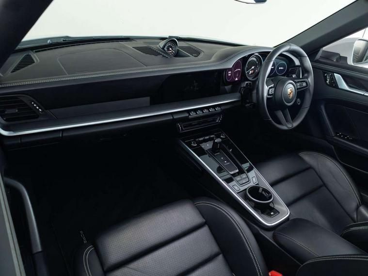 10.9 inch centre display, Automatic start/stop system, Connect Plus, Apple CarPlay, telephone module, wireless internet access, carfinder, remote vehicle status, remote service, vehicle track, Digital display for selected gear in rev counter, Electromechanical power-assisted steering with variable steering ratio and steering pulse generator, Instrument cluster with central analogue rev counter and two 7-inch TFT displays, Porsche communication management (PCM) including online navigation module, Porsche WET Mode, Service indicator, Stationary management with HOLD function, Trip computer, Warn and Brake Assist, 8 Speed Porsche Doppelkupplung (PDK), Aluminium block and cylinder heads, Direct fuel injection (DFI), Expansion intake manifold, Four valve per cylinder, Front anti roll bar, Gasoline particulate filter, Integrated dry-sump lubrication with an on-demand oil pump, McPherson strut front suspension, Multi-link suspension with anti-roll bar at rear, Porsche Stability Management (PSM), ABS with extended brake functions, Porsche Torque Vectoring Plus (PTV Plus) inc electronically regulated rear differential lock and fully variable torque distribution, Rear wheel drive, Twin turbocharger intercooled, Two three-way catalytic converters and on-board diagnostics for monitoring emission control system, VarioCam Plus variable valve timing and switchable valve lift, Analogue sound system, DAB Digital radio, "PORSCHE" lettering integrated in taillight strip, Automatic headlight activation including welcome home lighting, Automatically operated rear spoiler, Black trim strips, Body colour bumpers, Electrically adjustable heated exterior mirrors on door waist rails, aspherical on driver's side, Electrically powered wind deflector, Engine compartment cover grille with vertical slats in black (high-gloss), Four-tract exhaust system with twin dual-tube tailpipes (in stainless steel), Fully automatic fabric hood, electrically operated/heatable rigid glass rear screen, operable approx 30 mph and convenient operation by key remote, Green tinted heat insulating glass, Heated rear windscreen, Intelligent lightweight body in Aluminium/Steel composite construction, LED auxiliary light units in front apron with position lights, direction indicators and side indicators, Model designation on rear trim with highly polished chrome-plated finish, Power windows with one touch operation and door seal protection, Retractable door handles, Side air intakes at front with active cooling flaps and air blades, Taillight strip including integral parking lights and rear driving lights, Three dimensional LED taillights and integral third brake light, Trims on sideskirts in black, Windscreen washer system with aero wiper blades and washer jets, Windscreen with grey top tint, 12V socket in front passenger footwell, Automatic air recirculate, Centre console cupholder, Clothes hooks on seat backrests and on B-pillars, Floor mats, Front and rear head restraints, Heated front seats, Hood lining in black fabric, Individual driver/passenger temperature controls, Inner door sill guards with model designation, ISOFIX child seat mounting points on passenger seat, Luggage compartment at front, Multifunction steering wheel, Passenger cupholder, Pollen/active carbon filters, Split folding rear seats, SPORT button to activate dynamic driving settings for engine, transmission (with PDK), Storage compartments in each doors, Two zone automatic climate control, Sound package plus - 911 (992), Automatic roll over protection, Brake discs with 350mm diameter at front and 350mm at rear, internally vented and cross-drilled, Dual stage driver/passenger airbags, Electric parking brake, Electromechanical power brake, ESP, Porsche side impact protection doors with thorax airbag in outer backrest side bolster and head airbag for driver/passenger in door panel, POSIP, Six piston front and four piston rear in closed type aluminium monobloc, TPMS (Tyre pressure monitoring system), Alarm, interior ultrasonic protection, Electronic immobiliser, Keyless Go, Remote central locking, Tyre sealing compound and electric air compressor kit,