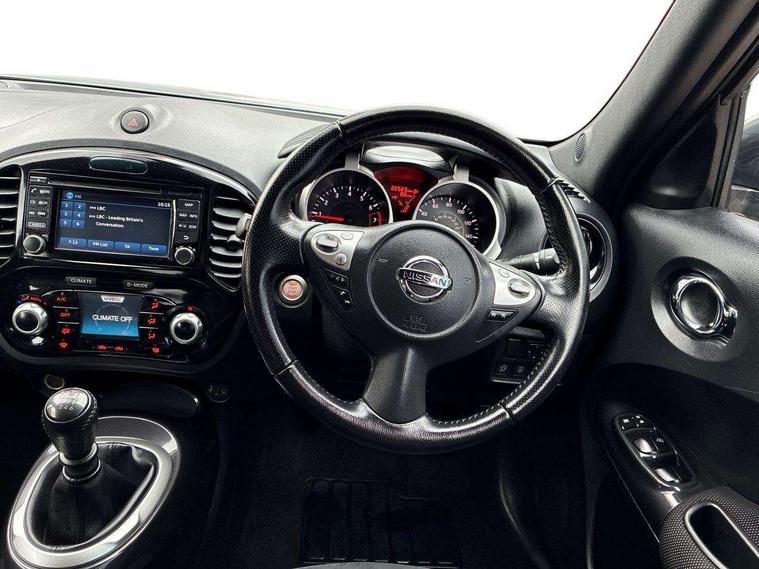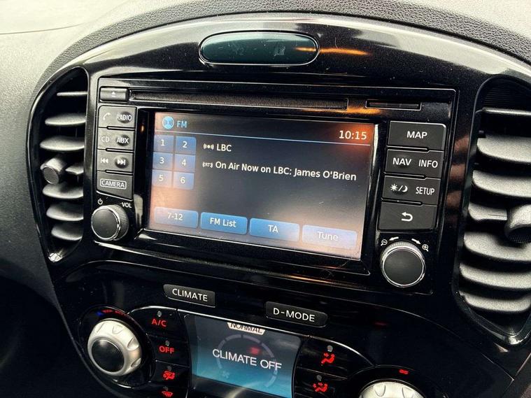 Bluetooth system, Colour rear view camera, Cruise control + speed limiter, Electric speed sensitive power steering, Nissan connect sat nav system, Push button starter, Service interval indicator, Trip computer, 6 speakers, Aux input, DAB Digital radio, Steering wheel mounted audio controls, Stereo radio/CD player and MP3 facility, USB port, 2 speed wipers+variable intermittent wipe, Automatic headlights, Body colour bumpers, Body colour door handles, Electric door mirrors, Electric folding door mirrors, Electric front/rear windows, Front fog lights, Heated door mirrors, LED daytime running lights, Privacy glass, Rain sensor, Rear wiper, 12V socket, 60/40 split folding rear seat, Artificial leather/suede upholstery, Climate control, Front armrest, Front cupholders x 2, Front door pockets with bottle holders, Front head restraints, Front seat belt pre-tensioners with load limiters, Gear shift indicator, Glovebox, Height adjustable driver's seat, Internal chrome door handles, Isofix child seat preparation, Leather steering wheel and gear knob, Luggage area under floor storage box, Map reading lamp, Passenger seat back pocket, Pollen filter, Rear headrests, Rear tonneau cover integrated into tailgate, Sports seats, Steering wheel rake adjustment, ABS + EBD + EBA, Child locks on rear doors, Driver and passenger airbags, Driver and passenger side airbags, ESP + traction control, Front and rear curtain airbags, Height adjustable front seatbelts, Passenger airbag deactivate switch, Three 3 point rear seatbelts, Tyre pressure monitoring system, VDC Dynamic Vehicle Control, Warning triangle and first aid kit, Alarm, Immobiliser, Intelligent Key, Remote central locking, 17" Sport alloy wheels, Tyre repair kit,