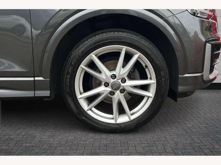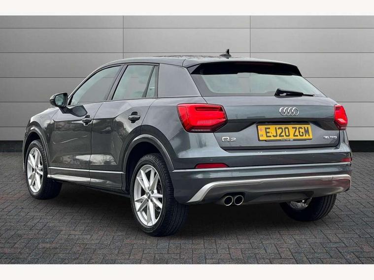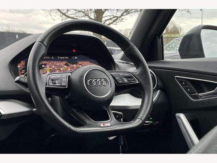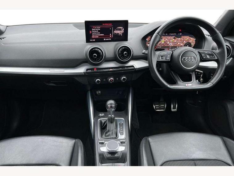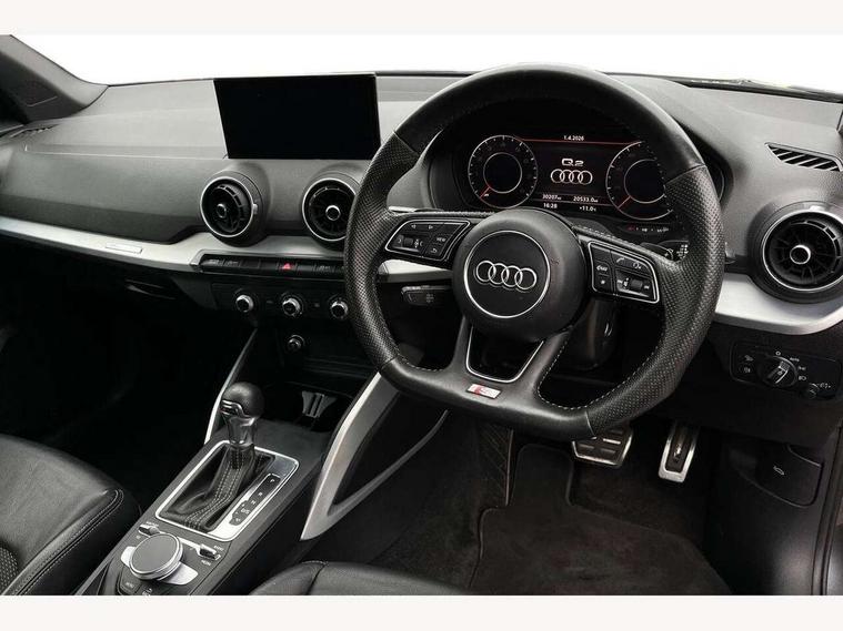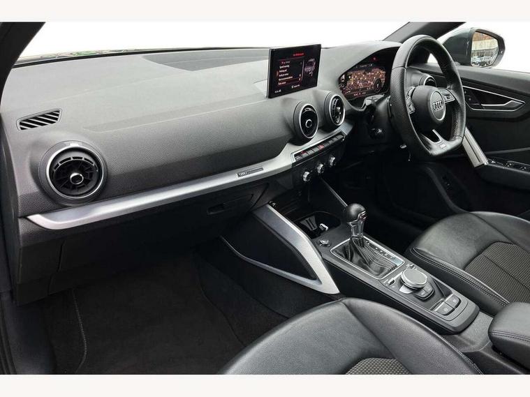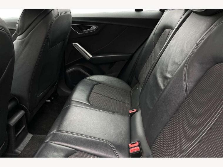 Audi drive select, Audi smartphone interface, Automatic start/stop system with recuperation, Bluetooth interface includes bluetooth audio streaming, Cruise control, MMI - Multi Media Interface control system, MMI SD card integrated nav with 3D map display, dynamic route guidance with TMC, MMI search, natural voice recognition and myAudi special destinations, Power operated tailgate, Progressive steering, Service interval indicator, Dynamic suspension, 2 x SDXC card reader, Audi music interface - apple iPod, apple iPhone, USB storage media, compatible MP3 players, 2 x USB charging points and 1 x Aux-in, CD Drive, DAB digital radio and AM/FM radio, MMI radio plus with 7" colour MMI screen and MMI controller, Black window trims, Bumper in full body colour paint finish, Chrome exhaust tailpipe, Electrically adjustable and heated door mirrors with integrated LED side indicators, Front and rear electric windows, Front underbody guard and rear diffuser trim in selenite silver, Front windscreen with grey tinted sunband, Headlight washers, Interior mirror, LED headlights with LED rear lights + dynamic rear indicators, LED indicator lights, Manual folding door mirrors, Rain and light sensors, Rear wiper, S Line badges on the front wings, S Line body styling - front and rear bumpers, side skirts, radiator grille, rear diffuser insert and front air intakes, 60/40 split folding rear seat bench, Black cloth headlining, Electronically operated child locks, Floor mats with contrast stitching, Front centre armrest, Front headrests, Front sport seats with S embossed logo, Height/reach adjust steering wheel, Illuminated door sill trims with S logo, ISOFIX child seat mounting for front passenger with airbag deactivation and outer rear seat including top tether attachment point for outer rear seats, Manual seat adjustment including seat height adjustment for front seats, Stainless steel pedals, Storage compartments - Glovebox, cupholder compartment in centre console, storage compartment in rear centre console, front and rear door pockets, Three rear headrests, Non smoking pack - Q2, 3x3 point rear seatbelts, 6 airbags - Front, curtain and front side airbags, Electromechanical parking brake, Electronic stabilisation control including ABS, ASR and EDL, Extended and proactive pedestrian protection, Hill hold assist, Multi collision brake assist, Pre-sense front with pedestrian recognition, Seatbelt monitoring, Tyre pressure warning light, Warning triangle and first aid kit, Anti theft alarm, Anti theft wheel bolts, Central locking system with remote control key, Aluminium interior element,