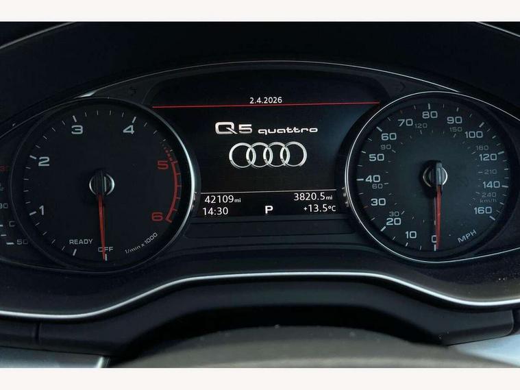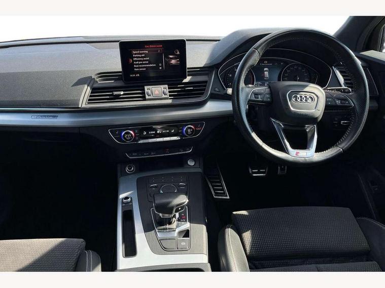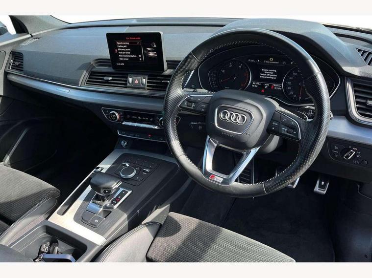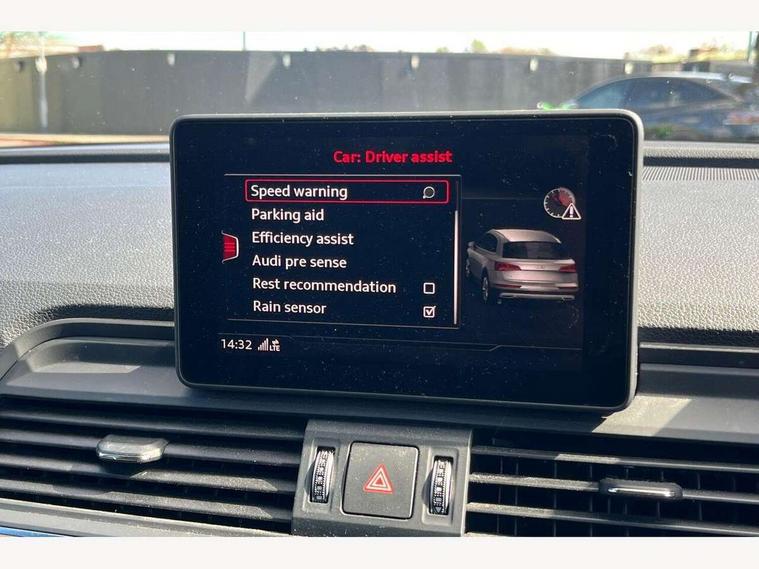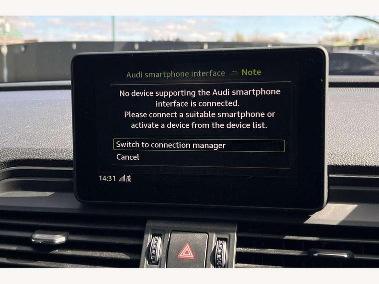 Audi connect, Audi drive select, Audi Pre sense collision avoidance, Audi smartphone interface, Driver information centre with colour display in instrument panel, Electric power steering, Power tailgate, SD card based MMI navigation, Service interval indicator, Voice control system, Diesel particulate filter, 2 USB ports, Auxiliary input socket, CD player, DAB Digital radio, MMI radio plus with 7" colour MMI screen and MMI controller, Acoustic windscreen, Aluminium roof rails, Aluminium sill plates, Auto dimming rear view mirror, Black high gloss front air inlet in matt aluminium effect, Body colour bumpers, Body colour door mirrors, Body colour rear diffuser insert, Chrome exhaust tailpipe, Electric headlight adjustment, Electrically adjustable and heated door mirrors, Front and rear electric windows, Front fog lights, Headlight range control, Headlight washers, Honeycomb side air inlet in titan black, Light and rain sensor for auto activation of lights and windscreen wipers, Loading sill protector in stainless steel, Privacy glass with front acoustic glazing, Rear diffuser strip in matt aluminium silver, Rear spoiler, Rear wiper, S Line side skirts, Selenite silver underbody guard, Twilight grey matt radiator grille with matt aluminium horizontal chrome struts, 3 rear headrests, 3 zone climate control, 4 way electric lumbar support for driver and front passenger, 40:20:40 split folding rear bench seat, Black cloth headlining, Front centre armrest with 12v socket, Front sports seats, Front/rear floor mats, Height adjustable driver's seat, Height adjustable front head restraints, Illuminated door sills, Isofix front passenger and rear seat preparation, Jack and tool kit, Load compartment cover, Luggage compartment carpet, Matt selenite silver door inserts, Perforated leather gearknob, Reach + rake adjustable steering column, Removable luggage compartment floor, Removable net partition, Roller blind loadspace cover, Stainless steel pedals, Sunvisors with vanity mirrors, Non Smokers pack, 3 point seatbelts on all seats, ABS, Curtain airbags, Driver and passenger airbags, Driver and passenger side airbags, Electromechanical parking brake, ESC with ASR, ESP, First aid kit, Front passenger airbag deactivation, Hill descent control, Seat belt force limiter, Seatbelt warning lamp, Traction control, Tyre pressure monitor, Warning triangle, Locking wheel bolts, Remote central locking, Thatcham category 1 alarm + immobiliser, Contrast stitching,