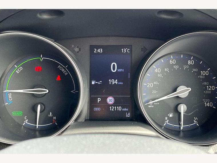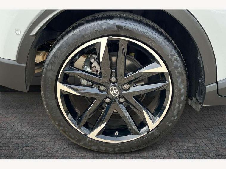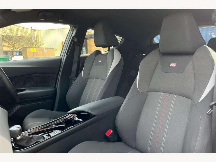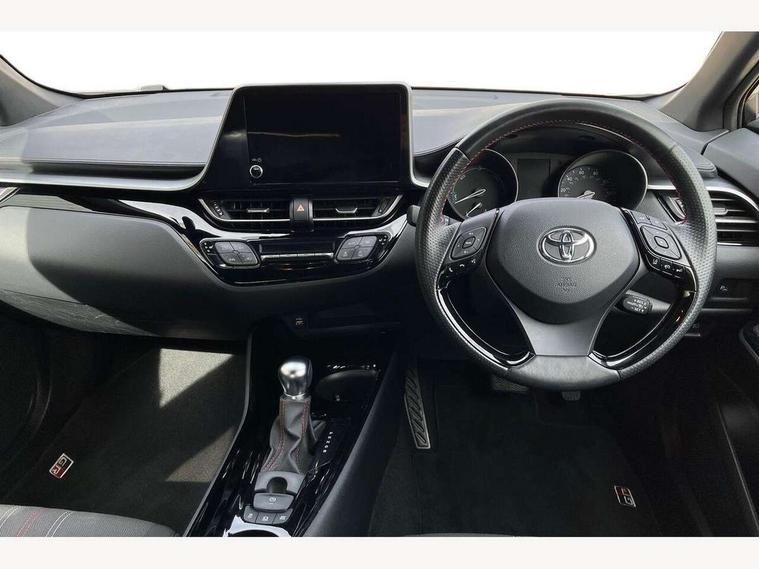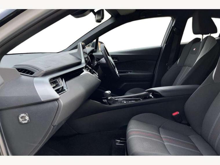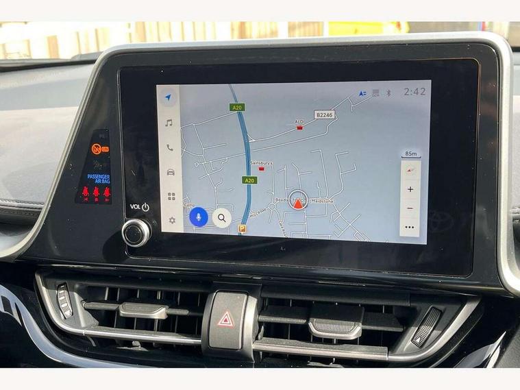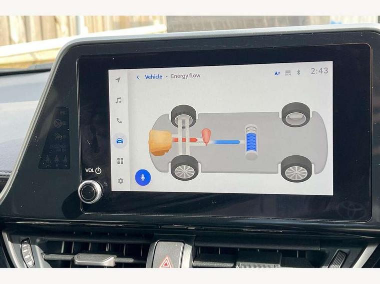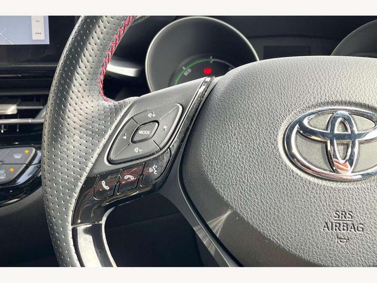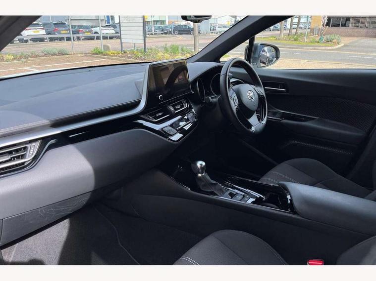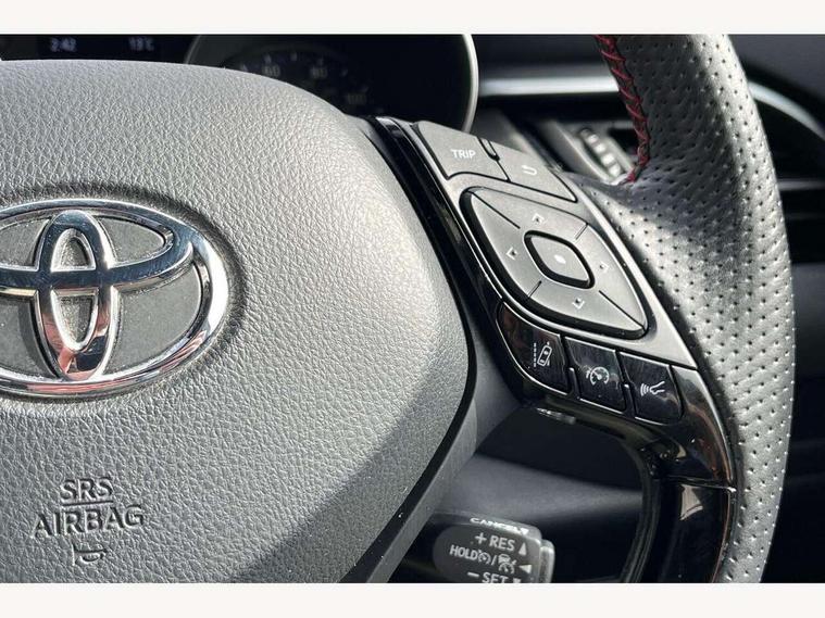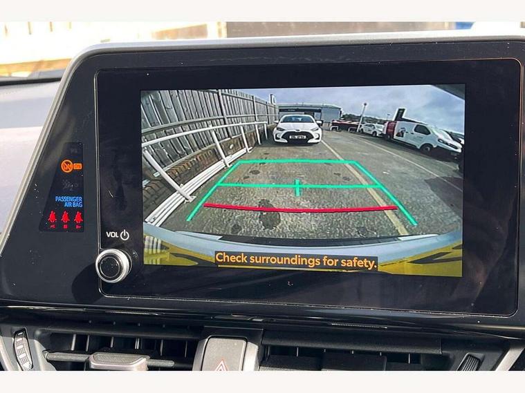 4.2" coloured TFT screen for multi-information display, Adaptive cruise control, Apple car play and Android auto, Bluetooth connectivity, E-call, Electric power steering, Hybrid system indicator, Lane departure alert with steering control, Lane trace assist, Push button tailgate release, Remote boot door release in cabin, Remote boot door release in key, Reversing camera, Road sign assist - RSA, Simple Intelligent parking assist, Smart voice assist, Touch 2 Go navigation system, Trip computer, Voice recognition, Wireless smartphone integration, Vehicle Stability Control (VSC), 6 speakers, AM/FM radio, DAB Radio (Digital Audio Broadcasting), Toyota touch 2 multimedia system with 8" display, USB connector, Wi-fi connectivity, Adaptive front light system, Adaptive LED Headlights, Anti-jam protection on power windows, Auto high beam, Auto up and down function on all power windows, Automatic headlight levelling, Automatic headlights, Automatic headlights cut-off, Black and body coloured rear bumper, Black upper front grille, Body colour door handles, Body colour door mirrors, Body coloured front bumper, Boot door release with push button, Chrome front lower bumper, Electric heated door mirrors, Follow me home headlights, Front and rear power windows, Front spoiler lip in black, Headlight cut off reminder, Honeycomb lower front grille, LED daytime running lights, LED fog lights, LED front light guide, LED High mounted stop light, LED rear brake lights, LED rear combination lights, Noise reduction layer on front windows and windscreen, Power adjustable door mirrors, Privacy glass, Rain sensor, Rear sequential indicators, Rear side wing doors, Rear spoiler, Rear tailgate, Rear window defogger, Rear window wiper, Shark fin antenna, UV-filter on driver and passenger windows, UV-filter on rear windows, Variable front intermittent wipers, 12v power outlet - front, 3 rear headrests, 3 seat bench in 2nd row, 3 spoke perforated leather steering wheel, 60/40 split folding 2nd row rear seats, Adjustable rear headrests, Adjustable speed limiter switch on steering wheel, Assist grips front and centre pillar, Audio and telephone switches on steering wheel, Black front door assist grips, Blue ambient lighting on front cup holders, Blue ambient lighting on front doors, Boot light, Chrome interior door handles, Cloth upholstery, Driver and front passenger personal light, Driver and front passenger Whiplash Injury Lessening seats, Driver and passenger seatback pockets, Dual zone automatic air conditioning, Floor mats, Front cupholders, Front head restraints, Front sports seats, Glovebox with internal light, Hard tonneau cover, Heated driver and front passenger seats, Hooks for luggage holding net, Humidifying Nanoe air purifier, Illuminated entry system, Isofix attachments on outer rear seats, Leather gearshift, Light on driver sun visor, Light on passenger sun visor, Manual telescopic steering wheel, Manual tilt steering wheel, Manually height adjustable driver seat, Manually height adjustable front passenger seat, Manually reclining driver seat, Manually reclining front passenger seat, Manually sliding driver seat, Manually sliding front passenger seat, Microphone on front personal light, Mirror on driver sun visor, Mirror on passenger sun visor, Multimedia switches on steering wheel, Pollen filter, Power adjustable lumbar support on driver seat, Shopping bag hooks, Single front passenger seat, Slow opening on lower glovebox, Voice recognition switch on steering wheel, Tech with parking sensor pack - C-HR, 16 Disk front wheel brake, 3x3 point rear seatbelts, ABS+EBD+Brake assist, Electronic parking brake, Front and rear seatbelt reminder, Front passenger airbag on/off switch, Hill start assist control (HAC), Pre collision system with pedestrian detection, Pre-tensioners and force limiters, Rear door child safety locks, SRS Airbags - Driver + Front passenger, front side, front and rear curtain and driver's knee airbags, Toyota safety sense, Tyre pressure monitoring system, Tyre pressure warning system, Acoustic vehicle alert system (AVAS), Glass-breaking alarm sensors, Immobiliser, Intrusion alarm, Intrusion sensor, Motion sensor alarm, Power door locks, Power passenger window lock, Remote central locking, Black lower dashboard, Black upper dashboard, Piano black console, Silver deco line on upper dashboard, 19" Black machined alloy wheels, Tyre repair kit,