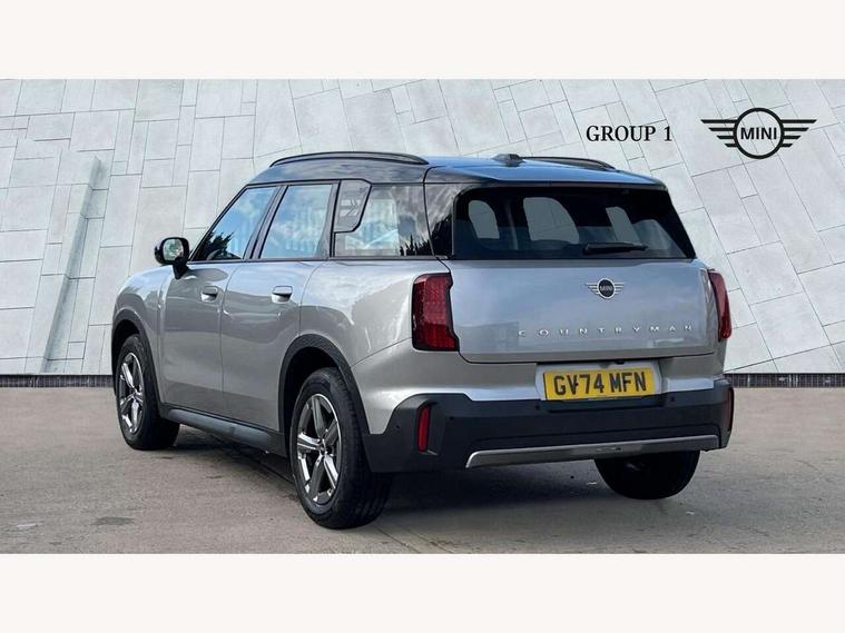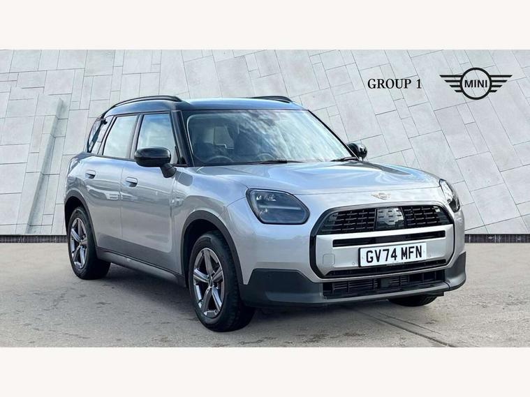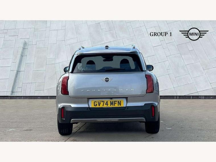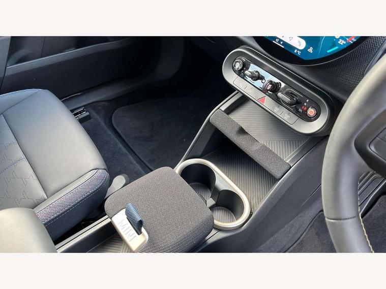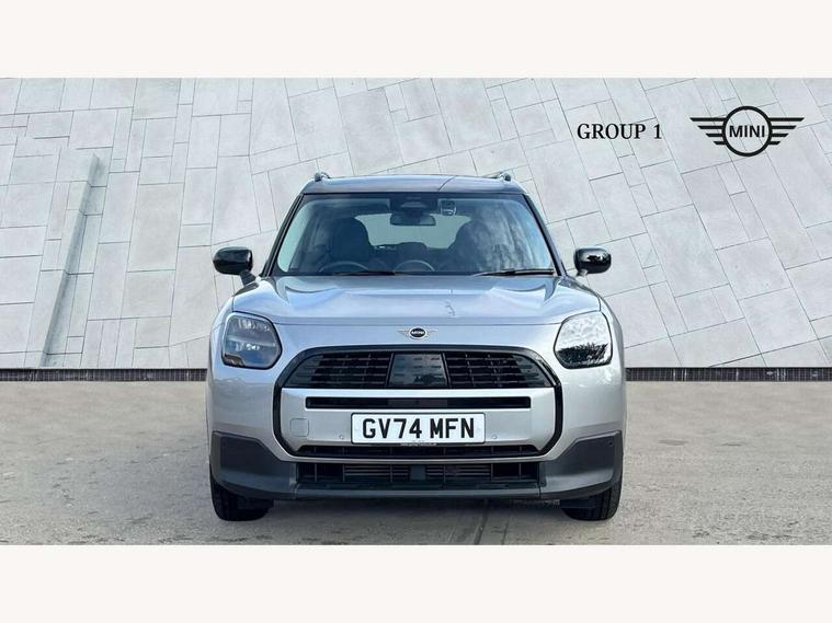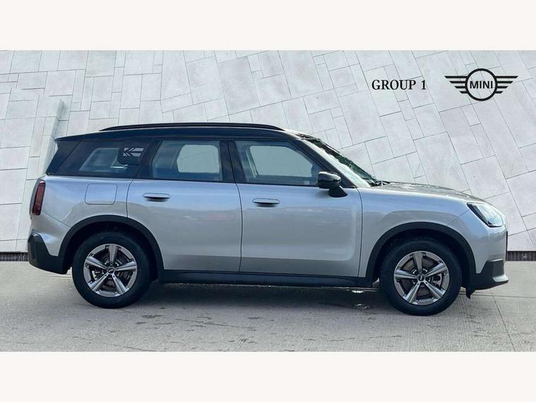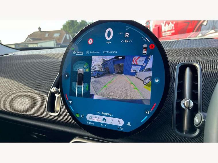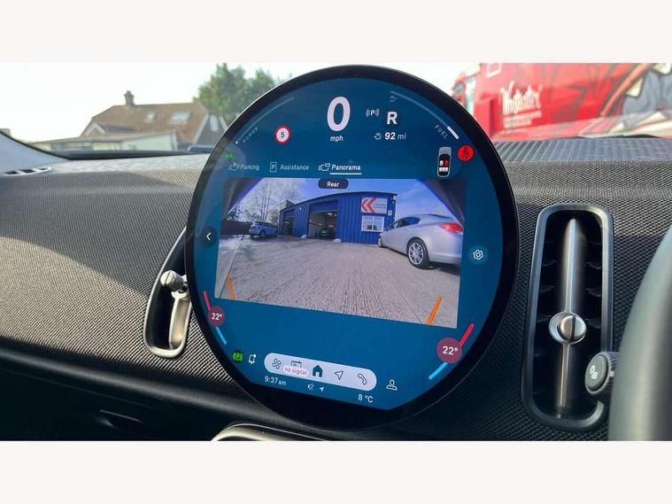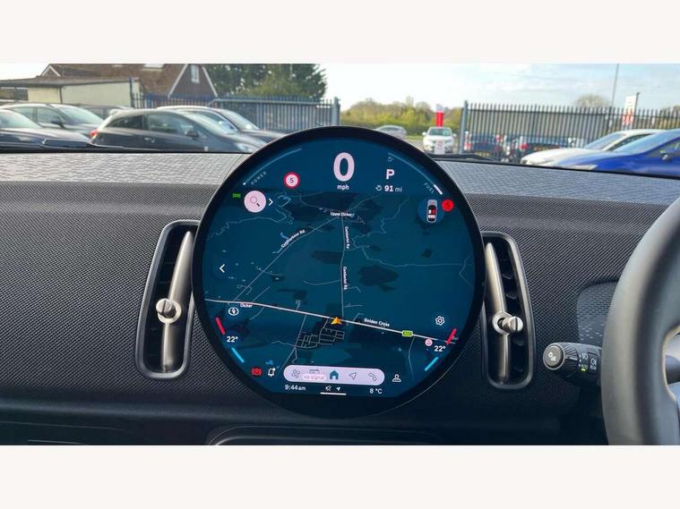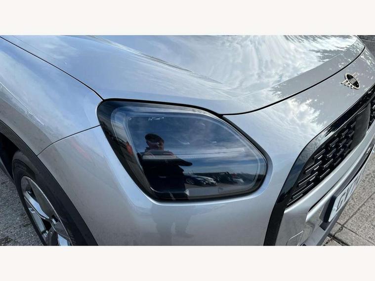 Bluetooth connection, Circular OLED Screen, Compatible mobile phone bluetooth with audio streaming, Cruise Control (DCC), Digital dashboard display, Driving assistant, E-call, Electro-mechanical speed dependant steering assistance, MINI Experience Modes, Mini navigation system, MINI TeleServices, Parking assistant in camera and ultrasound based assistance system, rear view camera, parking aid and distance control, Auto transmission with Paddles, Larger capacity fuel tank, 6 speakers, DAB Digital radio, Personal eSim, Auto tailgate, Electric adjustable heated door mirrors, Front and rear electric windows, Heated rear window, LED daytime running lights, LED Headlights, LED rear lights, LED third brake light, Rain sensor with auto headlights, Rear side wing doors, Rear window wiper, Roof rails, 3 seat bench in 2nd row, 60/40 split rear bench seat, Auto air conditioning, Floor mats, Front armrest, Front headrests, Heated steering wheel, Height and length steering column adjustment, Light headliner, Rear headrests, Single front passenger seat, Sport Vescin Steering Wheel, Sunvisors with vanity mirrors, Vescin/Cloth upholstery, 3x3 point rear seat belts, 6 Airbags - front, side, head and seat belt tensioners, ABS, DSC - Dynamic Stability Control, Electronic handbrake, Electronic Stability Programme (ESP), Front ISOFIX (iSize), Hill hold assist, Hill start assist, Manual rear child locks, Traction control, Tyre pressure monitoring system, Warning triangle, Alarm system with tilt sensor, monitoring doors, bonnet interior and tailgate, Auto drive away locking, Deadlocking function, Electronic vehicle immobiliser, Locking wheel bolts, Remote control locking, Start/stop toggle with keyless go, Black/Blue dashboard knit, MINI Mobility Kit,