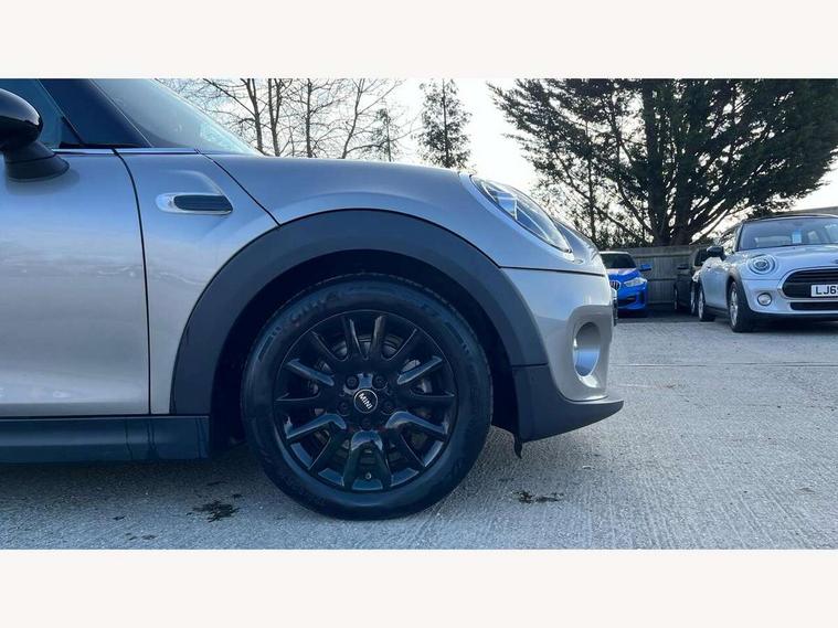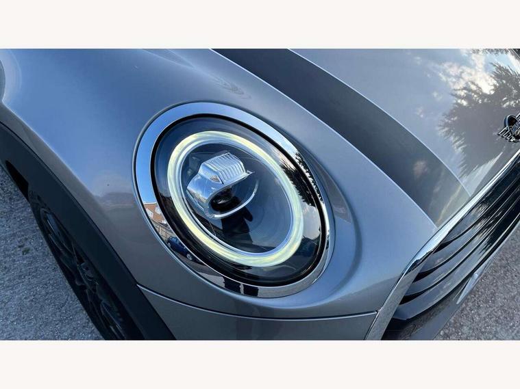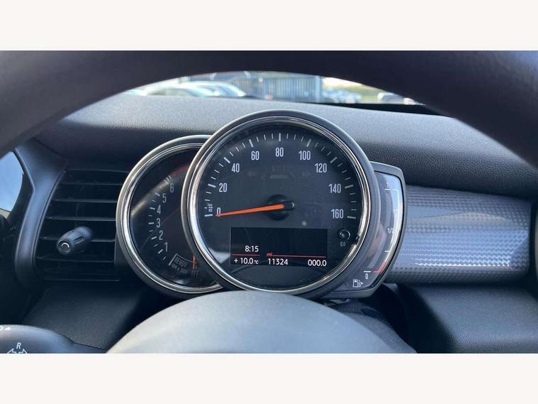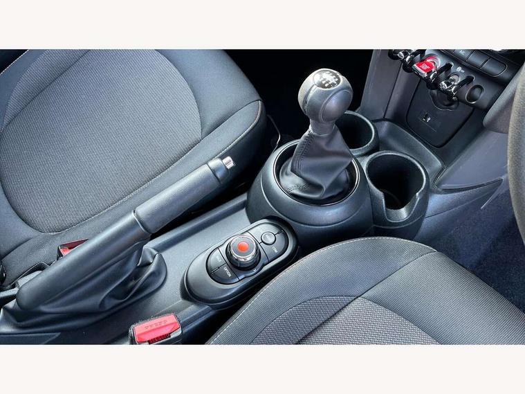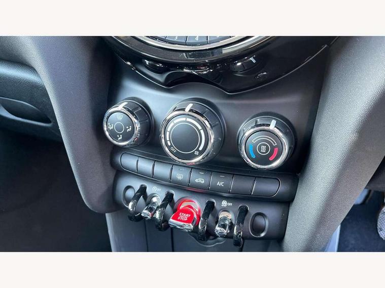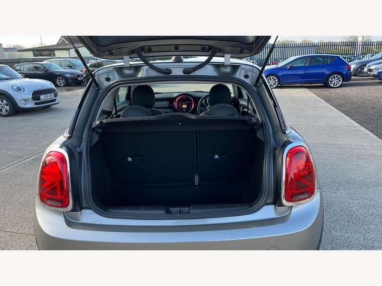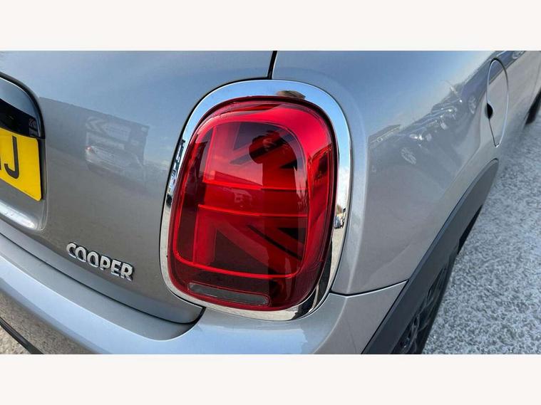 Compatible mobile phone bluetooth with audio streaming, Instrument cluster, Mini E-call, MINI TeleServices, On board computer, Service interval indicator, 6.5" touchscreen with LED ring, FM tuner and DAB digital radio, Automatic headlight activation switch, Body colour fuel filler cap, Chrome border high gloss black slats radiator grille, Dynamic brake lights, Electric front+rear windows, Heated rear window, Heated windscreen washer jets, LED headlight with closed ring and daytime driving lights, Left exhaust tailpipe with chrome finisher, Metal door sill strips with MINI imprint, Model logo Cooper on right of tailgate, Rain sensor window wipers, Rear fog lights, Rear LED lights with union jack design, Rear window wiper, Side scuttle panel with integrated indicator, Sun/heat protection glass, White indicator lenses, 12V Accessory socket in centre console, 4 lashing eyes in luggage compartment, 60/40 split folding rear seat, Chrome interior highlights, Colour line - Carbon black, Cupholders, Front and rear isofix with front passenger airbag deactivation, Glove compartment, Height and length steering column adjustment, Interior lighting with 12 basic colours selectable via toggle switch in roof, Leather gearshift lever and handbrake gaiters, LED reading lights, vanity mirror lights, front foot well light and spotlight on front seats, Manual air conditioning, Mechanical seat adjustment, driver seat height adjust, forward/back and front seats backrest, Mini logo projection on floor from drivers exterior mirror, Multifunction steering wheel, Satellite grey headlining, Storage compartments in doors, Sunvisors with vanity mirrors, 3 point seatbelts on all four seats, 6 Airbags - front, side, head and seat belt tensioners, Anti-lock braking system (ABS), DSC - Dynamic Stability Control, Front and rear disc brakes, Hill start assist, Single tone fanfare horn, Tyre pressure monitoring system, Alarm system with tilt sensor, monitoring doors, bonnet interior and tailgate, Electronic vehicle immobiliser, Start/stop toggle with keyless go, Tool kit,
