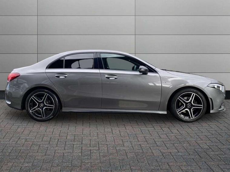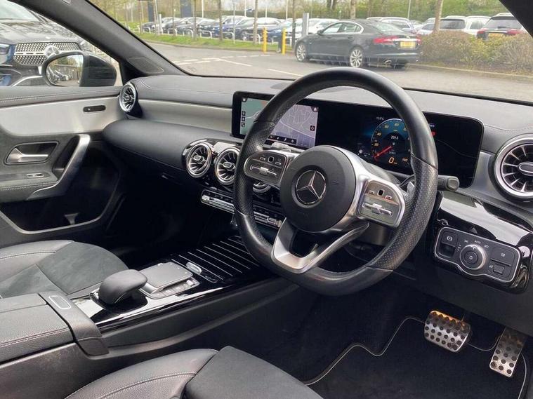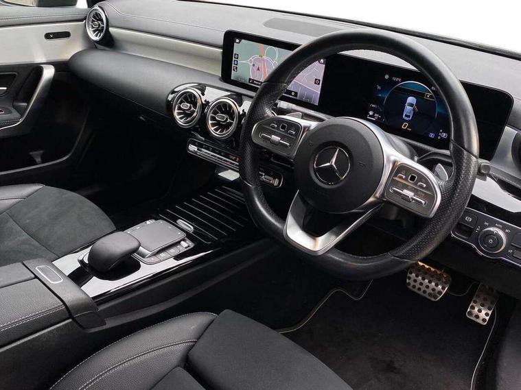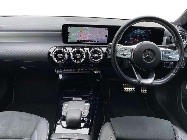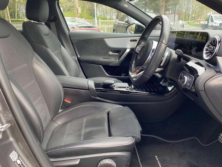 10.25" media display, 180 degree rear view camera with parking guidelines, 7" colour screen in instrument panel, Active parking assist with visual and audible warning of detected obstacles, Attention assist, Brake pad wear indicator warning light, Car wash mode, Cruise control + speed limiter, Direct steering, Dual bluetooth interfaces, DYNAMIC SELECT with a choice of driving modes (ECO, Comfort, Sport and Individual), ECO start/stop function, Fluid level warning indicator for fuel, oil, coolant and washer fluid, Hard-disk navigation, Hey Mercedes Voice activation, Lamp failure indicator, Lane keeping system, Mercedes me connect including emergency call system, accident recovery, breakdown and maintenance management, Mercedes me remote services, Outside temperature gauge, Owners manual in English, Pre-installation for private car sharing, Preinstallation for Mercedes Benz link, Service indicator (ASSYST), Smartphone integration with Apple CarPlay and Android auto, Speed sensitive power steering, Trip computer, Ultrasonic sensors positioned in the front and rear bumpers, Lowered comfort suspension, Rear axle torsion beam, 2 USB ports (type C) in rear stowage compartment and one in front of center console, 6 speakers, DAB Digital radio, MBUX multimedia system with DAB digital radio and touchpad including satellite navigation, Mercedes-Benz sound system - 100W, 4 Electric Front and Rear windows, Adaptive brake lights, AMG bodystyling - Front apron with splitter in chrome, rear apron with chrome trim and chrome visible trim elements in tailpipe, Automatic headlights, Black weather strip, Body colour bumpers, Body colour door handles, Body colour side skirt, Body coloured door mirrors, Electric adjustable and heated door mirrors with integrated LED side indicators, Exclusive diamond radiator grille, Exhaust system - Twin visible tailpipes in polished stainless steel, Headlamp assist automatic headlamp activation, Heated glass rear windscreen + timer control, High gloss black beltline, LED high performance headlamps with integrated LED daytime running lights, LED tail lamp, Privacy glass, Radio aerial, Rain sensing windscreen wipers with two sensitivity settings, Rear boot, Rear fog lights, Rear side wing doors, Third brake light featuring LED technology, Window line trim strip in high gloss black, 3 seat bench in 2nd row, 3 Spoke flat bottom leather multi function steering wheel with perforated leather in grip area, 40:20:40 split folding rear seats, Artico man-made leather/Microfibre Dinamica upholstery with contrast stitching in light grey, Auto Mercedes-Benz child seat recognition sensor, Black air vents with surround in silver chrome, Black roof lining, Brushed stainless steel sports pedals with rubber studs, Controller on centre console with chrome surround, Floor mats with black top stitching and embroidered edition logo and piping in light grey, Front centre armrest with storage compartment, Front door sills with Mercedes Benz lettering, Front seat backs luggage nets, Front seat cushion length adjustment, Front sports seats with adjustable head restraints, Galvanished gear shift paddles on steering wheel, Heated front seats, Height/reach adjustable steering column, Interior lighting - 64 colour Ambient lighting, Interior mirror with reading lamps in black and frameless, Manual height adjustable front seats, Rear head restraints, Seat occupancy sensor for front passenger seat, Single front passenger seat, Stowage compartment in centre console with retractable cover, Sunvisors with illuminated vanity mirrors, Touchpad on center console, Twin front cupholders, Two zone thermotronic luxury automatic climate control, Light and sight pack - A Class, Mirror package - A Class, Night pack - A Class Saloon/Hatchback, Seat comfort pack - A Class, 3 rear 3 point seatbelts, ABS with Brake Assist, Active bonnet, Active brake assist includes forward collision warning system with autonomous braking, Adaptive brake assist with hold function and hill start assist, Childproof locks manually operated for rear doors and electrically operated for rear power windows, Crash responsive emergency lighting, Driver and passenger head and side airbags, Drivers knee airbag, Dual stage driver/passenger airbags, Electronic parking brake, ESP curve dynamic assist, ESP with ASR, Front and rear seatbelt reminder, Front brake callipers with Mercedes Benz lettering, ISOFIX and top tether child seat fixing points in two outer rear seats, Tyre pressure monitoring system, Warning triangle and first aid kit, Window airbags, Alarm system/interior protection/immobiliser, Keyless Go, Remote central locking and crash sensor with emergency opening function, Urban guard vehicle protection system with immobiliser and interior protection, Black seatbelts, Matrix look light longitudinal grain aluminium trim element, 18" AMG 5 twin spoke light alloy wheels aerodynamically optimised painted in black with highsheen finish, Summer tyres, Tirefit sealant kit,