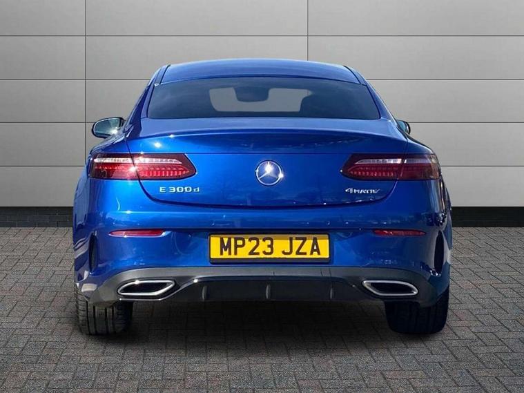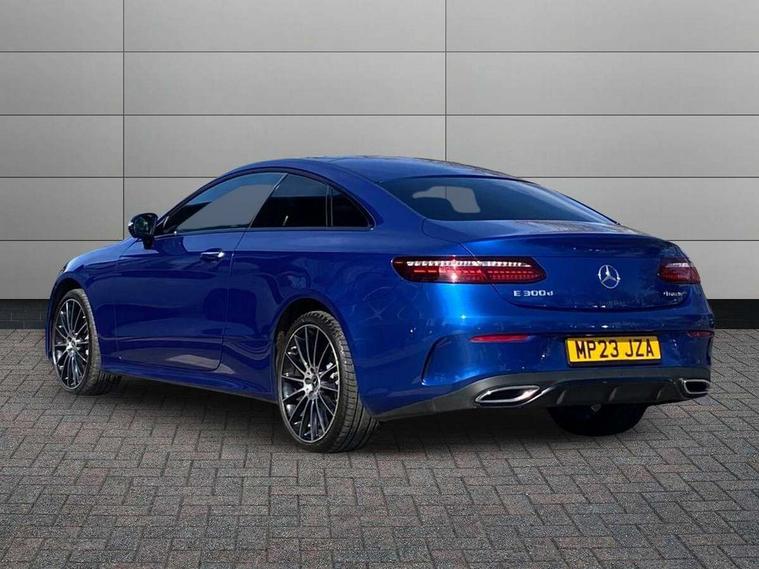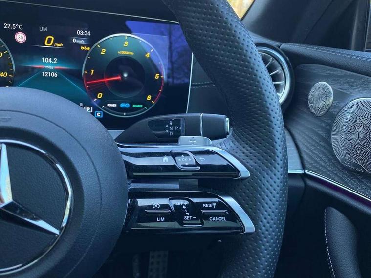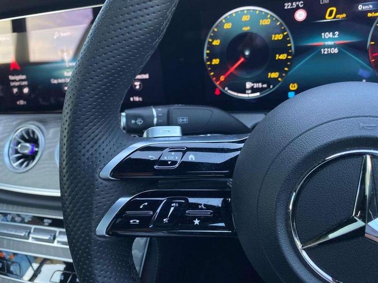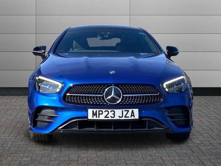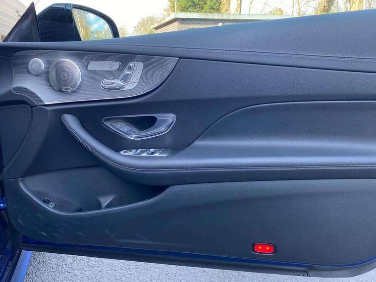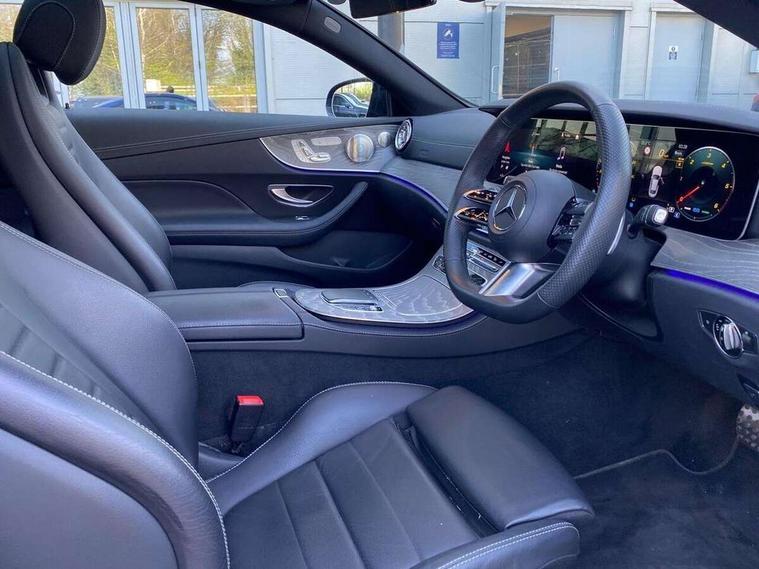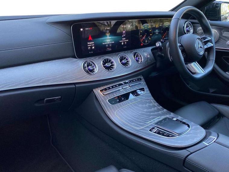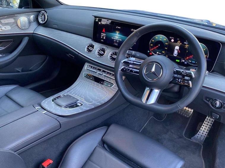 360 degree parking camera, Active parking assist including front and rear parking sensors, Analogue clock, Attention assist, Brake wear warning display, Cockpit display 12.3" widescreen digital instrument cluster, Collision prevention assist plus, Direct steer speed sensitive steering, DYNAMIC SELECT with a choice of driving modes (ECO, Comfort, Sport, Sport+ and Individual), E-call, ECO start/stop function, High resolution 12.3" multimedia colour display, MBUX voice control activated by keywords "Hey Mercedes", Mercedes connect me, Outside temperature display, Pre-installation for Vehicle Monitoring, Pre-installation for Vehicle Setup, Remote boot release, Service indicator (ASSYST), Status display for rear seat belts in instrument cluster, Touchpad without controller, Traffic sign assist, Trip computer in multifunction display showing current fuel consumption, Wireless charging, 25 litre AdBlue tank, 66 litre fuel tank, 9G TRONIC 9 speed automatic transmission, Agility control sports suspension with selective damping system, Diesel particulate filter, Incorrect fuelling protection, 2 USB ports in centre console, 2 USB ports in the rear, Burmester surround sound system with 13 speakers and a 9 channel amplifier with total output of 590 watts, MBUX multimedia system with DAB digital radio and touchpad including satellite navigation, Smartphone integration via Android Auto/Apple CarPlay, Media Interface, USB and Bluetooth interface and touchpad with control wheel, Adaptive brake lights, Adaptive high beam assist, AMG bodystyling front and rear aprons in polished aluminium, Body colour door handles, Body coloured bumpers, Electric windows with one touch opening/closing and obstruction sensors, Exterior mirrors heated and electronically adjustable, High gloss black exterior mirror housing, High gloss black front apron, High gloss black rear bumper with chrome trim, Illuminated front door sill panels with Mercedes-Benz lettering, LED 3rd brake light, LED daytime running lights, LED high performance headlamps, Magic Vision Control heated windscreen wiper system, Panoramic electric glass sunroof, Pre-installation for roof rail systems, Privacy glass Includes rear side windows and rear windscreen, Radiator grille with integral star and 2 louvres in matt iridium silver with chrome trim, Radio aerial integrated into rear window, Rain sensing windscreen wipers, Rear boot, Rear LED lights, Top surround of side windows in polished aluminium, Visible twin pipe exhaust system integrated into bumper, Waistline strips in high gloss black, 2 seat bench in 2nd row, 3-spoke flat bottom multifunction AMG steering wheel with Touch Control buttons, trimmed in black nappa leather, 40:20:40 split folding rear seats, Artico man-made leather upper dashboard and beltlines with contrast stitching, Automatic child seat recognition sensor, Belt feeder driver and front passenger seat belt automatically positioned within easier reach, Black door pins, Black roof lining, Central stowage compartment with 12 V socket in centre console, Central stowage compartment with USB socket for use with Android Auto and Apple CarPlay, Centre armrest and door handle illumination, Centre console in grey open-pore ash wood, Floor mats with AMG lettering, Front and rear door pockets, Front centre armrest with stowage compartment, Front footwell lights, Glasses compartment in overhead control panel, Glove compartment - lockable, air conditioned and illuminated, Head restraints for driver and front passenger (four-way adjustability) and in rear (two-way), Heated front seats with partial electric adjustment and electro-pneumatic four-way lumbar support, Interior lighting - 64 colour Ambient lighting, Interior rear light/integral reading lights, Isofix rear child seat fastenings, Multi contour front sports seats, Seat occupancy sensor for front passenger seat, Single front passenger seat, Sports pedals in brushed stainless steel with black rubber studs, Steering column electrically adjustable for height and reach, Steering wheel gearshift paddles, Sunvisors with illuminated vanity mirrors, THERMOTRONIC automatic climate control system with 3 climate zones, Memory pack - E Class, Mirror pack - E Class, Night package - E Class, Stowage pack - E Class, 2 x 3-point rear seatbelts, Active bonnet pedestrian safety measure which detects an impact and raises bonnet, Adaptive brake system with HOLD function and brake drying in the wet, Adaptive driver and front passenger airbags, Airbags - sidebag for driver and front passenger with combined thorax/pelvis bag, Anti-lock braking system (ABS), Drivers knee airbag, Electric parking brake, Electronic Stability Programme, Front and rear window airbags, Head airbags, Hill hold function, Perforated front brake discs with "Mercedes-Benz" lettering, Seatbelt warning, Tyre pressure monitoring system, Warning triangle and first aid kit, Alarm system/interior protection/immobiliser, Central locking with interior switch, automatic locking and crash sensor with emergency opening function, Chrome surround in electric key, Keyless Go entry and starting function, Open-pore grey ash wood trim, 20" AMG multi spoke design alloy wheels painted in high gloss black with high sheen finish, Summer tyres, TIREFIT with tyre inflation compressor,