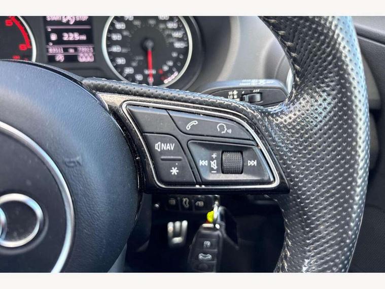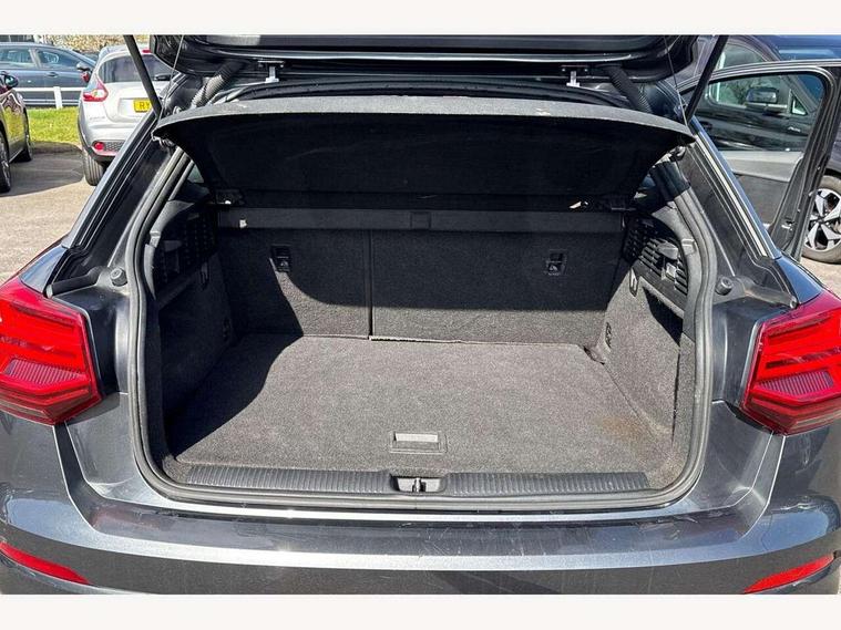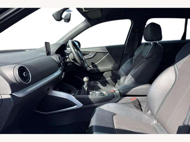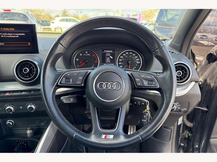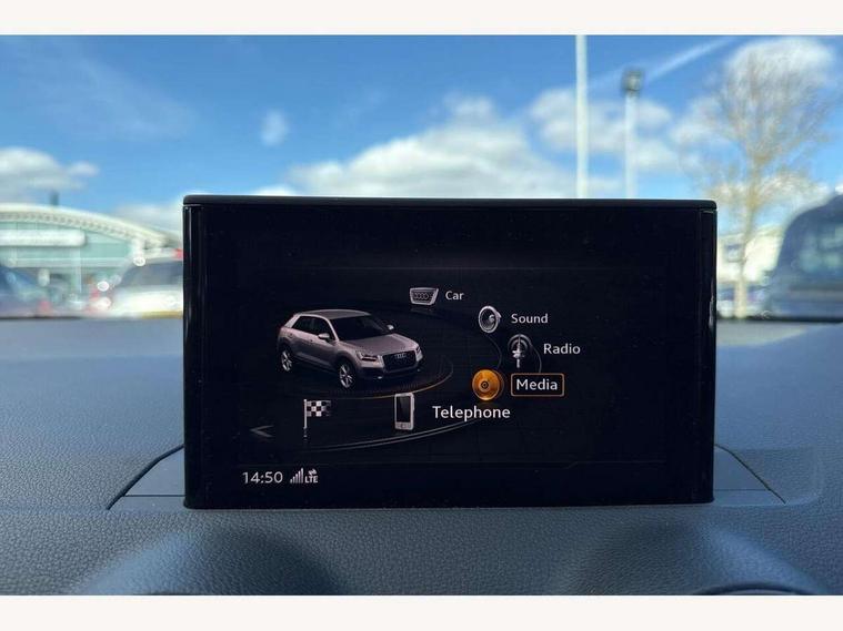 Audi drive select, Audi smartphone interface, Bluetooth hands free telephone connection, MMI - Multi Media Interface control system, PAS, Service interval indicator, Voice control system, Audi music interface, Aux input, CD player, DAB digital radio module, MMI radio plus with 7" colour MMI screen and MMI controller, USB port, Body colour door mirrors, Chrome exhaust tailpipe, Door mirror integrated indicators, Electrically adjustable and heated door mirrors, Front and rear electric windows, Headlight washers, LED headlights with LED rear lights + dynamic rear indicators, Rear wiper, S Line body styling, Sunband for windscreen, Aluminium door sill trims, Black cloth headlining, Centre console with storage/cupholders, Floor mats with contrast stitching, Front and rear door pockets, Front and rear headrests, Front centre armrest, Front sports seats, Glovebox, Height adjustable front seats, Height/reach adjust steering wheel, Illuminated door sills, ISOFIX on front passenger and rear outer seats, Stainless steel pedals, Storage compartment in rear centre console, Full body colour bumper pack - Q2, 3x3 point rear seatbelts, ABS+Electronic Brake force Distribution, Curtain airbags, Driver and passenger airbags, Driver and passenger side airbags, EDL + ASR, Electrically operated child locks on rear doors, Electromechanical parking brake, ESP, Multi-Collision braking, Pre-sense front with pedestrian recognition, Seatbelt warning light, Tyre pressure monitoring system, Warning triangle and first aid kit, Locking wheel bolts, Remote central locking, Thatcham category 1 alarm + immobiliser, Aluminium interior trim, Matt brushed aluminium fascia and door trim inlays,