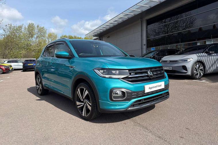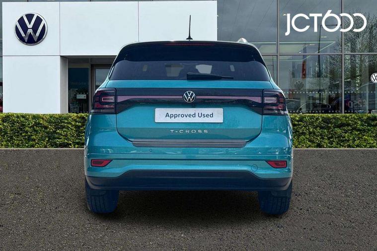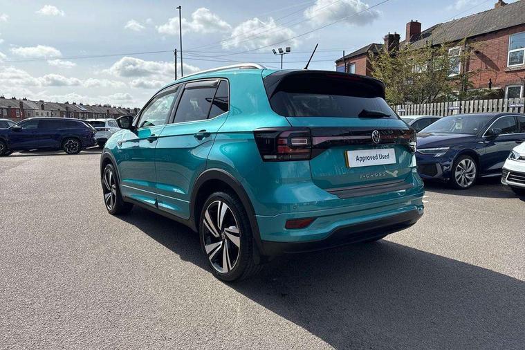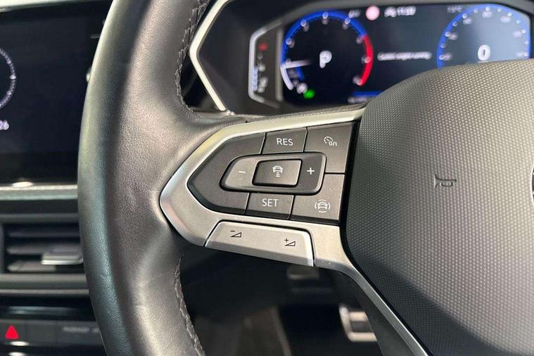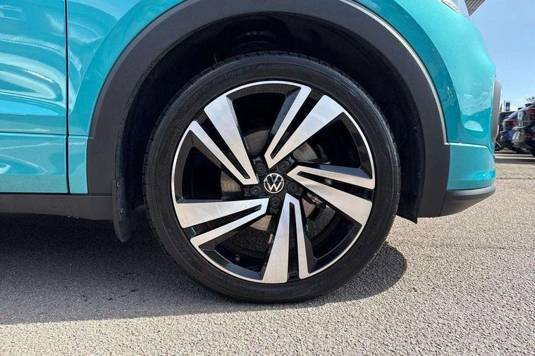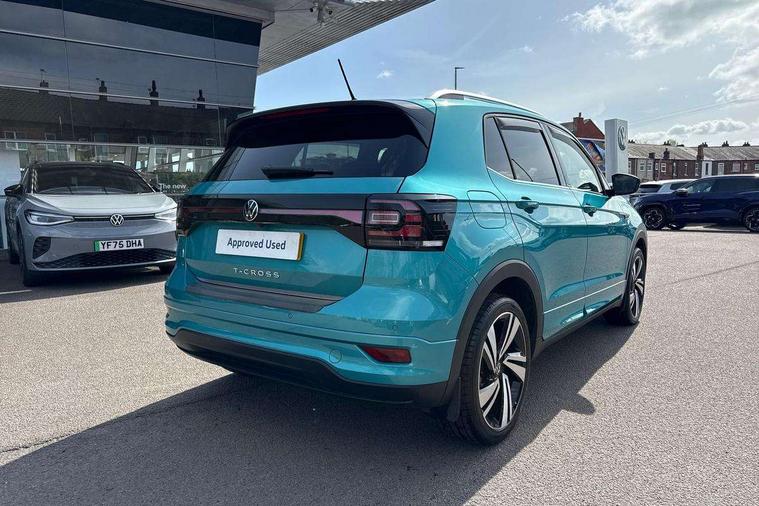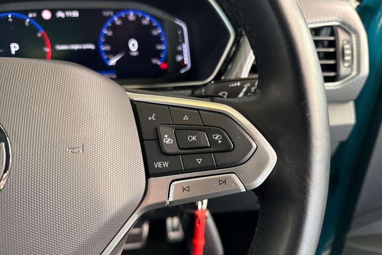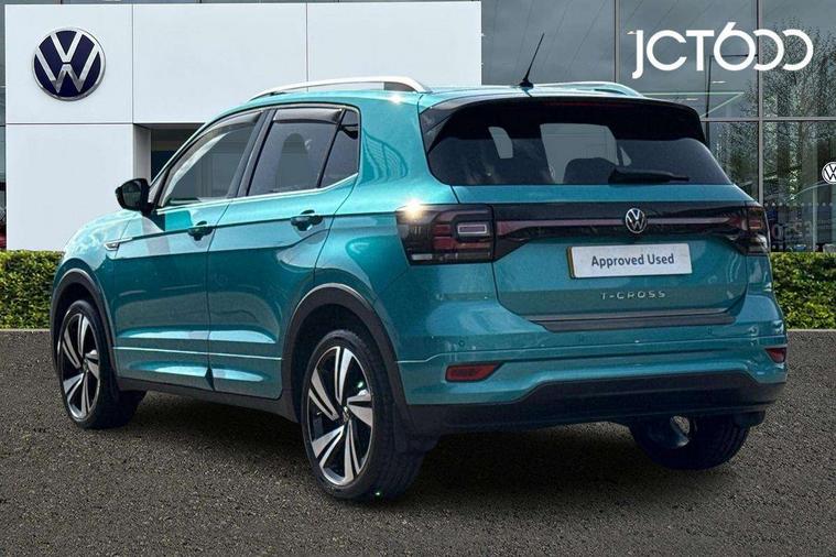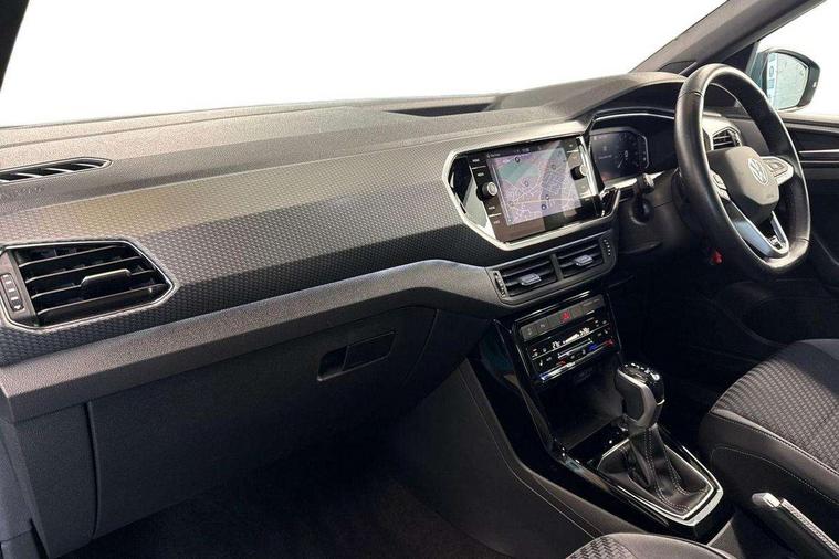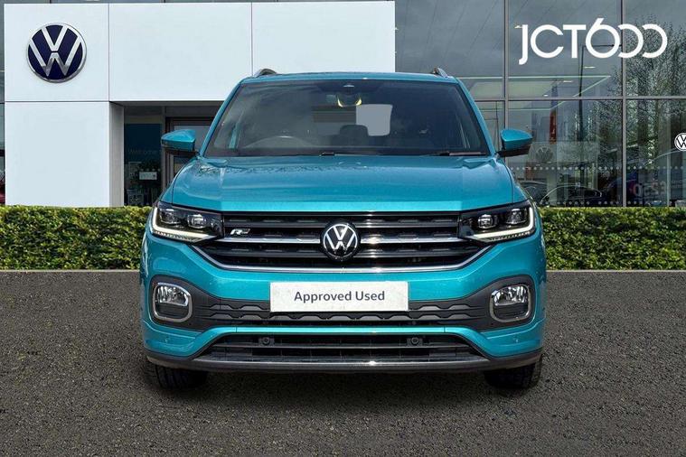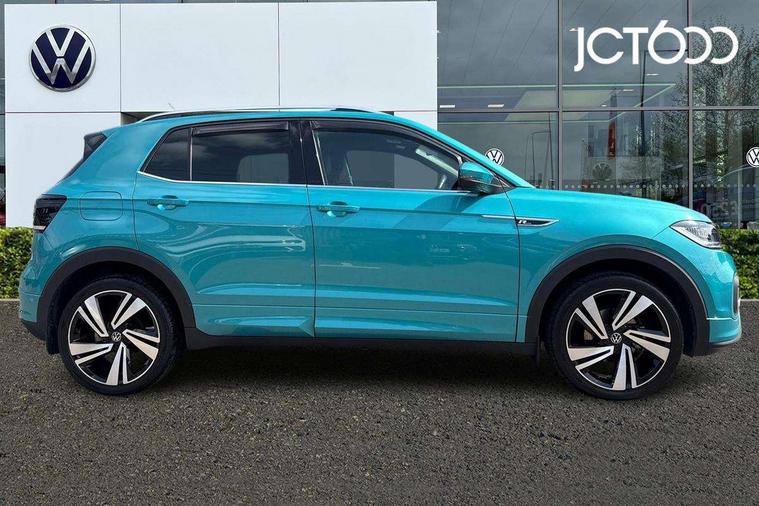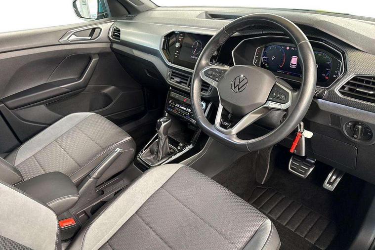 'Lights On' Reminder warning buzzer, 2D/3D map view, Active info display - 10.25" High resolution TFT dash display screen, Adaptive cruise control including front assist, forward collision warning, autonomous emergency braking, speed limiter, Blind spot monitoring, Bluetooth telephone and audio connection for compatible devices, Car information display, Driver alert system, eCall emergency call system, Lane assist, Low washer fluid warning light, Multifunction computer with visual gear change recommendation for fuel consumption, Operating permit alteration, Power assisted speed sensitive steering, Speed limit display, Speedo, rev counter, electronic odometer, trip, service interval display, exterior temperature and fuel gauge, Stop/start system, Warning sound and light for doors and tailgate open, Warning sound and light for front seatbelts unfastened, We connect plus preparation, Wireless Car net app connect with Apple CarPlay, combined functionality of Apple CarPlay/Android Auto and MirrorLink, Battery regeneration during braking, Misfuel prevention device, 2x USB connection with USB charging sockets and in rear centre console, DAB Digital radio receiver, Diversity antenna for FM reception, Multi device interface (MDI) with USB connection, Music playback - MP3, WMA and AAC files, Premium USB cable for Apple or Android smartphone compatibility, Simultaneous pairing of 2 compatible mobile devices, SMS Functionality, Three route options - Fast, Short, Eco, Title and cover art display, Automatic hazard lights activation under emergency braking, Body colour door handles, Body colour door mirrors with integrated indicators, Body colour rear roof spoiler, Body coloured bumpers, Dusk sensor + automatic driving lights, Electrically foldable, adjustable and heated door mirrors with reverse activated kerb view adjustment on passenger's side, Front and rear electric windows, Front fog lights with static cornering function, Galvanised body, Heated rear window, LED third brake light, Lower door sills and door pillars in black, Radiator grille with chrome trim and chrome bezel front fog lamp, Rear fog light on one side, reversing light on both sides, Rear lights incorporating LED technology, Rear side wing doors, Rear tinted glass 65% approx light absorbing from B pillar backwards, Rear window aerial, Rear windscreen washer and wiper with interval delay, Reflectors in all doors, Silver roof rails, Stainless steel door sill protection, Tailgate with integrated roof spoiler, Unique R Line badging, Windscreen wipers/ intermittent wipe + 4 position delay, 12V Accessory socket in centre console, 2 Front and rear reading lights incorporating LED technology, 2 Zone electronic climate control with automatic air recirculation, 3 rear head restraints and 3 rear three point seat belts with ECE label, 3 seat bench in 2nd row, 60/40 split folding rear seat backrest, Ambient lighting and sourround lighting, Black headlining, Branded points of interest, Brushed stainless steel pedals, Carbon flag cloth upholstery, Drawer under drivers seat, Driver and front passenger sunvisor with vanity mirror, Driver's sunvisor with ticket holder, Dust and pollen filter, Front and rear carpet mats with contrast stitching, Front centre armrest with storage compartment, Front footwell illumination, Front seat back storage pockets, Front seat R Line logo with rear seat backrest, Front sports seat with height and lumbar adjustment, Glovebox, Heating and fresh air system with 4 stage blower, Height/reach adjust steering wheel, Instrument lighting white adjustable panel illumination, Interior light with delay, Isofix child seat preparation for 2 rear child seats, Leather trimmed three spoke multifunction steering wheel with contrast stitching and aluminium inserts with R Line logo, Luggage compartment cover, Luggage compartment lighting, Moveable and foldable Rear bench seat, Scuff plates in door apertures, Steering wheel paddle shift, Storage compartment in drivers and front passengers door, Variable boot floor, R Line styling pack - T-cross, 3-point seat belts in front with electric tensioner + height adjustment, Anti-lock Braking System (ABS) with Hydraulic Brake Assist (HBA), Automatic post collision braking system, Driver and front passenger safety-optimised head restraints, Drivers and Front Passengers airbags with front passengers airbag deactivation switch, ESC with EDL, ASR, EDTC and trailer stabilisation function, Front and rear curtain airbags, Front seat side impact airbags, Hill start assist, Pre crash preventive occupant protection, Proactive passenger protection system in combination with front assist, Rear door child safety locks, Rigid safety cell with front and rear crumple zones, Single torn horn, Tyre pressure loss indicator, Volkswagen roadside assistance, Alarm with interior protection and deactivation via infotainment system, Child security locks in rear doors, Electronic engine immobiliser, Remote tailgate unlocking using key fob, Race decorative inserts in dash and doors, 18" Nevada black alloy wheels, Breakdown kit,