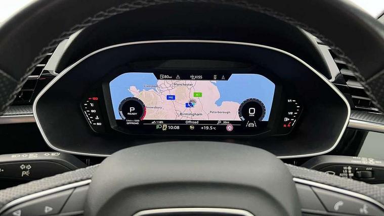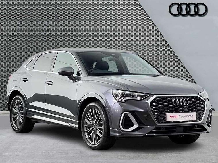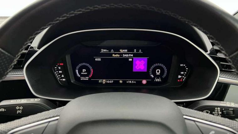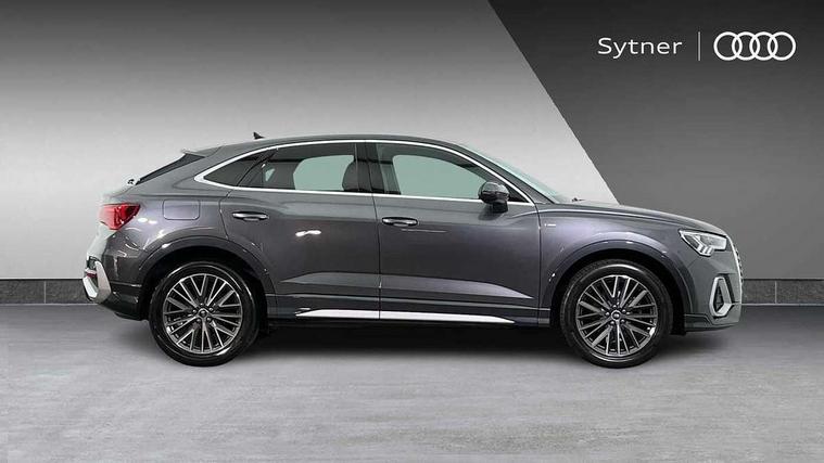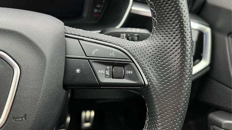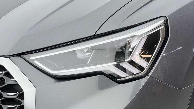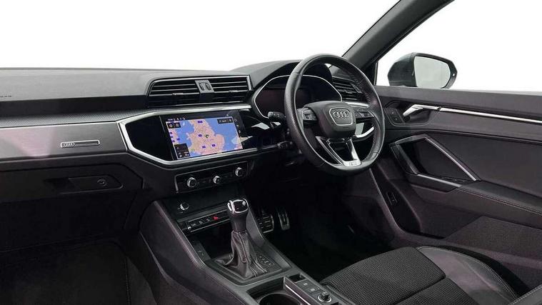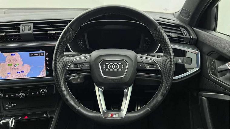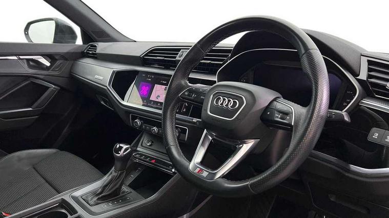 Audi drive select, Audi lane departure warning, Audi Virtual Cockpit - 10.25" display, Bluetooth interface, Camera based traffic sign recognition, Legal emergency call, MMI Navigation Plus with high resolution 10.1 inch touchscreen colour display, Power operated tailgate, Progressive steering, Service interval indicator, Smartphone interface includes wireless Apple carplay/Android Auto, Start stop system with recuperation, Voice control system with natural language interaction, Sports suspension, 2 USB-C ports with charge and data functions, 6 passive loudspeakers, DAB digital radio module, Acoustic windscreen, Aluminium window trim, Auto dimming frameless rear view mirror, Diffuser grille in grained matt black, Diffuser trim in selenite silver, Electrically folding, adjustable and heated door mirrors with integrated LED side indicators and kerb view function for passenger side, Front and rear electric windows, Front fog lights, Front side air inlets in selenite silver, Front underbody protection in manhattan grey paint finish, Grille surround in aluminium silver matt, High gloss black finish B and C pillars, LED Dynamic rear indicators, LED headlights with LED daytime running lights, LED rear lights, LED third brake light, Privacy glass dark tinted rear and rear-side windows (from B-pillar backwards), Radiator grille in anthracite black with inlay in matt aluminium silver, Rain and light sensors, Rear side wing doors, Rear underbody protection in matt black, Rear wiper, S line badges on front wings, S line front and rear bumpers and side skirts in contrasting Manhattan grey paint finish, Side skirt insert in matt Platinium grey, Variable front intermittent wipers, 12V socket in rear centre console, 3 seat bench in 2nd row, 3 spoke leather multifunction steering wheel features S badging and grips in perforated leather with contrast stitching, 40:20:40 folding with manual adjustment for 60:40 forwards/backwards position and backrest angle, Adjustable rear seat bench/backrest with centre armrest and cupholder, Black cloth headlining, Dual zone electronic climate control, Front and rear black floor mats with contrast stitching, Front and rear headrests, Front and rear roof module including reading lights, Front centre armrest, Glove compartment lighting, Height and reach adjustable steering wheel, Illuminated door sill trims with S logo, ISOFIX child seat mounting for front passenger with airbag deactivation and outer rear seat including top tether attachment point for outer rear seats, Luggage compartment light right in white, Luggage compartment sill protection in stainless steel, Manual front seats with height adjustment, Perforated leather gearknob, Single front passenger seat, Stainless steel pedals, Ambient lighting pack - Q3, Non smoking pack - Q3, 3x3 point rear seatbelts, 6 airbags - Driver, front passenger, curtain and side windows, Audi pre-sense front with pedestrain and cyclist recognition, Electrically operated child locks on rear doors, Electromechanical parking brake, Electronic stabilisation control including ABS, ASR and EDL, Front seatbelt reminder, Hill descent control, Hill hold assist, Pre sense basic, Seatbelt monitoring, Tyre pressure warning, Warning triangle and first aid kit, Anti theft alarm, Anti theft wheel bolts, Immobiliser, Remote central locking, Aluminium look interior elements, Black dashboard, Dark matt brushed aluminium inlay, Detail dashboard around MMI touch colour display in glass look, black with surround in aluminium look, Leatherette door armrest,