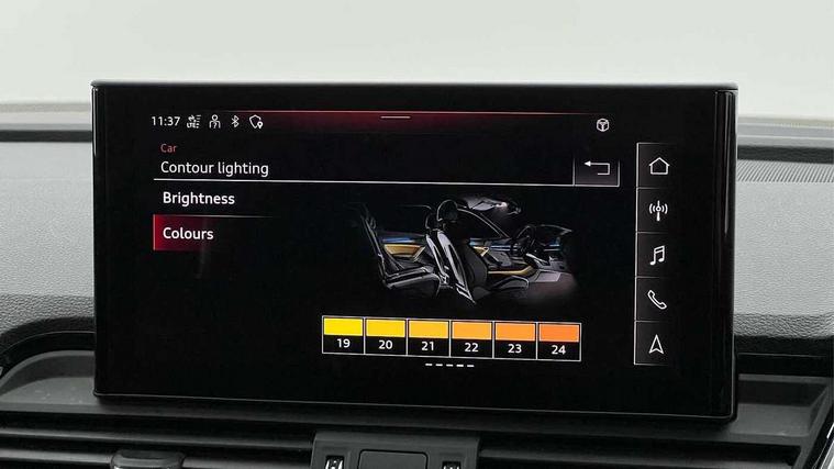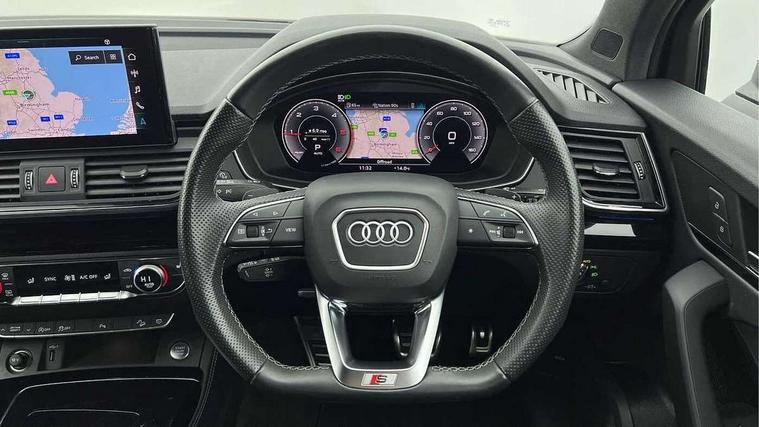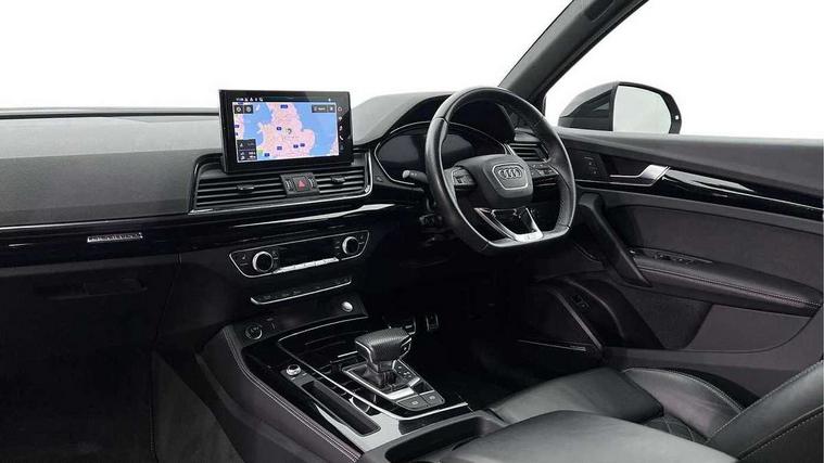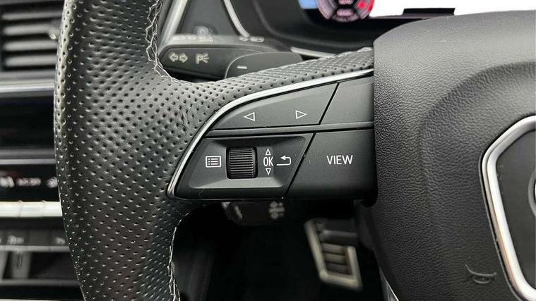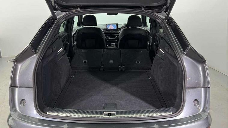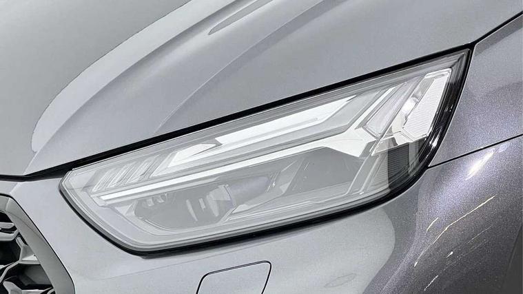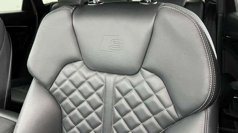 Audi connect safety and service (e-call), Audi connect with Amazon Alexa Integration, Audi drive select, Audi virtual cockpit plus with 12.3" screen and three different layout designs, Audi wireless smartphone interface, Automatic start-stop system with coasting functionality and efficiency programme, Bluetooth interface, Electro - mechanical power assisted steering, MMI navigation plus with 10.1" touch screen, Power tailgate, Reversing camera, Service interval indicator, Voice control system with Audi hotword activation "Hey Audi", Diesel particulate filter, Quattro on demand, S line sports suspension, DAB Digital radio, Acoustic windscreen, Audi beam with Audi rings logo, Audi matrix LED headlights with dynamic front and rear indicators, Audi rings at front and rear in black, Audi rings decal on rear doors, Auto dimming door mirrors, Auto dimming rear view mirror, Automatic headlights and windscreen wipers, Black door mirrors, Black roof rails, Body colour underbody protection, Chrome plated exhaust trims, Daytime running lights, Door sills in Selenite silver, Electric adjustable/heated/folding door mirrors, Front air inlet surrounds in aluminium, Front and rear electric windows, Headlight washers, High gloss black B pillar trims and triangular rear door trim, High level LED brake light, Rear chrome trim strip below lights, Rear privacy glass and rear side windows, Rear side wing doors, Rear spoiler, Rear wiper, Roof bars, Without model and engine badging at rear, 2 x USB charging port with aux input socket, 3 rear headrests, 4 way electric lumbar support for driver and front passenger, 40:20:40 split folding 3 rear bench seat in 2nd row with rear centre armrest, Black cloth headlining, Comfort front centre armrest, Contrast stitching on seats, steering wheel and gear lever gaiter, Deluxe 3 zone electronic climate control, Electrically adjustable front seats, Fine Nappa leather upholstery with diamond pattern contrast stitching + front sport seats with S embossed logo, Front head restraints, Front/rear floor mats, Gear lever in black leather, Heated front seats, Height/reach adjustable steering column, Illuminated door sill trims with S logo, ISOFIX child seat mounting and top tether, Rear seat bench plus, Removable luggage compartment floor, Single front passenger seat, Stainless steel pedals, Sunvisors with vanity mirrors, Trunk roller cover, Artificial leather pack - Q5, Black styling package - Q5 Edition 1, Extended LED Interior multi coloured Lighting Pack - Q5, 3 point seatbelts on all seats, 6 airbags - Driver, front passenger, curtain and side airbags, Electrically operated child locks on rear doors, Electromechanical parking brake, Electronic stabilisation control including ABS, ASR and EDL, Front and rear brake calipers painted in red, Front passenger airbag deactivation, Hill descent control, Hill hold assist, Multi collision brake assist, Pop-up bonnet for pedestrian protection, Pre sense city, Seat belt force limiter, Seatbelt monitoring, Tyre pressure warning, Warning triangle and first aid kit, Anti theft alarm, Anti-theft wheel bolts, Keyless Go access/ignition system, Remote central locking, Piano black finish inlay,