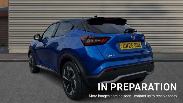12.3" full colour TFT screen combimeter, Drive modes select (Eco, normal and sport), e-Pedal step, Emergency and breakdown call, EV mode switch, Front parking sensor, Intelligent driver alert system, Intelligent lane intervention, Lane departure warning system, Nissan connect 12.3" touch screen entertainment system, Nissan connect nav with TomTom traffic, Nissan connect services, Outside temperature sensor, Power Steering, Rear parking sensor, Stop/start button, Traffic sign recognition, Trip computer, Voice recognition, WiFi connectivity, Wireless Apple CarPlay and Google Android auto, Wireless Smartphone charger, 10 Bose speakers 6 speakers and 2 headrest speakers for driver/passenger seats, 2 X Rear console USB port, Bluetooth system, USB, Aux-in and 12V socket, Bose personal sound stage control, DAB Digital radio, Auto dimming frameless rear view mirror, Automatic hazard signal with emergency stop signal, Body colour door handles, Electrically adjustable door mirrors with integrated indicators, Follow me home headlights, Front and rear electric window with one touch driver window, Heated and auto folding door mirrors, High beam assist, LED 3rd brake light, LED daytime running lights, LED front fog lights, LED headlamps, LED rear fog lamp, LED rear lamps, One touch passenger window, Rain sensor windscreen wipers, Rear privacy glass, Rear side wing doors, Rear wiper, Roof spoiler, Shark fin roof antenna in solid Black, Three blink turn signal, 3 height adjustable rear headrests, 3 seat bench in 2nd row, 60/40 split folding rear seat, Automatic climate control, Card holder on driver sunvisor, Door ambient lighting, Driver seat back pocket, Driver side rear coat hanger, Driver/passenger sunvisors and vanity mirrors, Front and rear cabin lights, Front armrest, Front door pockets with bottle holders, Front head restraints, Front/rear passenger grab handles, Gear console ambient circle lighting, Height adjustable driver's seat, Internal chrome door handles, Leather gearshift knob, Luggage board, Luggage space lighting, Monoform sporty seats, Multifunction steering wheel, Passenger seat back pocket, Rear door bottle holders, Single front passenger seat, Smooth synthetic leather steering wheel, Synthetic leather kneepad, Telescopic steering wheel adjustment, Two cupholders in front centre console, Two rear isofix child seat anchorage points with top tether, Welcome light and console tray ambient lighting, Heat pack with height adjustable passenger seats - Juke, Interior personalisation pack - Juke, ProPilot pack - Juke Auto, Satin grey exterior personalisation pack - Juke, ABS with EBD and brake assist, Active ride control, Active Trace Control, Driver and passenger airbags, Driver and passenger side airbags, Electric handbrake with auto hold function, Electronic Stability Programme (ESP), Front and rear curtain airbags, Height adjustable seatbelts, Hill start assist, Intelligent emergency braking with pedestrian and cyclist recognition, Rear door child safety locks, Seatbelt reminder for driver/front passenger and rear seats, Three 3 point rear seatbelts, Traction control, Tyre pressure monitoring system, VDC Dynamic Vehicle Control, Alarm, Immobiliser, Intelligent key and start push button with walk away lock and approach unlock functions, Remote central locking, 19" Aero alloy wheels, Tyre puncture repair kit,