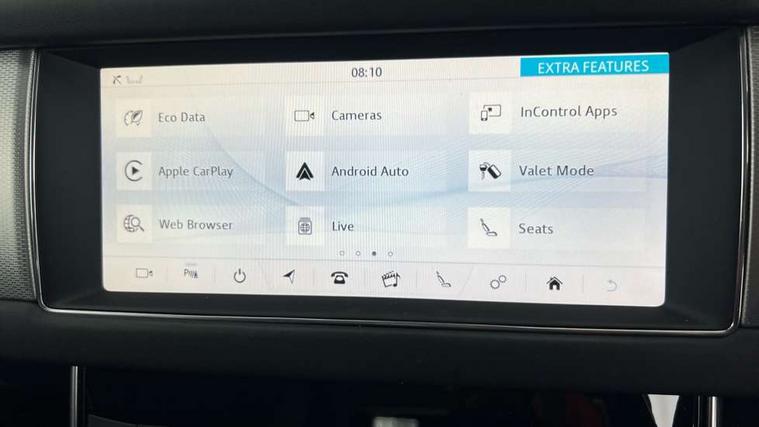 Analogue dials with 7" central TFT display, Android Auto, Apple car play, Bluetooth telephone connectivity, Electric power steering, InControl remote premium, Jaguar Voice front, Lane departure warning system, Outside temperature gauge, Pro services and wifi hotspot, Rear parking aid, Service interval indicator, Traffic sign recognition with adaptive speed limiter, Trip computer, 8 speed automatic transmission, Self levelling rear air suspension, Bluetooth audio streaming, DAB Radio (Digital Audio Broadcasting), InControl app, InControl protect, InControl Wi-fi, USB and auxiliary socket, Acoustic windscreen, Auto dimming eletrochromatic rear view mirror, Automatic headlights, Blue tinted glass, Body colour door mirrors, Chrome side vents, Chrome tailgate/boot lid finisher, Chrome window side surrounds, Electric front/rear windows with one touch/auto up/down, Frameless auto dimming interior rear view mirror, Headlight power wash, Heat insulated glass, Heated front windscreen, Heated rear window, Illuminated metal tread plates with Jaguar script, LED tail lights, Metal load space scuff plates, Rain sensor windscreen wipers, Rear wash/wipe, Roof spoiler, Silver roof rails, Tailgate/boot lid spoiler, Trailer stability assist, 12V accessory sockets - front and rear, 2nd row air vents, 3 rear seat head restraints, 4 way electric lumbar support for driver and front passenger, 40:20:40 split folding rear seats, Auxilliary 12V power socket, Bright metal foot pedals, Chrome seat switches, Chrome trunk finish, Front armrest, Front centre console storage box, Isofix child seat preparation, Jaguar sense, JaguarDrive selector, Loadspace cover, Loadspace storage rails, Overhead console with sunglasses holder, Perforated Windsor leather upholstery, Premium carpet mats, Rear armrest with twin cupholders, Rear storage compartment, Soft grain sport leather steering wheel, Sunvisors with illuminated vanity mirrors, Tie down hooks in luggage area, Twin front cupholders, Windsor leather wrapped instrument panel topper, ABS+EBA, Anti-whiplash front headrests, Autonomous emergency braking, Brake pad warning light, Driver/Front Passenger airbags, DSC - Dynamic Stability Control, Electronic parking brake, Emergency brake assist, Front and rear curtain airbags, Front/rear seatbelt pre-tensioners, Hill start assist, Pedestrian contact sensing, Power child locks, Seatbelt warning, Side airbags, Three 3 point rear seatbelts, Torque vectoring brake, Traction control, Tyre pressure monitoring system, Deadlocks, Drive away door locking, Immobiliser, Keyless entry system, Keyless start, Locking wheel nuts, Perimeter alarm, Remote central locking, Morse code aluminium instrument panel finisher,