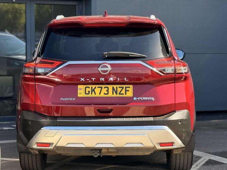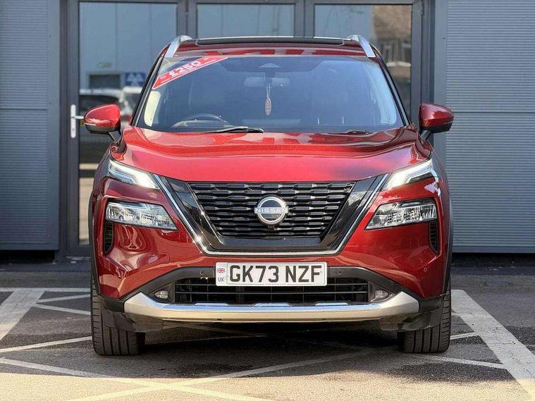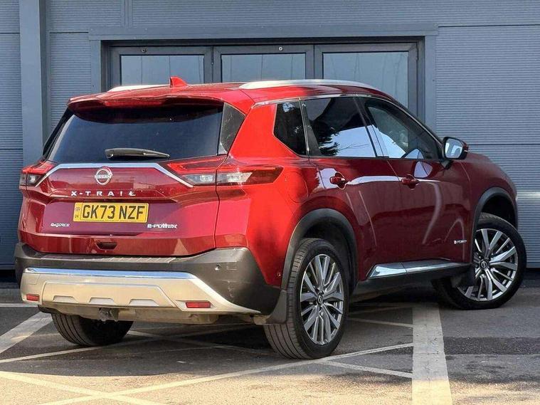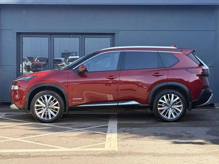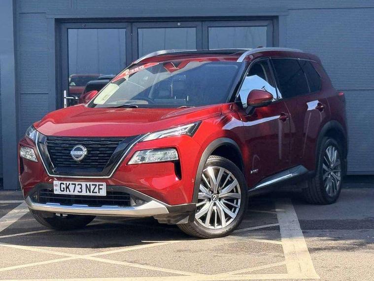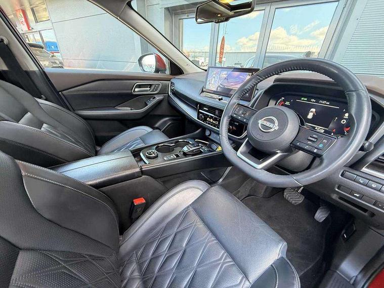Advanced 10.8" head up display, Android auto/Apple CarPlay (Wired), Blind spot warning, Drive modes (sport, normal, eco, snow, off-road), e-Pedal step, Electric speed sensitive power steering, Emergency and breakdown call, Front and rear parking sensors, Full Digital 12.3" TFT Digital Combimeter, Google maps services - search, weather, 3D maps and Google street view, Hands free power tailgate, Idle stop/start system, Intelligent around view monitor, Intelligent driver alert system, Intelligent forward collision warning, Intelligent lane departure warning, Intelligent lane intervention, Intelligent lane keep assist, Lane departure prevention, Maximum speed limiter, Moving object detection, Nissan connect 12.3 inch touchscreen infotainment system, Nissan connect nav with TomTom traffic, Pro pilot and head up display, ProPilot park, Push button starter, Rear cross traffic alert, Rear view camera, Remote control services - door locks, lights, horn and car locator, Telematics - notifications and connectivity services, TomTom live traffic services, Traffic jam pilot, Traffic sign recognition with legal speed adjustment, Trip computer, Virtual personal assistant and firmware over the air capability, Wireless apple carplay, Wireless charging pad, AM/FM audio system with DAB, Bluetooth audio streaming, Bose premium acoustimass bass box with digital amplifier, Bose premium sound system with 10 speakers, Digital amplifier, Front USB connections (Type-A and Type-C), Rear USB charging only ports (Type-A and Type-C), 3rd brake light, Auto dimming rear view mirror, Auto rear wiper when reversing, Body colour mirror caps, Body coloured door handles, Bodyside mouldings, Chrome side window finisher, e-4ORCE badging, e-POWER badging, Electric auto folding door mirrors, Electrically adjustable and heated door mirrors, Follow me home headlights, Headlights auto levelling system, High beam assist, Intelligent auto headlights, LED daytime running lights, LED front fog lights, LED headlights with adaptive driving beam, LED rear lights, Memory function for door mirrors, One touch front and rear electric windows with remote opening and closing, Partially body coloured bumpers, Rain sensing wipers, Rear privacy glass, Rear reversing light (bulb lighting), Rear roof spoiler, Rear side wing doors, Rear styling plate, Reverse tilting door mirrors, Shark fin antenna, Splash free wipers, Super UV and infrared cut glass, Thermaclear heated windscreen, Three blink turn signal, 12v power socket in dashboard and luggage, 2 seat bench in 3rd row, 3 bench rear seats in 2nd row, 3 rear headrests, Butteryfly console, Chrome interior door handles, Dark headlining, Driver and front passenger sunvisors with illuminated vanity mirrors, Driver seat back pocket, Electric adjustable 2 way lumbar support for driver, Electrically adjustable driver seat with massage and memory functions, Electrically adjustable passenger seat with massage and memory functions, Front and rear heated seats, Front centre console and armrest, Front cupholders, Front door with bottle holders, Heated steering wheel, Height adjustable driver's seat, Height adjustable front headrests, Height adjustable passenger seat, Leather shift knob, Leather steering wheel, Luggage board system, Luggage space lighting, Multifunction steering wheel, Passenger seat back pocket, Quilted premium leather upholstery, Rear armrest with 2 cupholders, Rear door bottle holders, Single front passenger seat, Sliding second row seats, Split folding 2nd row - 40/20/40, Steering column mounted gear shift paddles, Tilt/telescopic adjustable steering wheel, Tri zone automatic climate control with pollen filter, Two rear isofix child seat anchorage points with top tether, Sky pack - X-Trail, 3x3 point rear seatbelt pretensioners + load limiters, ABS with EBD and brake assist, Active brake limited slip, Auto hold function, Child locks on rear doors, Curtain and front side, far side airbags, Driver and passenger airbags, Driver, passenger and 2nd row rear seat belt reminder, Electronic parking brake, Front seatbelt pretensioners + load limiters, Height adjustable front seatbelts, Hill start assist, Intelligent blind spot intervention, Intelligent front emergency braking with pedestrian, cyclist recognition and junction assist, Intelligent rear automatic braking, Tyre pressure monitoring system, Vehicle dynamic control, Advance intelligent key with driver memory storage (seats, mirrors, audio), Engine immobiliser, Remote central door locking with deadlocking, Thatcham Cat.1 alarm, 20" Diamond cut alloy wheels, Tyre puncture repair kit,