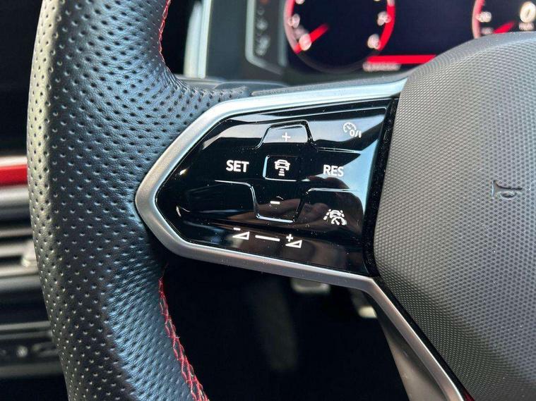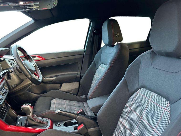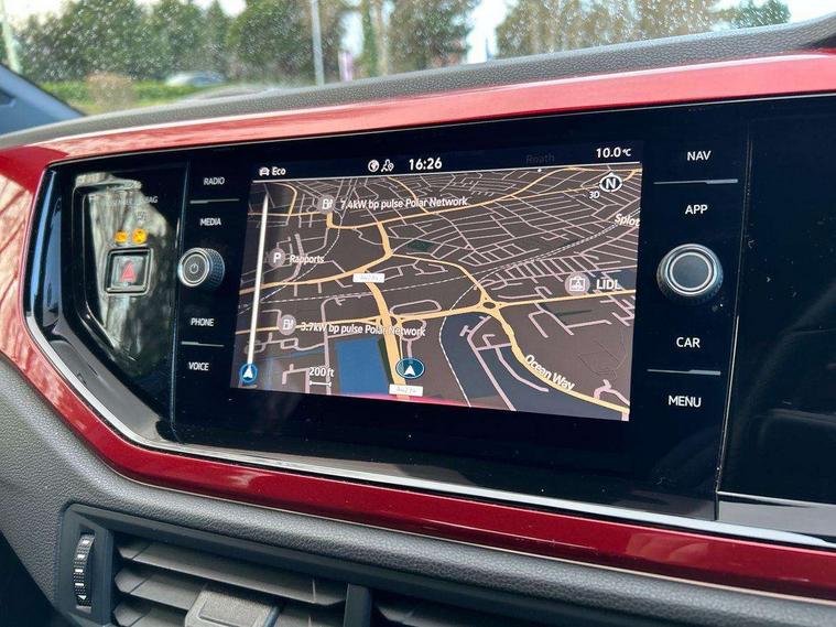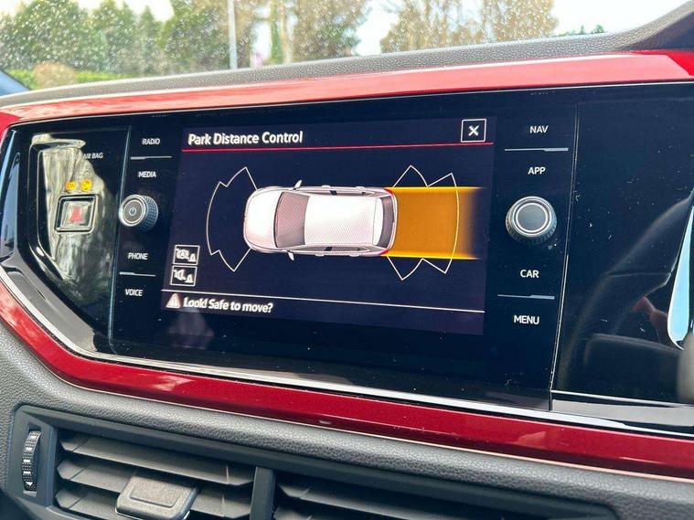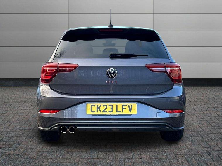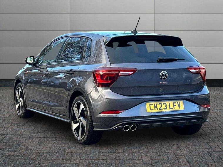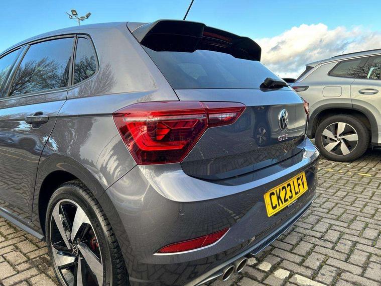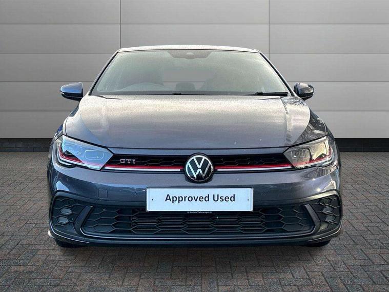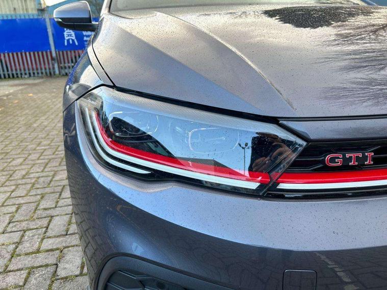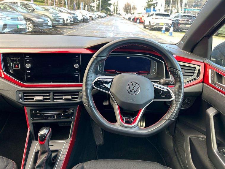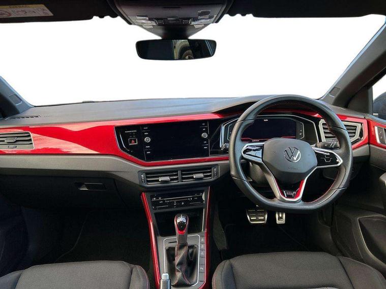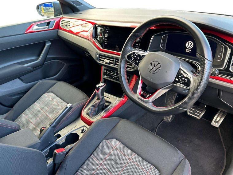 Adaptive cruise control with follow-to-stop and speed limiter, Bluetooth mobile phone interface, Digital Cockpit Pro with 10.25" Display, Driver alert system, Dynamic road sign display, Eco mode, Emergency call service, Power assisted speed sensitive steering, Preparation for We connect and We connect plus, Speedo and rev counter, electronic odometer, trip, service interval display and fuel gauge, Travel Assist - Lane keeping system and traffic jam assist, Travel assist including emergency assist, Trip computer, Warning signal and warning light for front and rear seatbelts not fastened, Washer fluid level indicator, Wireless app connect, Adaptive chassis control, Front wheel drive, Heavy duty rear axle, Rear shock absorpion sports version, Sports select suspension lowered by 15mm, Start-stop system with battery regeneration (recuperation - energy recovery during braking), DAB Digital radio, Diversity antenna for FM reception, Front and rear 6 speakers, Body colour bumpers, Body colour door handles, Electric front windows, Front scuff plates in aluminium with GTI logo, Heat insulating darkened glass in side and rear windows, Heat insulating glass windscreen, Power folding adjustable/heated exterior mirrors and front passenger exterior mirror lowering function, Rear electric windows, Rear fog light, Rear side wing doors, Rear windscreen washer and wiper with interval delay, Sport bumpers with air intakes with honeycomb structure, Third brake light, Twin chrome exhaust tailpipes, 12V power socket in centre console, 2 USB-C ports in the front, 2 USB-C charging sockets on the center console in the rear, 3 rear head restraints, 60/40 split folding rear seat and rear seat bench not split, Air care climatronic air conditoning system with active combination filter and 2-zone temperature control, Black roof lining, Chrome plated radiator grille inserts, air vent surrounds and light switch surrounds, Door and side trim panel, Driver and front passenger seat height adjustment, Driver/passenger sunvisors with illuminated vanity mirrors, Front + rear carpet mats in recycled material, Front centre armrest, Front footwell illumination, Front seat backrest storage pockets, GTI sports gearshift knob in aluminium leather, Handbrake lever handle in leather, Headliner in recycled material, Isofix child seat preparation easy-fit (for two outer rear seats, and front passenger seat) compatible with I-size, LED interior light with switch off delay and dimmer, 2 reading lights front and rear, Luggage compartment cover, Luggage compartment floor, Luggage compartment lighting, Single front passenger seat, Stainless steel pedals, Standard pedal cluster, Three spoke leather wrapped multifunction sports steering wheel with shifting paddles, IQ LED matrix headlights pack - Polo, Light and sight pack - Polo GTI, Sports suspension pack - Polo, 3 point height adj front seatbelts + pretensioners, 3x3 point rear seatbelts, ABS, Driver and front passenger airbag with front passenger airbag deactivation, Drivers and front passengers safety optimised head restraints, ESC (Electronic stability control) + EDL (Electronic Differntial lock) and ASR (Traction control), Extended and predictive pedestrian/ cyclist protection, Front and rear disc brakes with red brake calipers, Front curtain and side airbags with center airbag, Hill hold control, Manual child lock in rear doors, Two tone horn, Tyre pressure loss indicator, Alarm with interior protection, Anti-theft alarm system with interior monitoring, backup horn, and towing protection, Anti-theft wheel bolts, Electronic engine immobiliser, Chrome applications on rotary light, mirror adjustment, window regulator switches, outlet with frame in black, Low rolling resistance tyres,
