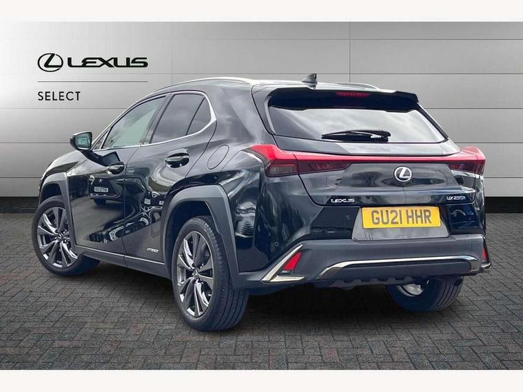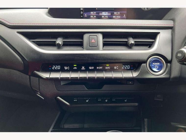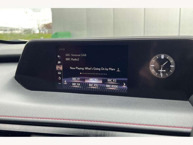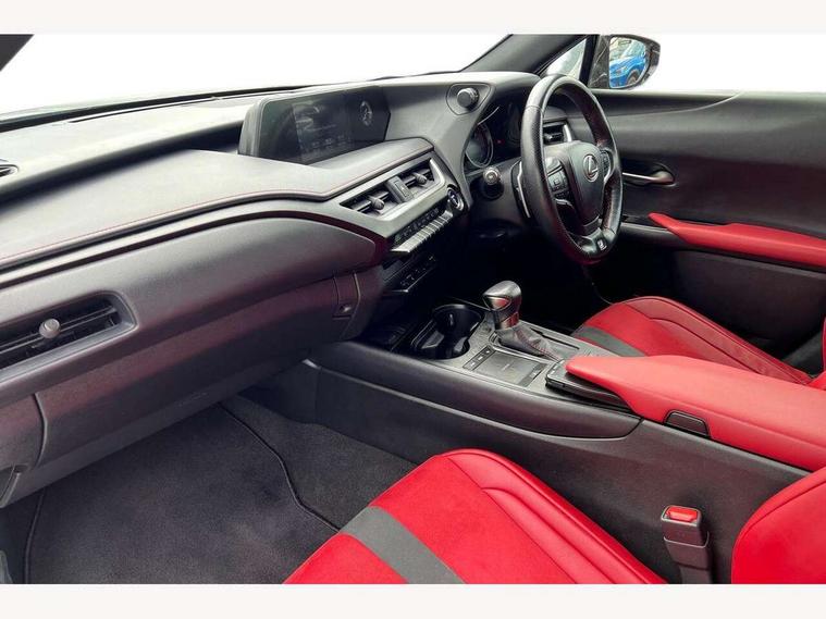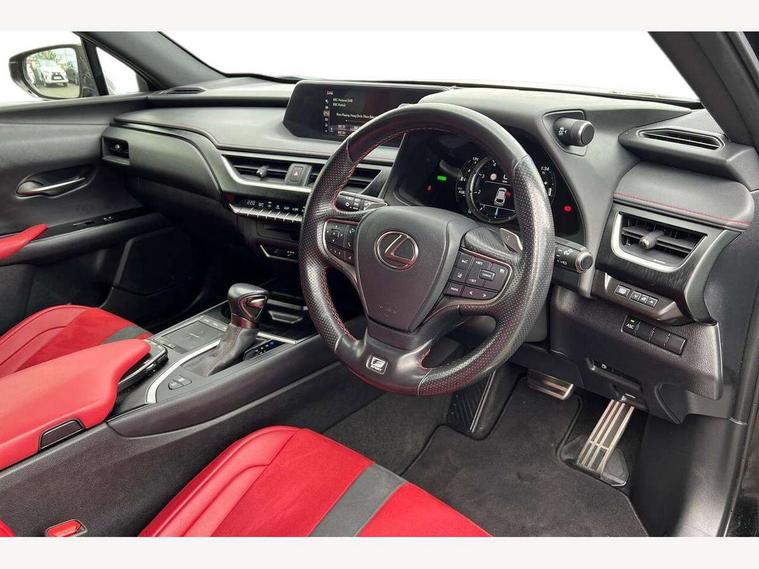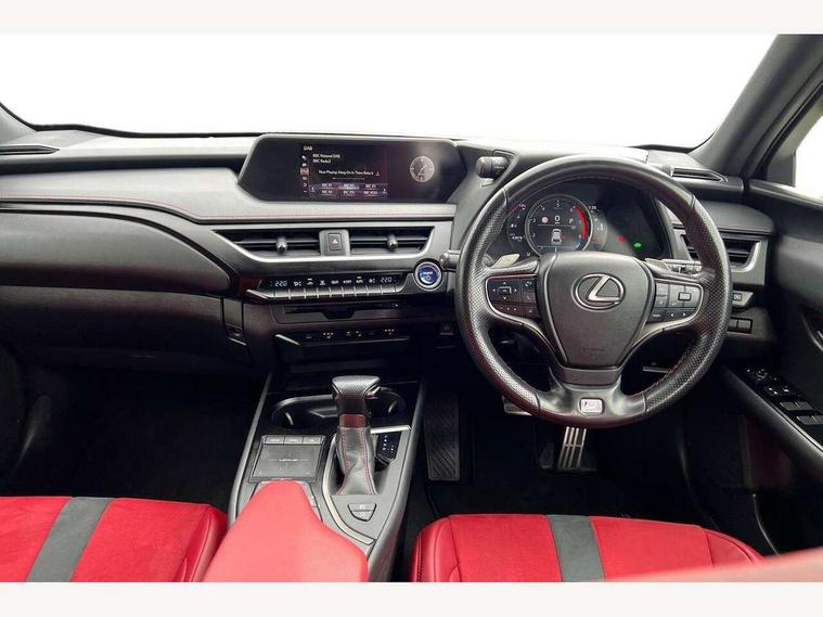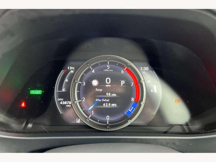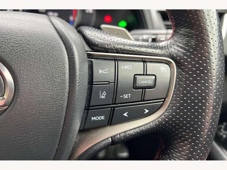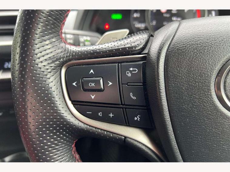 4 driving modes EV/Eco/Normal/Sport, 7" Lexus media display, 8" LFA inspired TFT meters with movable meter ring, Analogue clock with GPS function, Apple car play/Android Auto, Compatible mobile phone bluetooth with audio streaming, E-call, Electric power steering (EPS) with speed sensitive features, Lane change flasher function, Lexus link connected services, Lexus navigation system, Lexus safety systems + includes dynamic radar cruise control, pre collision system day and night, lane tracing assist, road sign assist, Parking assist sensors, 4 front and 4 rear, Push button start, Remote touch interface, Reversing camera with back guide lines, Trip computer, F Sport suspension tuning and rear performance dampers, Vehicle Dynamics Integrated Management (VDIM), Vehicle Stability Control (VSC), 2 front USB and 2 rear USB charging points, 6 speakers, AM/FM and DAB radio, AUX socket with VTR compatibility, CD player, Acoustic windscreen, Aero stabilising arch mouldings, Aero stabilising rear lights, Aero ventilated wheels, Aluminium roof rails, Auto dimming interior rear view mirror, Bi-LED (low and high beam) headlights with Auto High Beam (AHB), Black roof drip mouldings, Body adhesive, laser screw welding and laser brazed roof structure, Body coloured bumpers, Electric adjustable/heated door mirrors, F SPORT exterior styling consists of black Mesh front grille, enhanced side rockers, metallic coated front bumper and F SPORT badging, Front and rear one touch power windows, with anti-jam protection, Headlight cleaners, LED cornering headlights, LED daytime running lights, LED front and rear fog lights, LED tail lights, Privacy glass, rear doors and tailgate, Rain sensor windscreen wipers, Rear wiper, Shark fin roof aerial, Single hidden exhaust pipe, Towing preparation, 12V accessory port centre console and luggage compartment, 2 cup holders in the front and rear centre console, 2 way electrical lumbar adjustment for driver, 2 x folding shopping bag hooks in boot, 2 x sun visors with vanity mirror and lamp, 4 x tie down hooks in the boot, 5 headrests, 60/40 split folding rear seat, 8 way driver/passenger electrically adjustable front seats, Active sound control, Card holder installed in driver and passengers sun visors, Centre armrest with storage, Driver and passenger door pocket, Dual zone electronic climate control + Nano-E humidity sensor, F SPORT Aluminium front scuff plates, F Sport aluminium sports pedals, F SPORT dimpled leather gear lever, F SPORT front seat headrest adjustable forwards and backwards, F Sport interior styling, F Sport leather steering wheel with paddle shifts, Fabric/Tahara leather upholstery, Glovebox, Heated front seats, Heated steering wheel, LED interior illumination, Map pockets in the rear of passenger's front seat, Rear air vents with 2 USB chargers, Rear armrest with 2 cupholders, Storage tray under audio panel, Textile carpet mats, Tilt/reach adjustable steering column, Under deck storage, Under desk side storage, 2 x Isofix child rear seat restraints, 3x3 point rear seatbelts, Anti-lock braking system (ABS), BAS (Brake Assist System), Driver and front passenger 2 stage airbag, Driver and front passenger knee airbag, Driver/front passenger side airbags, EBD - Electronic brakeforce distribution, ECB (Electronically Controlled Brake System), Electric parking brake, Front adjustable seatbelt anchor points, Front and rear curtain shield airbags, Front outer seatbelt+pre-tensioners, force limiter+tension reduction: 3-point with active safety link to PCS, Hill start assist control (HAC), Passenger airbag cut-off device, Rear outer seatbelt+pre-tensioners, force limiter+tension reduction: 3-point with active safety link to PCS, Centre belt w/o pre tensioner+force limiter, Secondary Collision Brake (SCB), TRC (Traction Control), Tyre pressure warning, 2 x remote key fobs, Anti theft system : Alarm instruction sensor, glass breakage sensor and engine immobiliser, Locking wheel nuts, Remote central door locking, Speed sensitive auto door locking, Two motion door lock with double lock, VIN Window etching, 18" F Sport alloy wheels with run flat tyres,