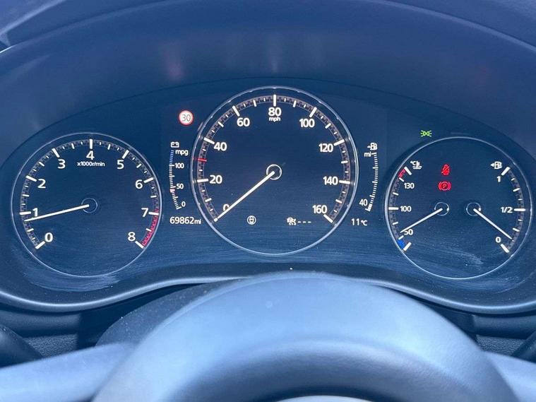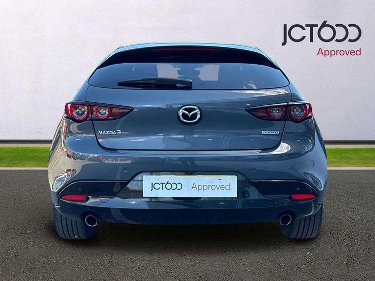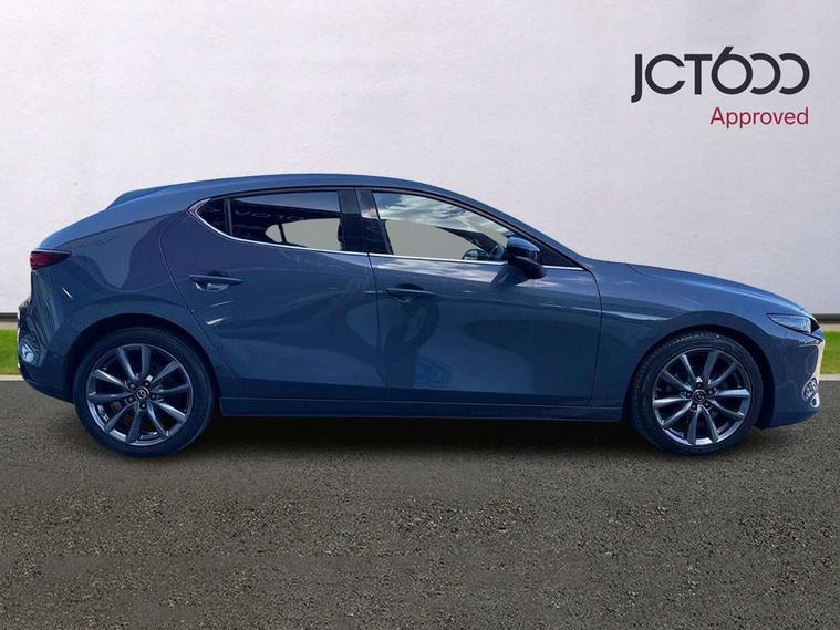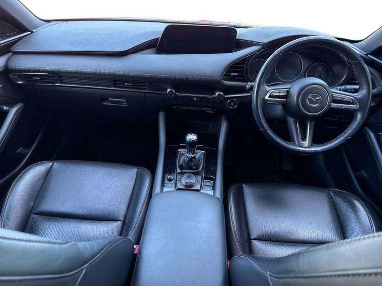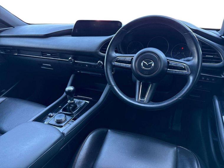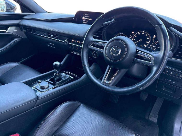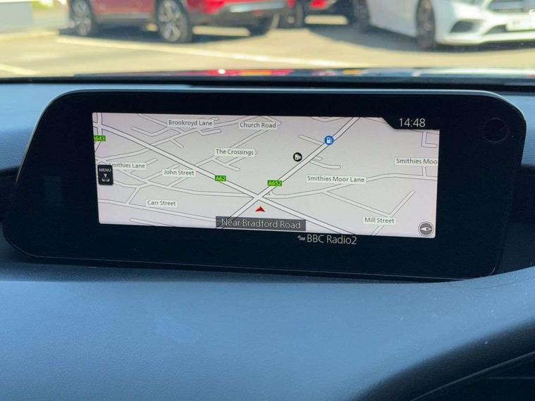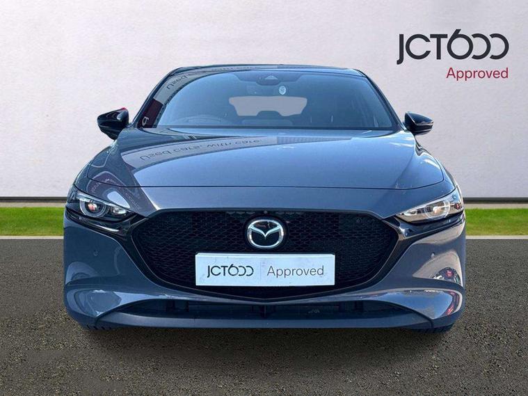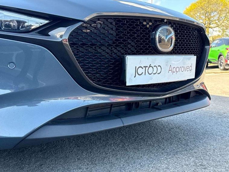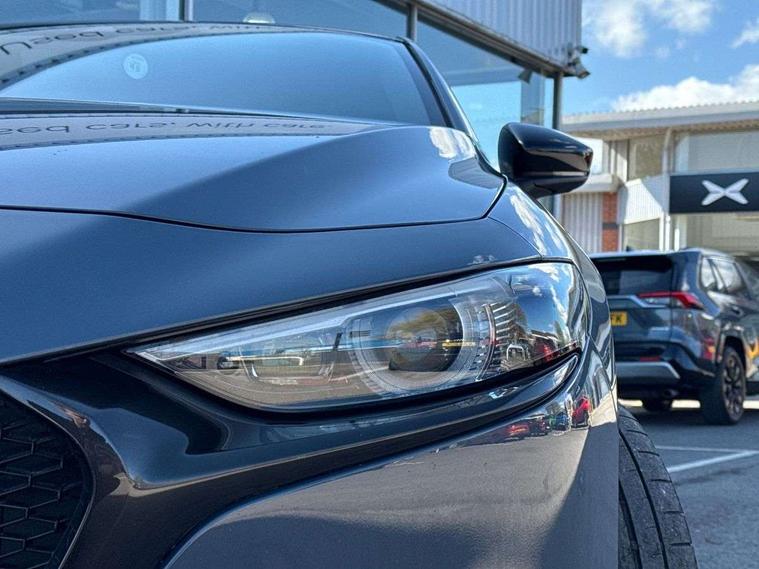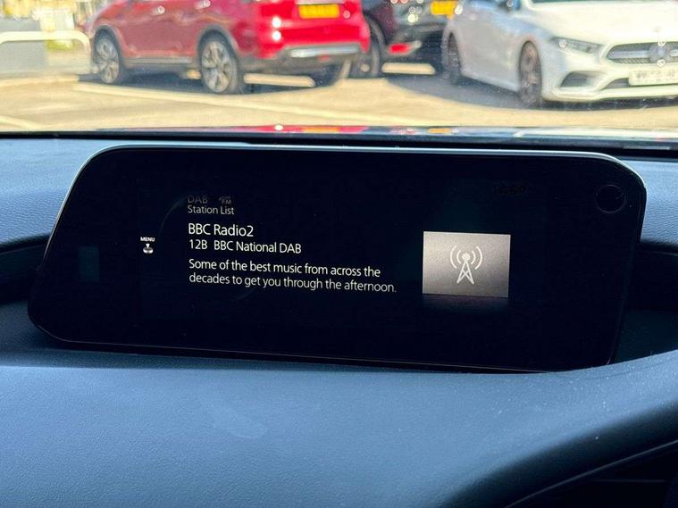 360 View Monitor, 7" colour TFT display, 8.8" Colour centre touch screen display with Mazda Connect infotainment, Apple car play/Android Auto, Audio transfer from bluetooth devices, Blind spot monitoring with rear cross traffic alert, Colour active driving display inc Windscreen projected, Traffic Sign Recognition, turn-by- turn navigation and Mazda Radar Cruise Control information, Cruising Traffic Support, Digital instrument cluster, Driver attention alert system, Driver attention alert system with camera, Driver monitoring system, E-call with GPS, Emergency stop signalling system, Engine start/stop button, Front and rear parking sensors, Front Cross Traffic Alert, Head up Display, Integrated bluetooth with steering wheel mounted controls, Intelligent speed assist, Lane keep assist system (LAS) with Lane departure warning system (LDWS), Mazda Navigation System with european mapping, Mazda Radar Cruise Control, Mobile App interface, Multimedia Commander, PAS, Reversing camera, Service indicator, Start/stop button chrome surround, Trip computer, Auxiliary input socket, Mazda Multimedia System with AM / FM / DAB radio, single CD / MP3 with 12 Speaker Bose sound system, bose centerpoint, bassmatch+audiopilot technology, Adaptive LED Headlights, Auto dimming door mirrors, Coming/leaving home lighting function, Dark metallic finish signature wing, Daytime running lights, Door mirrors with adjustable memory and tilt-down function when reversing, Dusk sensing headlights, Electric front/rear windows with one touch/auto up/down, Electrically adjustable/heated/auto power folding door mirrors with integrated indicators, Frameless auto dimming interior rear view mirror, Front body coloured bumper with black/bright lower bezel, Gloss black mesh grille, Gloss black rear roof spoiler, High beam assist, LED headlamps with auto levelling, LED indicator lights, LED third brake light, Piano black window garnish, Privacy glass with dark tinting on rear side windows and rear window, Rain sensing front wipers, Rear fog lights, Rear gloss black lower moulding, Signature LED lights, Signature LED rear combination lights with LED rear turn lights, Speed adjustable rear wash wiper with intermittent wipe, 60/40 split fold down rear seats, Chrome centre bezel steering wheel, Chrome-plated glovebox handle, Driver, Front passenger and two rear grab handles with coathooks, Driver/passenger sunvisors + vanity mirrors (drivers side with ticket holder), Dual zone climate control air conditioning, Electrical power outlet, Folding rear centre armrest with two cup holders, Front and rear courtesy lamps, Front armrest, Front centre console with storage box with tray, lid + 2 cupholders, Front head restraints, Front passengers seat manual slide, recline and height adjustment, Gear shift indicator, Heated steering wheel, Illuminated glovebox, ISOFIX child seat anchorage points attached on outer rear seats, Leather wrapped gear shift knob, Leather wrapped steering wheel, Leather/vinyl upholstery + front heated with 3 stage setting, LED interior light, Luggage compartment light, Power driver lumbar adjustment, Reach adjustable steering wheel, Storage - glovebox, driver and front passenger door pockets and roof mounted sunglasses holder, Three height adjustable rear head restraints, Tilt/height adjustable steering wheel, USB charging point, 3 point ELR front seatbelts with pretensioners, 3 rear 3 point seatbelts with ELR, Anti-lock braking system (ABS), Collision mitigation braking system, Drivers knee airbag, DSC - Dynamic Stability Control, Dual front airbags, EBD - Electronic brakeforce distribution, Electronic parking brake with auto disengage function and auto hold function, ESP, Front and rear curtain airbags, Front passenger airbag cut-off switch, Front side airbags, Front smart city brake support, G-Vectoring control plus, Hill launch assist, Intelligent Traction Control system, Mild Hybrid system with regenerative braking, Rear smart city brake support, Seatbelt reminder for driver/front passenger and rear seats, Tyre pressure monitoring system (TPMS), Auto door lock when driving, Remote central locking + deadlocks, Smart Keyless entry and start, Thatcham accredited alarm and immobiliser, 18" Grey metallic alloy wheels, Emergency tyre repair kit,