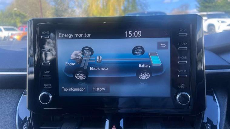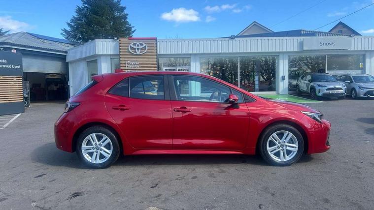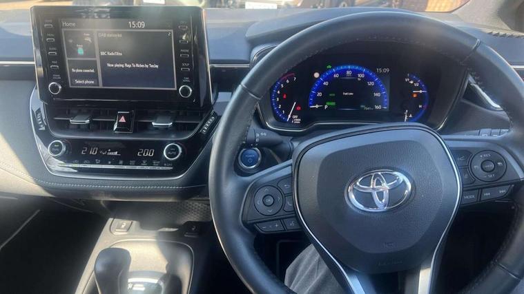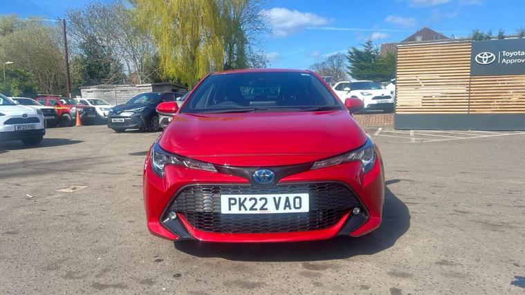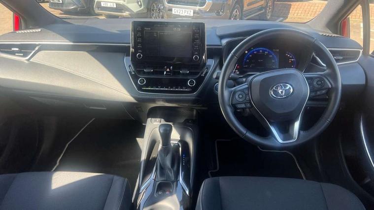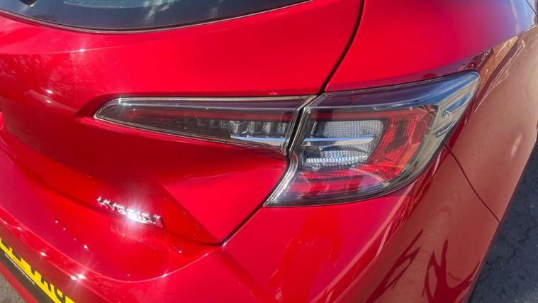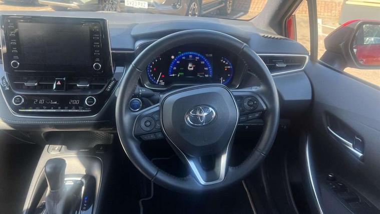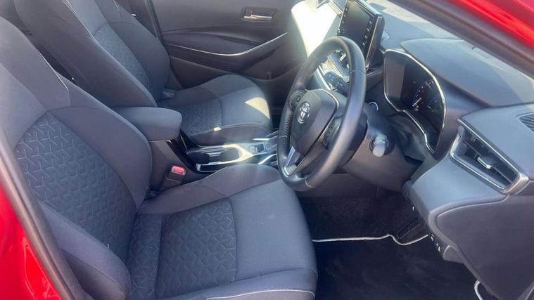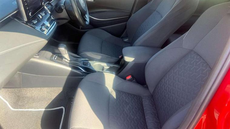 7" Multi information display screen, Bluetooth telephone connectivity, Connected car functionality upgrade, tracker, remote status and e-care, Dynamic radar cruise control (with RSA) including switch on steering wheel, E-call, Electrically assisted power steering, EV drive indicator, Lane Departure Alert (LDA) switch on steering wheel, Memory on adjustable speed limiter, Push button start, Reversing camera, Smartphone integration with Apple CarPlay and Android auto, Gasoline particulate filter, Vehicle Stability Control (VSC), 6 speakers, 8" Touchscreen with MM19 Multimedia system and voice recognition, AM/FM radio, DAB Digital radio, USB and Aux in connectors + 12V front outlet, Anti-jam protection on power windows, Auto up and down function on all power windows, Automatic headlights with high beam assist, Black metallic surround on lower front grille, Black toyota logo in front, Black window frames, Body colour rear spoiler, Body coloured bumpers, Body coloured door mirrors, Body coloured outside door handles, Follow me home headlights, LED daytime running lights, LED front fog lights, LED Headlights, LED High mounted stop light, Manual day/night rear view mirror, Power adjustable heated door mirrors, Power front windows, Power rear windows, Rain sensor, Rear side wing doors, Rear window defogger, Rear window wiper, Shark fin antenna, Time adjustment on intermittent wiper, Turning signal integrated indicators in door mirrors, Unique lower skirt, Unique side rocker with black insert, UV-filter on driver and passenger windows, 3 rear headrests, 3 seat bench in 2nd row, 3 spoke leather steering wheel + gear knob, 60/40 split folding rear seat, Adjustable speed limiter switch on steering wheel, Audio, multimedia and telephone switches on steering wheel, Boot light, Centre room light, Clean air filter, Driver and front passenger personal light, Driver and passenger assist grip, Driver and passenger sun visor with mirror and light, Dual zone automatic air conditioning with ECO mode switch, Fabric armrests, Front and rear cup and bottle holders, Front door pockets, Front head restraints, Front passenger seat, Heated driver and front passenger seats, Illuminated entry system in room lamp, ISOFIX seat fixing (2 fixings on rear outer seats), Leather gear shift with satin chrome on gear shift console, Manual height adjustable for driver and front passenger seat, Parcel shelf, Passenger seat back pocket, Pollen filter, Power adjustable lumbar support on driver seat, Power window switches with satin chrome inserts, Quilted fabric upholstery with grey stitches seats, Rear armrest with 2 cupholders, Rear passenger coat hooks (2), Satin chrome inside door handles, Shopping bag hooks in luggage compartment, Sliding armrest on centre console box, Slow opening glovebox with lights, Tilt/telescopic steering column, Voice recognition switch on steering wheel, Whiplash Injury Lessening (WIL) feature (active headrest) for seats, Toyota safety sense 2 pack - Corolla, 3x3 point rear seatbelts, Adjustable driver and front passenger seat belt extender to top anchor point, Anti lock braking system + Electronic brake force distribution, Brake assist function, Child locks on rear doors, Downhill Assist Control (DAC), Electronic parking brake, Emergency brake light signal (EBS), Front passenger airbag on/off switch, Front seatbelt reminder, HAC - Hill start assist control, Rear seat belt reminder, Seatbelt pretensioners and force limiters, Supplemental restraint system (SRS) 7 airbags - dual driver, dual side curtain, side impact and driver knee airbags, Traction control, Tyre pressure warning system, Acoustic vehicle alert system (AVAS), Alarm with motion sensor and immobilizer, Remote central locking + deadlocks, Satin chrome dash trim, Soft touch texture on upper dashboard, Unique wheel finish with red wheel cap,