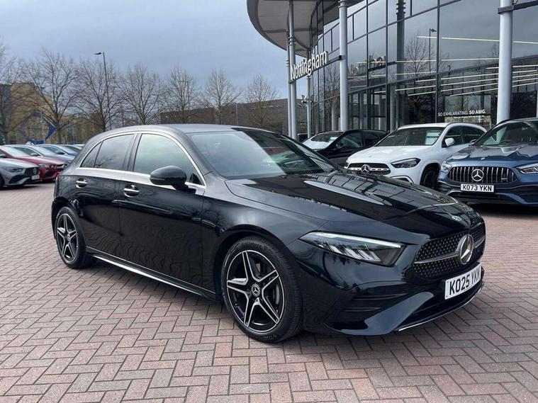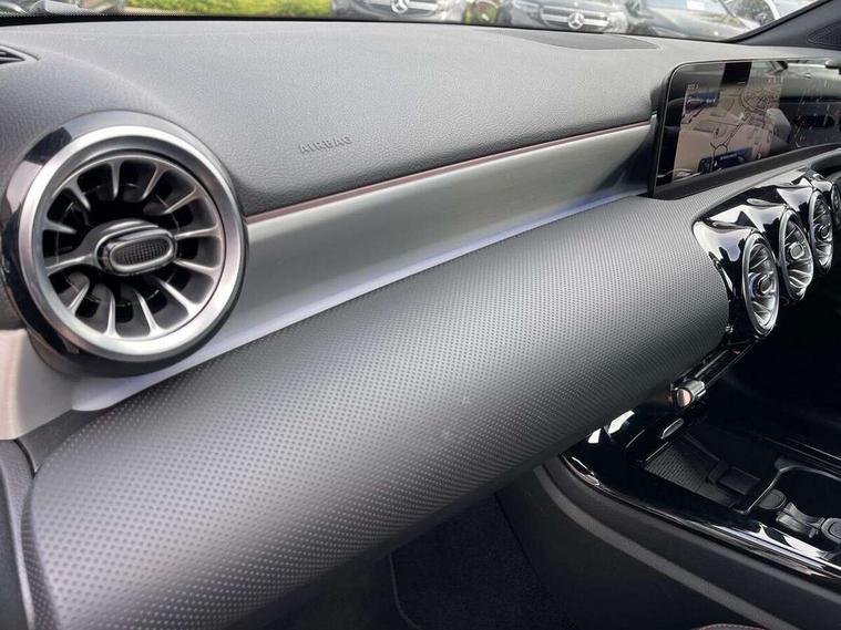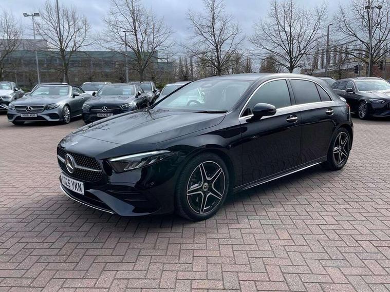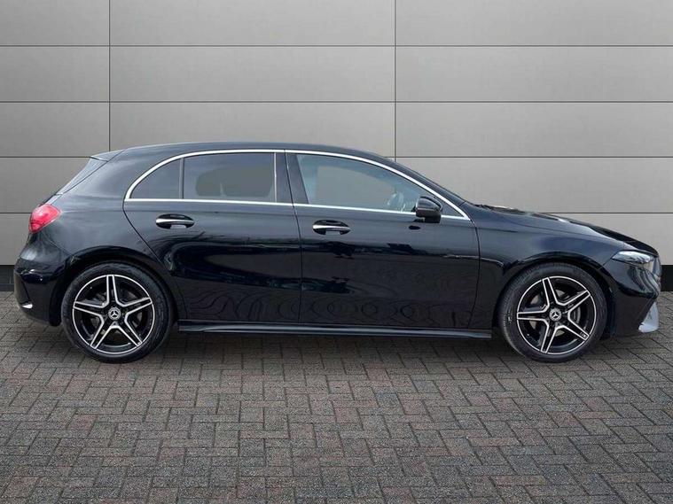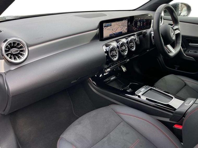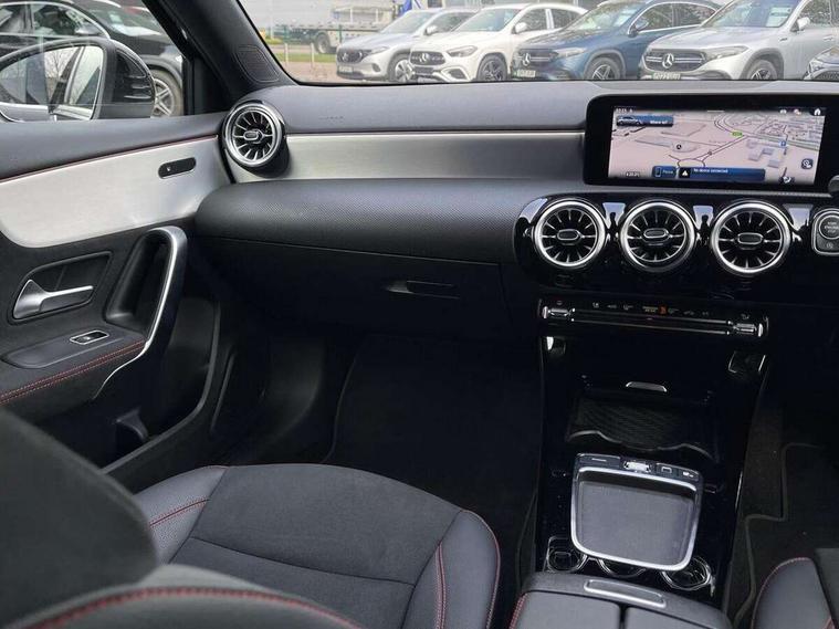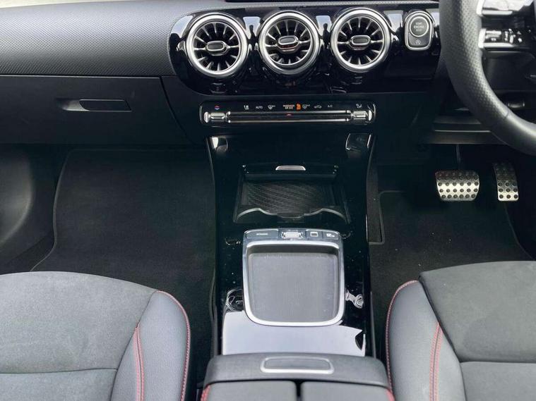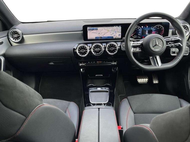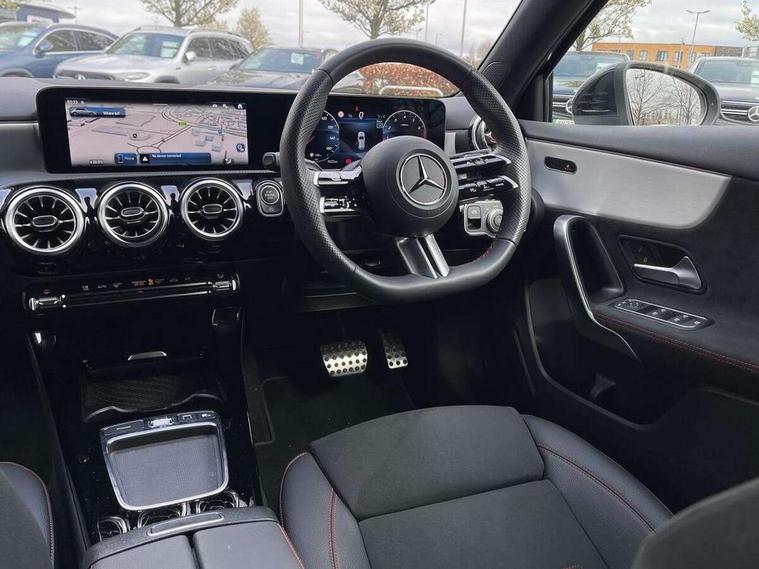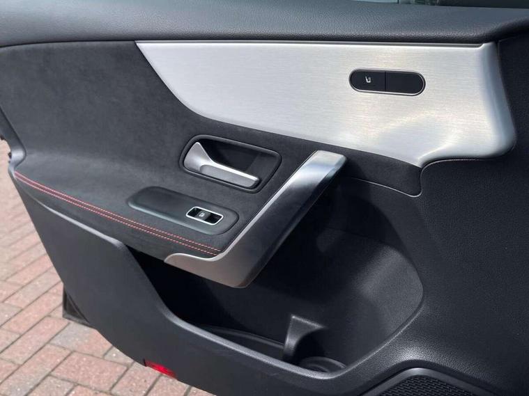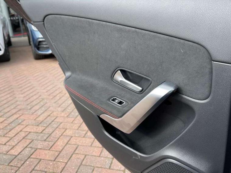 10.25 inch touchscreen central media display, 10.25" Digital instrument cluster display screen, Attention assist, Blind spot assist, Brake pad wear indicator warning light, Car wash mode, Cruise control + speed limiter, Direct steering, Direction indicators with lane change function, Dual bluetooth interfaces, DYNAMIC SELECT with a choice of driving modes (ECO, Comfort, Sport and Individual), ECO start/stop function, Engine start/stop button, Fluid level warning indicator for fuel, oil, coolant and washer fluid, Fluorescent jacket for driver, Hard-disk navigation, Hey Mercedes Voice activation, Lamp failure indicator, Lane keeping system, Mercedes me connect including emergency call system, accident recovery, breakdown and maintenance management, Mercedes me remote services, Outside temperature gauge, Owners manual in English, Pre-installation of private car share, Remote boot closing, Service indicator (ASSYST), Smartphone integration with Apple CarPlay and Android auto, Speed limit assist, Speed sensitive power steering, Tailgate, Trip computer in multifunction display with current consumption indicator, Wireless charging, Lowered comfort suspension, DAB Digital radio, MBUX multimedia system, Mercedes Benz sound system (100 W) with 6 speakers, 4 Electric Front and Rear windows, Adaptive brake lights, AMG body styling - AMG front apron with front splitter and AMG rear apron and visible exhaust tailpipe trim elements, Body colour bumpers, Body colour door handles with chrome inserts, Body colour side skirt, Chrome beltline strips, Diamond radiator grille with pins in fine star pattern, Electric adjustable and heated door mirrors with integrated LED side indicators, Exhaust system with 2 visible tailpipe trim elements and rear apron, Headlamp assist automatic headlamp activation, Heated glass rear windscreen + timer control, LED High level third brake light, LED High Performance headlamps including integral LED daytime running lamps and adaptive highbeam assist, LED tail lamp, Privacy glass, Radio aerial, Rain sensing windscreen wipers with two sensitivity settings, Rear fog lights, Rear side wing doors, Rear windscreen wiper, Window line trim strip in chrome, 3 seat bench in 2nd row, 3 Spoke flat bottom leather multi function steering wheel with perforated leather in grip area, 4 way lumbar support, 40:20:40 split folding rear seats, Air conditioning - One zone THERMATIC automatic climate control with automatically controlled air distribution, AMG floor mats, Artico man-made leather/Microcut microfibre upholstery, Automatic child seat recognition sensor, Black air vents with surround in silver chrome, Black roof lining, Brushed stainless steel sports pedals with rubber studs, Front centre armrest with stowage, Front door sills with Mercedes Benz lettering, Front seat backs luggage nets, Galvanished gear shift paddles on steering wheel, Heated front seats, Height/reach adjustable steering column, Interior lighting - 64 colour Ambient lighting, Interior mirror with reading lamps in black and frameless, Rear armrest with 2 cupholders, Rear head restraints, Seat occupancy sensor for front passenger seat, Single front passenger seat, Sports seats with integrated headrests, Stowage compartment in centre console with retractable cover, Sunvisors with illuminated vanity mirrors, Twin front cupholders, Light and sight package - A Class, Mirror package - A Class, Parking pack with 180 degree view - A Class, Seat comfort pack - A Class, USB pack plus - A Class, 3 rear 3 point seatbelts, ABS with Brake Assist, Active bonnet, Active brake assist includes forward collision warning system with autonomous braking, Adaptive brake assist with hold function and hill start assist, Bonnet with power domes, Childproof locks manually operated for rear doors and electrically operated for rear power windows, Crash responsive emergency lighting, Driver and passenger head and side airbags, Drivers knee airbag, Dual stage driver/passenger airbags, Electronic parking brake, ESP curve dynamic assist, ESP with ASR, Front and rear seatbelt reminder, ISOFIX and top tether child seat fixing points in two outer rear seats, Tyre pressure monitoring system, Warning triangle and first aid kit, Window airbags, Alarm system/interior protection/immobiliser, Guard 360 degree vehicle protection, Keyless entry lock/unlock, Keyless Go, Remote central locking and crash sensor with emergency opening function, Black seatbelts, Light longitudinal grain aluminium trim, 18" AMG 5 twin spoke light alloy wheels, aerodynamically optimised, painted in black with high sheen finish, Summer tyres, Tirefit sealant kit,