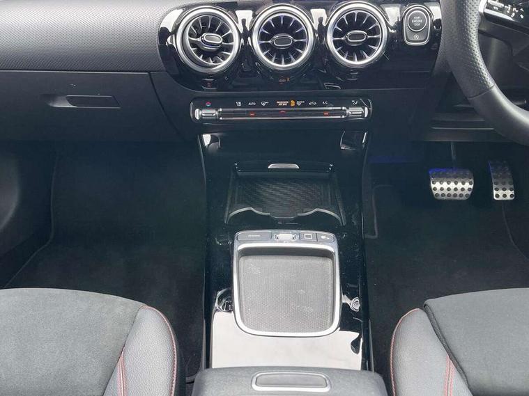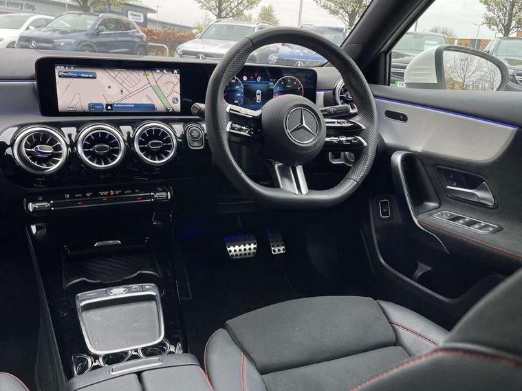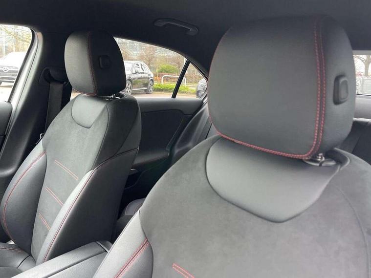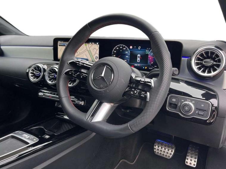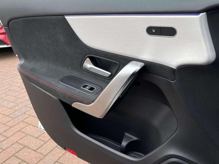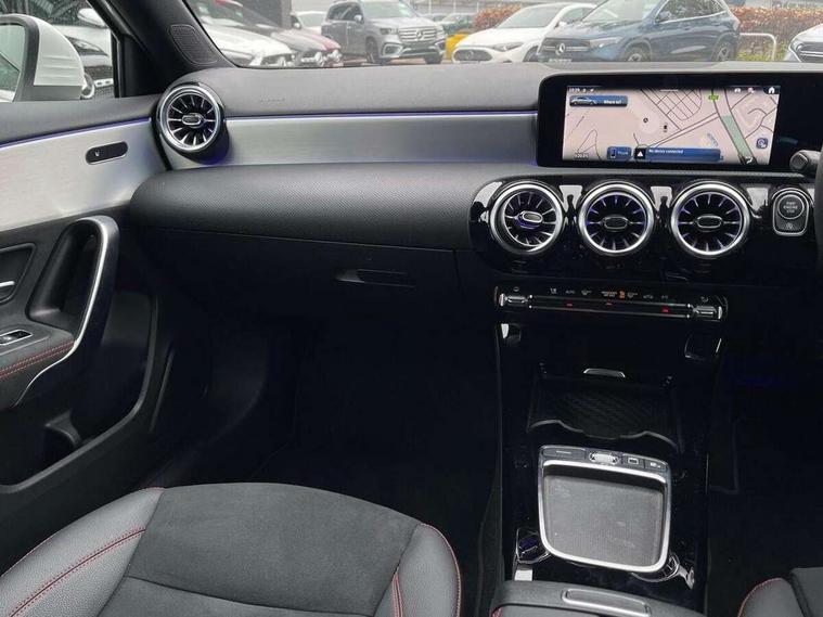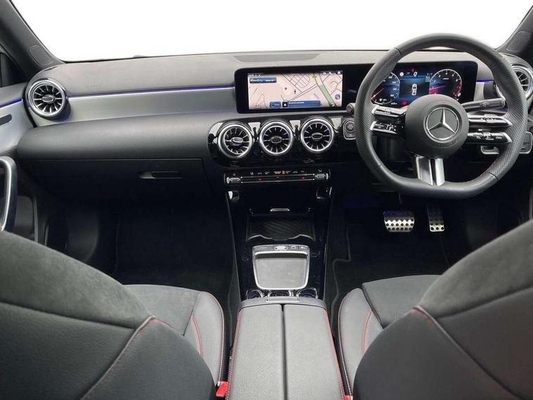 10.25 inch touchscreen central media display, 10.25" Digital instrument cluster display screen, Attention assist, Blind spot assist, Brake pad wear indicator warning light, Car wash mode, Cruise control + speed limiter, Direct steering, Direction indicators with lane change function, Dual bluetooth interfaces, DYNAMIC SELECT with a choice of driving modes (ECO, Comfort, Sport and Individual), ECO start/stop function, Engine start/stop button, Fingerprint scanner, Fluid level warning indicator for fuel, oil, coolant and washer fluid, Fluorescent jacket for driver, Hard-disk navigation, Hey Mercedes Voice activation, Lamp failure indicator, Lane keeping system, Mercedes me connect including emergency call system, accident recovery, breakdown and maintenance management, Mercedes me remote services, Outside temperature gauge, Owners manual in English, Pre-installation of private car share, Remote boot closing, Service indicator (ASSYST), Smartphone integration with Apple CarPlay and Android auto, Speed limit assist, Speed sensitive power steering, Trip computer in multifunction display with current consumption indicator, Wireless charging, Lowered comfort suspension, DAB Digital radio, MBUX multimedia system, Mercedes Benz sound system (100 W) with 6 speakers, 4 Electric Front and Rear windows, Adaptive brake lights, AMG body styling - AMG front apron with front splitter and AMG rear apron and visible exhaust tailpipe trim elements, Body colour bumpers, Body colour door handles with chrome inserts, Body colour side skirt, Chrome beltline strips, Diamond radiator grille with pins in fine star pattern, Electric adjustable and heated door mirrors with integrated LED side indicators, Exhaust system with 2 visible tailpipe trim elements and rear apron, Headlamp assist automatic headlamp activation, Heated glass rear windscreen + timer control, LED High Performance headlamps including integral LED daytime running lamps and adaptive highbeam assist, LED tail lamp, Privacy glass, Radio aerial, Rain sensing windscreen wipers with two sensitivity settings, Rear boot, Rear fog lights, Rear side wing doors, Third brake light featuring LED technology, Window line trim strip in chrome, 3 seat bench in 2nd row, 3 Spoke flat bottom leather multi function steering wheel with perforated leather in grip area, 4 way lumbar support, 40:20:40 split folding rear seats, Air conditioning - One zone THERMATIC automatic climate control with automatically controlled air distribution, AMG floor mats, Artico man-made leather/Microcut microfibre upholstery, Automatic child seat recognition sensor, Black air vents with surround in silver chrome, Black roof lining, Brushed stainless steel sports pedals with rubber studs, Front centre armrest with stowage, Front door sills with Mercedes Benz lettering, Front seat backs luggage nets, Front sports seats with adjustable head restraints, Galvanished gear shift paddles on steering wheel, Heated front seats, Height/reach adjustable steering column, Interior lighting - 64 colour Ambient lighting, Interior mirror with reading lamps in black and frameless, Rear armrest with 2 cupholders, Rear head restraints, Seat occupancy sensor for front passenger seat, Single front passenger seat, Stowage compartment in centre console with retractable cover, Sunvisors with illuminated vanity mirrors, Twin front cupholders, Keyless go comfort pack - A Class, Light and sight package - A Class, Mirror package - A Class, Parking pack with 180 degree view - A Class, Seat comfort pack - A Class, USB pack plus - A Class, 3 rear 3 point seatbelts, ABS with Brake Assist, Active bonnet, Active brake assist includes forward collision warning system with autonomous braking, Adaptive brake assist with hold function and hill start assist, Bonnet with power domes, Childproof locks manually operated for rear doors and electrically operated for rear power windows, Crash responsive emergency lighting, Driver and passenger head and side airbags, Drivers knee airbag, Dual stage driver/passenger airbags, Electronic parking brake, ESP curve dynamic assist, ESP with ASR, Front and rear seatbelt reminder, ISOFIX and top tether child seat fixing points in two outer rear seats, Tyre pressure monitoring system, Warning triangle and first aid kit, Window airbags, Alarm system/interior protection/immobiliser, Guard 360 degree vehicle protection, Remote central locking and crash sensor with emergency opening function, Black seatbelts, Light longitudinal grain aluminium trim, 18" AMG 5 twin spoke light alloy wheels, aerodynamically optimised, painted in black with high sheen finish, Summer tyres, Tirefit sealant kit,