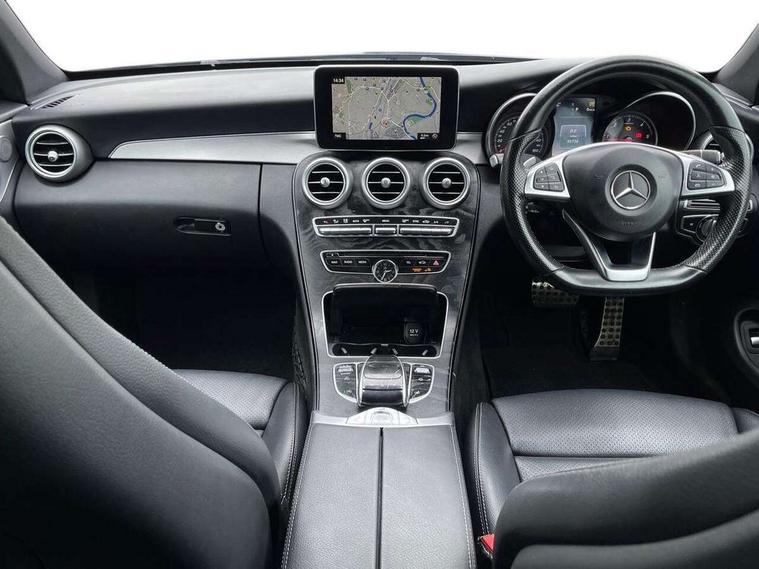 Active park assist with parktronic system, Attention assist, Bluetooth interface for hands free telephone, Collision prevention assist plus, COMAND online nav with colour display, radio/CD/DVD/MP3, SD card, 10GB music, Emergency Call system, speed limit assist, linguatronic voice control, DYNAMIC SELECT with a choice of driving modes (ECO, Comfort, Sport, Sport+ and Individual), Instrument cluster with 5.5-inch TFT multi-function display, Multi function trip computer, Outside temperature gauge, Remote boot release, Service indicator (ASSYST), Speed sensitive steering, Diesel particulate filter, 2 USB ports, Burmester surround sound system, DAB digital radio module, Frontbass loudspeakers, Media interface, Steering column mounted multifunction controls, Adaptive brake lights, AMG front, rear apron and side skirts, Auto dimming driver's door mirror, Auto dimming rear view mirror, Body coloured bumpers, Chrome grille surround, Door sill plates with "Mercedes-Benz" lettering, Electric adjustable/heated/folding door mirrors, Electric windows one touch open/close, Green tinted glass, Heated windscreen washers, LED daytime running lights, LED tail lights, Radiator grille with integral star, Rain sensor windscreen wipers, Side windows surround in polished aluminium, Twin chrome exhaust tailpipes, Wind deflector, 2 cupholders in front centre console, 2 rear head restraints, 3 spoke flat bottom multi-function leather AMG steering wheel, 40:20:40 split folding rear seats, Advanced multicolour ambient light and LED interior light, Airscarf - neck level heating, AMG floormats, Auto dual-zone climate control system, Auto Mercedes-Benz child seat recognition sensor, Door courtesy lamps, Electric front seats, Electric height adjustable front seats, Electric height/reach adjustable steering column, Front centre armrest with storage compartment, Front footwell illumination, Heated front seats, Illuminated front/rear door handle recesses, Illuminated glovebox, Isofix rear child seat fastenings, LED reading lights, Sports pedals with stainless steel surfaces and rubber studs, Sports seats with integrated headrests, Steering wheel gearshift paddles, Sunvisors with illuminated vanity mirrors, Memory pack - C Class, Stowage space pack - C Class, 2 rear seatbelts, ABS + BAS, Active bonnet, Adaptive brake system, Brake calipers with Mercedes-Benz lettering + perforated brake discs, Drivers knee airbag, Drivers pelvis airbag, Dual stage driver/passenger airbags, Electronic parking brake, ESP with ASR, Front side airbags, Hill hold control, Hill start assist, Tyre pressure monitoring system, Warning triangle and first aid kit, Window airbags, Alarm system/interior protection/immobiliser, Chrome surround in electric key, Keyless entry and keyless start, Remote central locking, Tyre inflation kit,