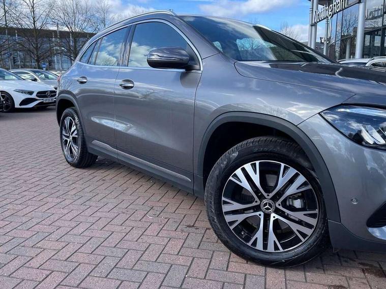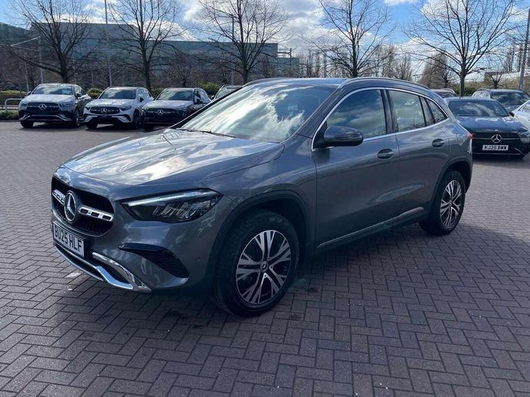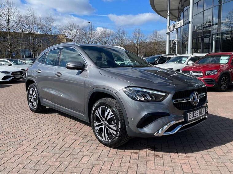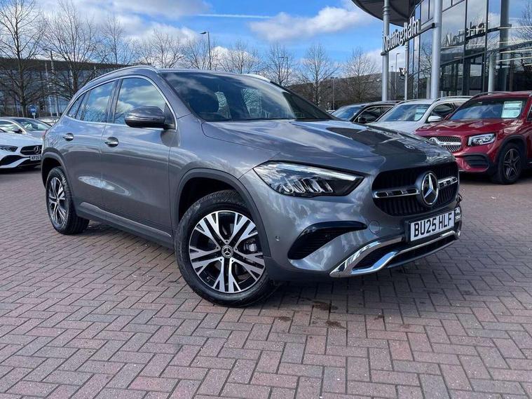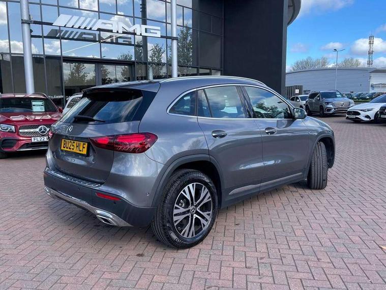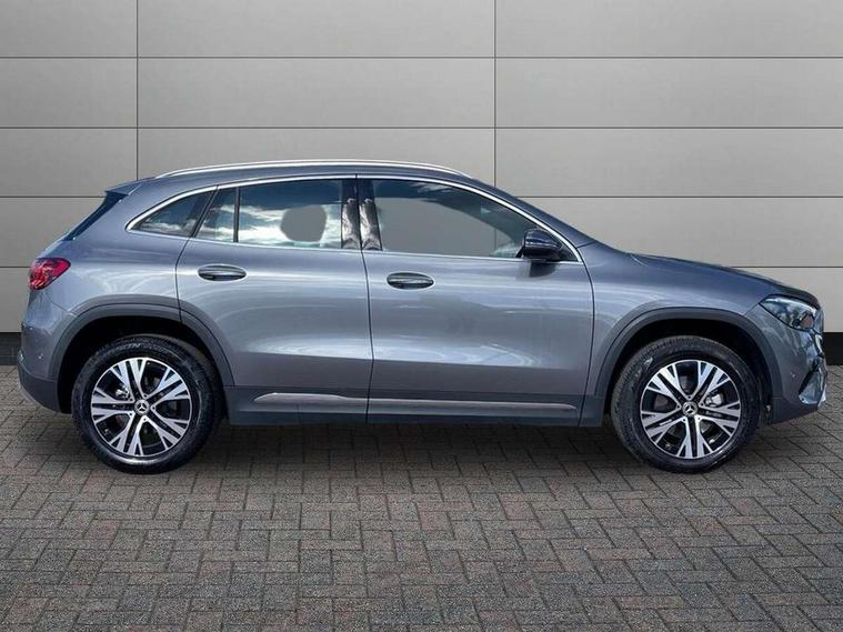 10.25 inch touchscreen central media display, 10.25" Digital instrument cluster display screen, Attention assist, Blind spot assist, Direct steering, DYNAMIC SELECT with a choice of driving modes (ECO, Comfort, Sport and Individual), Easy-pack tailgate, ECO start/stop function, Fluid level warning indicator for fuel, oil, coolant and washer fluid, Hard-disk navigation, Hey Mercedes Voice activation, Lamp failure indicator, Lane keeping assist (LKA), Mercedes me connect including emergency call system, accident recovery, breakdown and maintenance management, Mercedes me remote services, Multi function trip computer, Outside temperature gauge, Owners manual and service booklet in English, Pre-installation of private car share, Radio aerial integrated into front and rear windshields, Service indicator (ASSYST), Smartphone integration with Apple CarPlay and Android auto, Speed limit assist, Steering wheel left instrument display, cruise control and limiter, Active Distance Assist DISTRONIC and right MBUX multimedia system controls, Comfort suspension, Rear axle multi-link, Bluetooth connectivity including audio streaming, DAB Digital radio, MBUX multimedia system, Mercedes Benz sound system (100 W) with 6 speakers, Adaptive brake lights, Adaptive highbeam assist, Aluminium roof rails, Automatic headlamp activation, Beltline trim and window line trim strip in chrome, Body coloured door handles with chrome insert for keyless entry, Car wash function, Electric front windows, Electric rear windows, Electrically adjustable and heated door mirrors with integrated LED indicators, Exhaust system with 2 Visible tailpipe trim elements and rear apron with trim in chrome, Exhaust system with dual flow exhaust pipes in chrome (non-functional), Front apron with trim strip in grey, visible tailpipe trim elements in chrome, Heated glass rear windscreen + timer control, Interior mirror with black reading lamps and frameless, LED high performance headlamps with integrated LED daytime running lights, LED tail lights, LED third brake light, Radiator grille with central Mercedes star and single louvre in silver with highlights in high-gloss black, Rain sensor windscreen wipers, Rear fog lights, Rear side wing doors, Rear wiper, Sideskirt cladding in grained black with chrome trim, Simulated underguard at front and rear in chrome, 3 seat bench in 2nd row, 3 spoke ARTICO man-made leather multifunction sports steering wheel, 4 way lumbar support, 40:20:40 split folding rear seat backrests, Air conditioning - air vents with silver chrome surround, Air conditioning - One zone THERMATIC automatic climate control with automatically controlled air distribution, Artico man-made leather/Fabric upholstery, Auto Mercedes-Benz child seat recognition sensor, Black grained gearshift paddles, Black roof lining, Comfort seats, Courtesy light in boot, Floor mats in velour, Fluorescent jacket, Front centre armrest with stowage, Front head restraints, Heated front seats, Illuminated glovebox, Luggage net on driver/front passenger seat backrest, Manually height and reach adjustable steering column, Rear headrests, Single front passenger seat, Stowage compartment in centre console, Stowage compartment with retractable cover, Sunvisors with illuminated vanity mirrors, Twin front cup holders, Two outer rear seat isofix and top tether child seat fixing points, Comfort seat pack - GLA Class, Interior lighting with light and sight pack - GLA, Mirror pack - GLA Class, Parking package with reversing camera - GLA, USB package plus - GLA, 3 rear 3 point seatbelts, ABS with Brake Assist, Active bonnet pedestrain safety measure which detects an impact and raises bonnet by 65mm, Active brake assist includes forward collision warning system with autonomous braking, Adaptive brake assist with hold function and hill start assist, Bonnet with power domes, Brake pad wear warning indicator, Childproof locks manually operated for rear doors and electrically operated for rear power windows, Crash responsive emergency lighting, Driver and passenger head and side airbags, Drivers knee airbag, Dual stage driver/passenger airbags, Electronic parking brake, ESP curve dynamic assist, ESP with ASR, Front and rear seatbelt reminder, Front passenger seat occupancy sensor, Tyre pressure monitoring system, Warning triangle and first aid kit, Window airbags, Alarm system with immobiliser and interior protection -Thatcham category 1, Guard 360 degree vehicle protection, Keyless Go starting function, Remote central locking and crash sensor with emergency opening function, Black seatbelts, Star pattern trim elements, 18" 5 twin spoke light alloy wheels aerodynamically optimised and painted in black with a high-sheen finish 01R, Summer tyres, Tirefit tyre sealant kit,