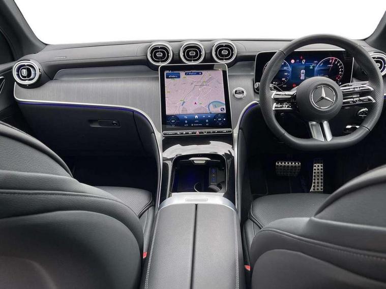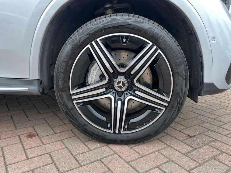 11.9" high resolution multimedia colour display, 12.3" Digital individually configurable instrument display, Acoustic presence indicator, Active lane keeping assist, Attention assist, Blind spot assist, Bluetooth interface for hands free telephone, Collision prevention assist plus, Cruise control with speedtronic variable speed limiter, Dashcam - front camera for video recording, Direct steer speed sensitive steering, DYNAMIC SELECT with a choice of driving modes (ECO, Comfort, Sport, Sport+ and Individual), eCall emergency call system, ECO start/stop function, Fingerprint scanner, Fluorescent jacket for driver, Hard disc navigation, Instrument display in miles with English lettering, MBUX augmented reality for navigation, MBUX navigation premium, MBUX voice control activated by keywords "Hey Mercedes", Mercedes me connect, Outside temperature display, Remote and charging services plus, Remote boot release, Road sign recognition system, Service indicator (ASSYST), Smartphone integration, Status display for rear seat belts in instrument cluster, Traffic sign assist, Trip computer, Wireless charging, 1 x type 2 and 3 phase 4m straight wallbox cable, 49 litre fuel tank, 4MATIC permanent four wheel drive, 7.4 kW monophase on board charger, 9G TRONIC plus automatic transmission, Alternating current charging system (AC charging), Comfort suspension, Petrol Particulate Filter (PPF), Self levelling suspension, DAB digital radio tuner, MBUX extended functions, Mercedes benz sound system, Pre installation for Mercedes Benz Link, Adaptive brake lights, Adaptive high beam assist plus, Aluminium look running boards with rubber studs, Aluminium roof rails, AMG bodystyling front apron, rear apron and side skirts, AMG Line exterior, Auto headlights, Body colour bumpers, Body colour door mirrors, Digital light LED headlights, Electrically adjustable door mirrors, Front and rear electric windows, Headlight washers, Heat insulating dark tinted glass, Heated rear window, High level LED brake light, Integrated LED daytime running lights, LED indicator lights, LED rear fog lights, LED tail lamp, Motor way mode function and locator lighting, Noise acoustic glass, Radiator grille with Mercedes Benz pattern and integreated Mercedes star and louvre in dark grey matt with chrome inlay and black frame, Rain sensor windscreen wipers, Range adjustable headlights, Rear side wing doors, Rear wiper, Transparent Bonnet, Two chrome plated tailpipe trim elements, Variable front intermittent wipers, Welcome and follow-me home light functionality, Wider wheel arch for AMG wheels, 3 seat bench in 2nd row, 40:20:40 split folding rear seats, Ambient lighting premium, AMG line interior, Artico man-made leather upholstery, Audio and onboard settings control on multifunction steering wheel, Automatic child seat recognition sensor, Black fabric roof lining, Black floor mats with AMG lettering, Double cup holder in centre console, Easy-pack removable load compartment cover, Electrically height/reach adjustable steering column, Front centre armrest with stowage compartment, Front head restraints, Galvanised steering wheel gearshift paddles, Heated front seats, Illuminated door sill panels with Mercedes Benz lettering, Illuminated glove compartment, Instrument panel and beltlines in ARTICO manmade leather in nappa look, Multifunction sports steering wheel in nappa leather, Rear centre headrest, Rear head restraints, Rear top tether child seat ISOFIX attachment, Single front passenger seat, Sports pedals with stainless steel surfaces and rubber studs, Sports seats, Sun visors, THERMATIC 2 zone automatic climate control, Anti theft protection package - GLC, Boot comfort package - GLC, Exterior chrome package - GLC, Interior chrome package - GLC, Interior lighting pack - GLC, Keyless-Go comfort package - GLC, Memory pack - GLC, Mirror pack - GLC, Parking package with 360 degree camera - GLC, Seat comfort package - GLC, Stowage space package - GLC 300e/300de, USB Plus Pack - GLC, 3 rear 3 point seatbelts, Active braking assist, Anti-lock braking system (ABS), ASR traction control, Automatic front passenger airbag deactivation, Black seat belts, Brake calipers with Mercedes-Benz lettering + perforated brake discs, Child proof door locks, Dual-stage airbags - driver and front passenger, driver knee bag and window bags for driver, front passenger and rear passengers, Electronic parking brake, Electronic stability programme (ESP) with curve dynamic assist and cross wind assist, Front and rear seatbelt reminder, Front passenger seat occupancy sensor, Front seatbelt pretensioners, Hill start assist, Tyre pressure monitoring system, Warning triangle and first aid kit, Automatic door locking, Guard 360 degree vehicle protection plus, Interior protection/immobiliser, Remote central locking, Centre console in metal structure finish, Metal structure trim, 20" AMG 5 spoke aerodynamically optimised light alloy wheels in painted black with high sheen finish, Summer tyres, TIREFIT with tyre inflation compressor,