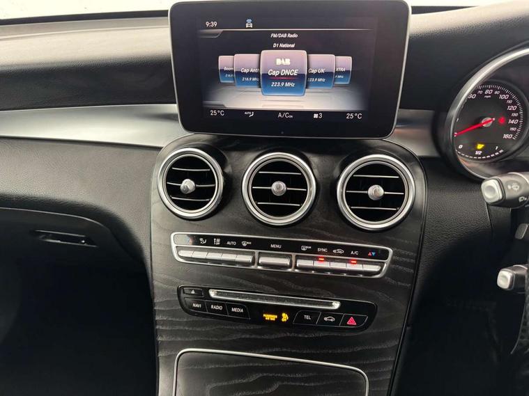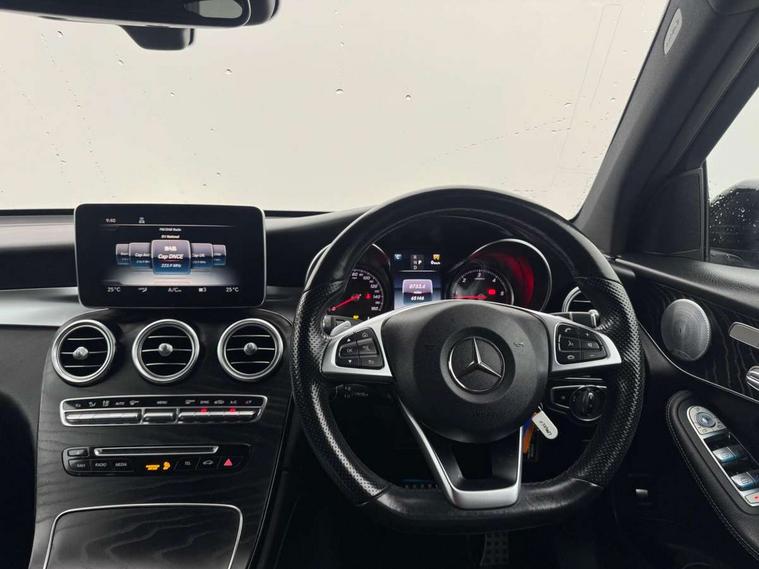 8.4" high resolution display, Active park assist with parktronic system, Attention assist, Bluetooth interface for hands free telephone, Collision prevention assist plus, COMAND online nav with colour display, radio/CD/DVD/MP3, SD card, 10GB music, Emergency Call system, speed limit assist, linguatronic voice control, Crosswind Assist, DYNAMIC SELECT with a choice of driving modes (ECO, Comfort, Sport, Sport+ and Individual), Instrument cluster with 5.5-inch TFT multi-function display, Mercedes connect me with remote online services, Multi function trip computer, Outside temperature gauge, Power opening/closing tailgate, Remote boot release, Service indicator (ASSYST), Touch pad controller for infotainment system, Traffic sign recognition, Diesel particulate filter, Burmester surround sound system, DAB Digital radio, USB connection, Adaptive brake lights, Aerodynamic rear spoiler, AMG bodystyling front and rear aprons, side skirts, Automatic headlights, Body coloured bumpers, Electric panoramic sunroof with sunblind, Electric windows one touch open/close, Electrically adjustable and heated door mirrors, Exhaust tailpipe finisher, Front and rear apron in black, High gloss black beltline and window surround, High gloss black door mirrors, LED daytime running lights, LED rear lamps, Matt black roof rails, Privacy glass (to rear of B post), Radiator grille with 2 louvres in high gloss black, Rain sensor windscreen wipers, Range adjustable headlights, Rear wiper, Tinted glass all round, 2 cupholders in front centre console, 2 way rear head restraints, 3 spoke flat bottom multi-function AMG steering wheel in black nappa leather with chrome inserts, 4 way adjustable front head restraints, 4 way electric lumbar support for driver and front passenger, 40:20:40 split folding rear seats, Ambient lighting, AMG floor mats, AMG sports seats, Auto Mercedes-Benz child seat recognition sensor, Automatic climate control, Black roof lining, Dividing net - rear, Electric front seat height adjustment, Front armrest with storage box, Front door sills with Mercedes Benz lettering, Gearshift paddles, Heated front seats, Height/reach adjustable steering column, Lockable/illuminated glovebox, Rear top tether child seat ISOFIX attachment, Sports pedals with stainless steel surfaces and rubber studs, Sunvisors with illuminated vanity mirrors, Easy-pack load compartment cover, Interior lighting pack - GLC, Memory pack - GLC, Mirror pack - GLC, Storage pack - GLC, 3 rear 3 point seatbelts, ABS with Brake Assist, Active bonnet, Adaptive brake system, ASR, Brake calipers with Mercedes-Benz lettering + perforated brake discs, Child proof door locks, Drivers knee airbag, Dual stage driver/passenger airbags, Electronic parking brake, ESP curve dynamic assist, Front and rear seatbelt reminder, Front passenger seat occupancy sensor, Front side airbags, Hill hold function, Tyre pressure monitoring system, Warning triangle and first aid kit, Window airbags, Alarm system/interior protection/immobiliser, Automatic door locking, Keyless entry and keyless start, Remote central locking,