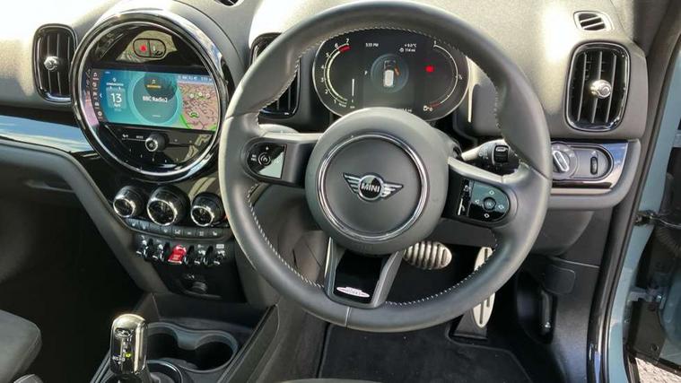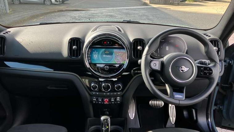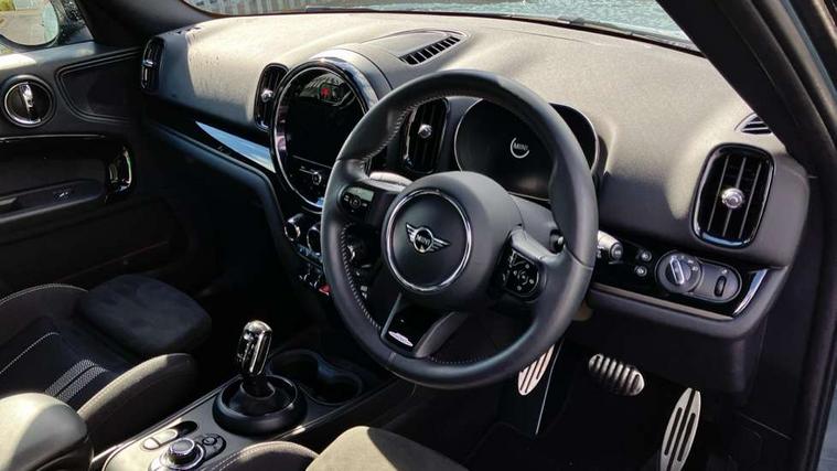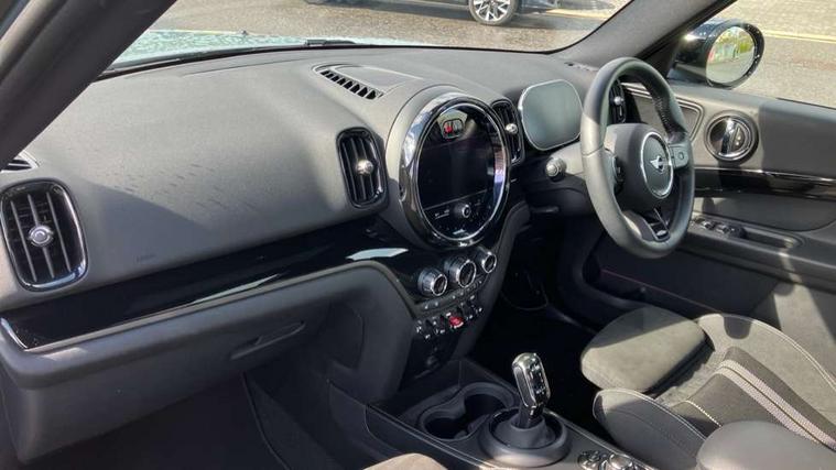 Active Guard incl speed limiting and lane departure functions with auto steering, and front collision warning with brake intervention, Automatic start/stop function with brake energy recuperation, Compatible mobile phone bluetooth with audio streaming, Cruise control with brake assist, Electro-mechanical speed dependant steering assistance, Instrument cluster, MINI Driving Modes - centre toggle switch to control driving setting (sport, mid and green), Mini E-call, On board computer, Rear parking distance control, 51 Litre fuel tank, Double Vanos system, Fully variable valve control, High precision injection, Performance Control, Steptronic transmission with double clutch, FM tuner and DAB digital radio, 3rd brake light, Body colour fuel filler cap, Day time driving lights, Door sill strips, Dynamic brake lights, Electric windows, Heated rear window, Heated windscreen washer jets, John Cooper Works - aerodynamic kit (front and rear apron, spoiler), front and rear sport bumpers and part-painted side sills with door sill finishers, John Cooper Works Logo, LED fog lights, LED Headlights, Model logo, Model logo on Tailgate, Rain sensor with auto headlights, Rear fog lights, Rear side wing doors, Rear window wiper, Side scuttle panel with integrated indicator, Split rear doors, Sun/heat protection glass, White indicator lenses, 12V socket in centre console, 3 seat bench in 2nd row, 360L luggage compartment capacity, 4 lashing eyes in luggage compartment, 40:20:40 split folding rear seats, Anthracite headlining with grab handles and clothes hooks, Chrome interior highlights, Colour line - Carbon black, Cupholders, English handbook, Floor mats, Front headrests, Glove compartment, Height and length steering column adjustment, Interior lighting with 12 basic colours selectable via toggle switch in roof, Isofix rear child seat preparation, LED reading lights, vanity mirror lights, front foot well light and spotlight on front seats, Manual air conditioning, Mini John Cooper Works leather gearshift lever and handbrake gaiters, Multifunction steering wheel, Nappa leather steering wheel with MINI Yours logo, Rear headrests, Single front passenger seat, Stainless steel pedals and foot rest, Storage compartments in doors, Sunvisors with vanity mirrors, Excitement pack - Countryman, Navigation pack - Countryman, Piano black exterior pack - Countryman, 2 tone horn, 3 point seatbelts on all seats, 6 Airbags - front, side, head and seat belt tensioners, Anti-lock braking system (ABS), DSC - Dynamic Stability Control, Electronic handbrake, Front and rear disc brakes, Hill start assist, Manual rear child locks, Tyre pressure monitoring system, Alarm system with tilt sensor, monitoring doors, bonnet interior and tailgate, Auto drive away locking, Deadlocking function, Electronic vehicle immobiliser, Locking wheel bolts, Start/stop toggle with keyless go, Piano black JCW interior trim, Tool kit,