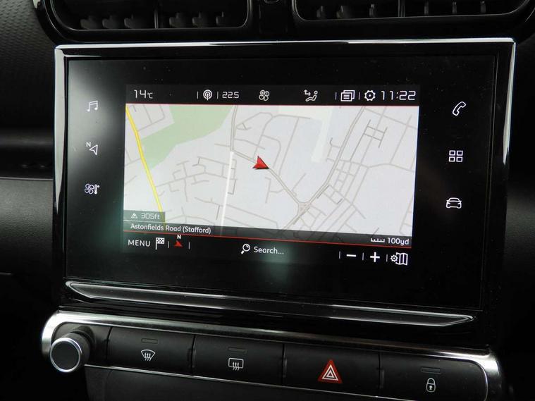7" colour touch screen, Citroen connected nav with connect box and emergency assist system, Coffee Break Alert, Cruise control + speed limiter, Lane departure warning system, Mirror screen compatible with Apple Carplay and Andriod auto, Multi function on board trip computer, Rear parking sensors, Rev counter, Speed limit recognition and recommendation, Variable PAS, Bluetooth hands free and media streaming with USB socket and jack, Citroen connected DAB radio with 6 speakers, Steering wheel mounted controls for stereo and telephone, Auto dimming electrochrome rear view mirror, Automatic lights, Automatic windscreen wipers, Body colour bumpers, Body colour painted door handles, Dark tinted rear windows, Electric front windows + one touch + anti-pinch, Electric rear windows + anti-pinch, Electrically adjustable, heated and folding door mirrors, Front and rear aluminium effect bumper protectors, Front fog lights with cornering function, Halogen headlights with LED daytime running lights, Rear wiper, 0.5L Large bottle rear door storage, 1.5L Large bottle front door storage, 12 volt front socket, 12 volt rear socket, 60/40 split folding rear seat, Automatic air conditioning, Boot light, Driver and passenger sunvisor with courtesy mirror, Flex load/Pull out boot floor, Front courtesy reading lights, Height adjustable driver's seat, Height adjustable front headrests, Height and reach adjustable steering wheel, ISOFIX outer rear seats mounting points including top tether, Lashing eyelets in boot, Leather gear knob, Leather steering wheel with satin chrome inserts and radio controls, Rear centre armrest/ski flap, Sliding rear bench, Soft touch dashboard facia, Three height adjustable rear head restraints, Tilt adjustable rear seats (Two positions), ABS with Electronic brakeforce distribution and Emergency braking assistance, Active safety brake, Airbags - Driver/front passenger, front lateral and curtain, Drivers/passengers and rear seats unfastened seat belt warning, Electronic stability control, Five 3 point inertia reel seat belts, Forward collision alert, Front seatbelt pretensioners, Hill start assist function, Manual rear child locks, Tyre pressure monitor, Alarm, Automatic boot locking, Automatic door locking, Immobiliser, Keyless entry and start, Locking wheel nuts, Remote central locking + deadlocks, Satin chrome air vent decors, 17" Diamond cut 4 ever alloy wheels, Space saver spare wheel,