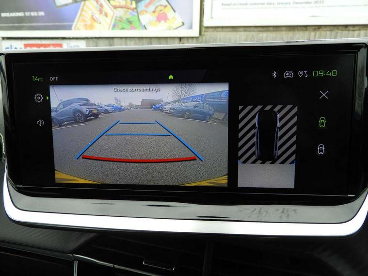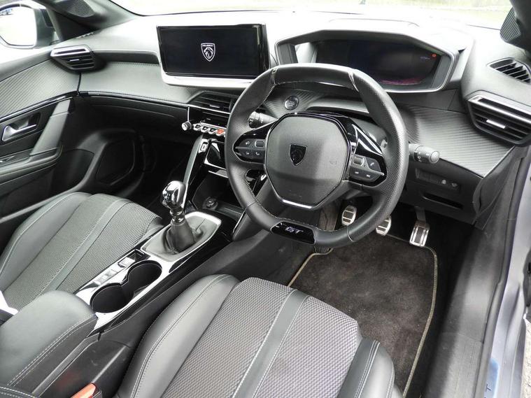 Bluetooth telephone facility, Drive mode select (Eco/Normal/Sport), Driver attention warning, Emergency call service, Exterior temperature indicator with ice warning, Front and rear parking sensors, Multi function trip computer, PEUGEOT i-Cockpit with 10" configurable 3D colour head up instrument panel, PEUGEOT i-Cockpit with 10" HD capacitive colour touchscreen, PEUGEOT i-Cockpit with compact steering wheel, PEUGEOT SOS and assistance, Push button start, Smart phone docking station, Smartphone 15W wireless charging plate, Speed limit recognition and recommendation, Start/stop system, Wireless mirror screen with apple carplay and android auto, 6 Speakers - 2 tweeters and 4 door speakers, DAB Digital radio, Peugeot i-connect infotainment system - 10in HD touchscreen, AM/FM/DAB digital radio, Wifi Mirroring, Bluetooth & 2 USB connection, USB-A socket (x1) and USB-C socket (x1) - rear, USB-C data and charge socket and USB-C charge socket in front, Voice recognition for radio, navigation and telephony features, 2 X Rear number plate lights, Acoustic windscreen, Antenna - Gloss Black 'fin' design, Automatic hazard light activation upon heavy brake application, Body coloured exterior door handles, Dark tinted rear side and tailgate windows, Diamond black rear spoiler (roof), Door sills protection with PEUGEOT signature lettering, Electric heated and power folding door mirrors with courtesy floor lighting, Frameless electrochrome interior rear view mirror, Full LED headlights with automatic height adjustment and PEUGEOT smartbeam assist, Gloss black B pillar, Gloss black door mirror shells, Gloss black front bumper grille with body colour accents, Gloss black rear cluster connecting strip, Gloss black wheel arch extensions, Gloss black window weatherstrips, GT model designation badging on C pillar, GT model designation badging on tailgate, Headlights left on audible warning, LED 3 claw horizontal rear lighting signature (with daylight function) and LED brake lights, indicators and reversing lights, LED daytime running lights with distinctive 3 claw signature, LED front indicators, LED third brake light, Model designation badges front and rear in basalt grey, One touch electric front/rear windows with pinch protection, Rear bumper with gloss black finish, Rear reversing lights, Rear side wing doors, Rear windscreen wiper triggered automatically in reverse gear, Roof spoiler, Tailgate with heated rear windscreen and wiper blade, Variable front intermittent wipers, 1/3 to 2/3 split folding rear seats, 12V socket, 3 seat bench in 2nd row, 8 Colour personalisable ambient lighting, Adamite green contrast stitching to front and rear armrest, front centre console, dashboard facia, Aluminium pedals, Automatic mono zone climate control air condition, Boot lighting, Driver and front passenger dynamic seats, Driver and front passenger seat manual adjustment in longitudinal and back rest angle, Driver and front passenger seat mechanical height adjustment, Driver and passenger sun visors, front footwells and central storage with LED lighting, Electric power steering with reach and rake adjustable steering column, Front centre armrest with storage compartment, Front LED interior light, front LED reading spotlights(x2), rear LED reading spotlight(x2), Gear shift indicator, High centre console with 2 cup holders, Luxury carpet mats, Map pockets on the backs of the front seats, Multi function full grain perforated leather steering wheel with adamite green stitch detail and 'GT' emblem, Passenger seat height adjuster, Piano keys gloss black plated toggle switches to access main functions of the vehicle, Rear centre headrest, Roof lining - Mistral black, Seatbelt unfastened on the move audible and visual alert for front and rear seats, Single front passenger seat, Visibility pack - 208, 2x Isofix child seat fitting on outer rear seats, 3 rear 3 point seatbelts, ABS (Anti-lock Braking System) with EBD (Electronic Brakeforce Distribution) and EBA (Emergency Braking Assistance), Active safety brake with night function/cyclists/pedestrians, Child locking functionality on rear doors, Driver and front passenger airbag with passenger airbag deactivation, Driver/front passenger side airbags, Electric parking brake, ESP with Hill Assist, Front and rear curtain airbags, Front and rear disc brakes, Front optimised safety headrests and 3 x rear retractable headrests with height adjustable, Front three point retractable seatbelts with force limiters, Remote plip(x2) for locking, unlocking, includes emergency key blade, Tyre pressure monitoring system, Acoustic vehicle alert system (AVAS), Alarm - Connected, volumetric , perimetric, anti lift sensor, Automatic door locking when moving off, Deadlock, Electronic code immobiliser, Peugeot Open and Go System, Remote central locking, Carbon effect Dashboard, front and rear door panel finish, 17" Yanaka two tone diamond cut alloy wheels wheels includes gloss black inserts, Space saver spare wheel,