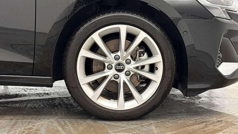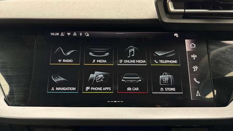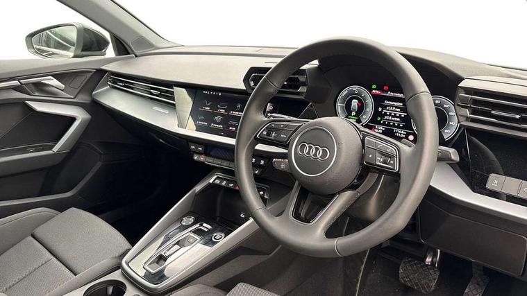 Adaptive cruise control (ACC), Adjustable speed limiter, Audi drive select (Auto, Comfort, Dynamic, Efficiency and Individual), Audi virtual cockpit plus - 12.3" full HD resolution dynamic digital instrument cluster, Automatic start/stop system with recuperation, Bluetooth interface, Camera based traffic sign recognition, Collision avoidance assistant, Driver attention and fatigue detection, e-Call (emergency call), Electromechanical power speed sensitive steering, Emergency assist, Intersection assist, Lane departure warning system, MMI Navigation Plus with high resolution 10.1" colour touch screen display, Park Assist with parking system Plus, Reversing camera, Service indicator, Smartphone interface with app store includes wireless Apple carplay, Android auto and Amazon alexa integration, Trip computer, Voice control system with natural language interaction, CCS socket for DC charging, Charging cable for public charging, mode 3 (type 2), 32 A, Standard suspension, Type 2 socket for AC charging, Audi Phonebox light with wireless charging, Audi sound system - 10 loudspeakers including centre loudspeaker and subwoofer, DAB Digital radio, USB ports with charging function in the rear, 3rd brake light, Acoustic glass windscreen, Aluminium window trim, Auto dimming frameless rear view mirror, Body colour exterior mirrors, Body colour roof spoiler, Electrically adjustable/heated/folding/auto dimming door mirrors with integrated LED indications + kerb view function for passenger side, Exterior model badging, Front electric windows, Front radiator grill in high gloss dark chrome, Front side air inlets in grained matt black with silver frame, Heat insulating glass windscreen, Invisible tailpipe, LED daytime running lights, LED headlights and halogen rear lights, Light and rain sensors, Rear diffuser and grill in grained matt black with silver frame, Rear electric windows, Rear side wing doors, Rear window, rear door windows and rear side windows in clear glass, Rear wiper, 12V socket and storage compartment in front centre console, 3 seat bench in 2nd row, 3 spoke leather multifunction steering wheel with gear shift paddles, 3-zone deluxe automatic air conditioning, 4 way electrically adjustable lumbar support for driver and front passenger, 60/40 split folding rear seat bench, Black front and rear floor mats, Convenience auxiliary air conditioning, Front and rear headrests, Front centre armrest, Front door sill trims with aluminium inlay, Heated front seats, Height and reach adjustable steering wheel, i-Size child seat mounting on the front passenger side and outer rear seats, i-Size and top tether on the outer rear seats, Manual boot compartment lid, Manually adjustable front seats, Routine cloth upholstery with front sports seats, Seat side bolsters, Single front passenger seat, Steel grey cloth headlining, Aluminium interior elements pack - A3, LED interior lighting pack -A3, 3x3 point rear seat belts, Acoustic vehicle alerting system, Driver and front passenger airbag with passenger airbag deactivation, Electronic Stabilisation Control (ESC) including ABS, ASR and EDL, First aid kit with warning triangle and 2 safety vests, Front side airbags with head airbags and interaction airbag, Hill hold assist, Pre-sense front with pedestrian and cyclist detection, Seatbelt monitoring, Tyre pressure loss indicator, Anti theft alarm, Anti-theft wheel bolts, Electronically operated child locks, Immobiliser, Black dashboard, Inlays in volcano grey fine paint finish, Tyre repair kit,